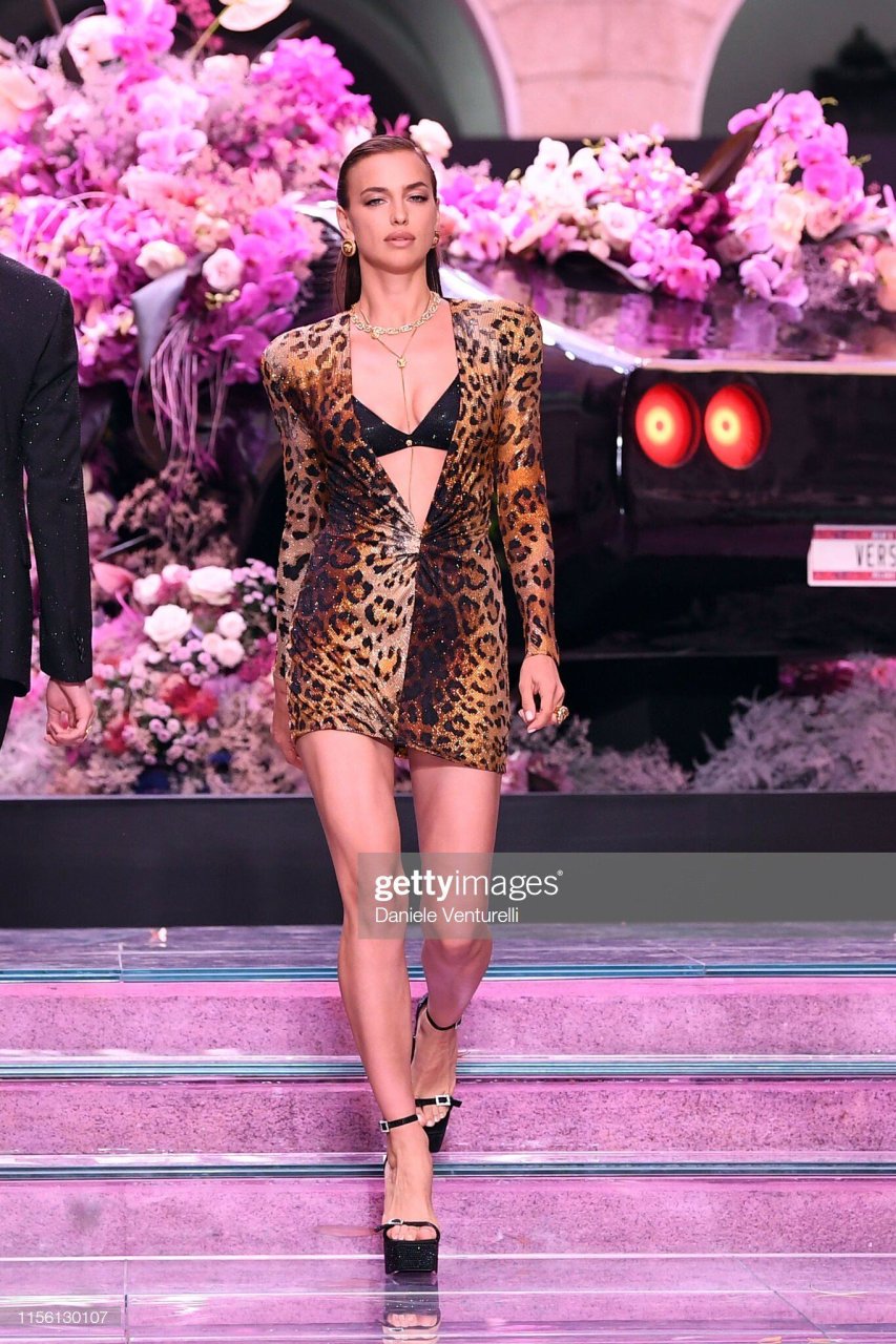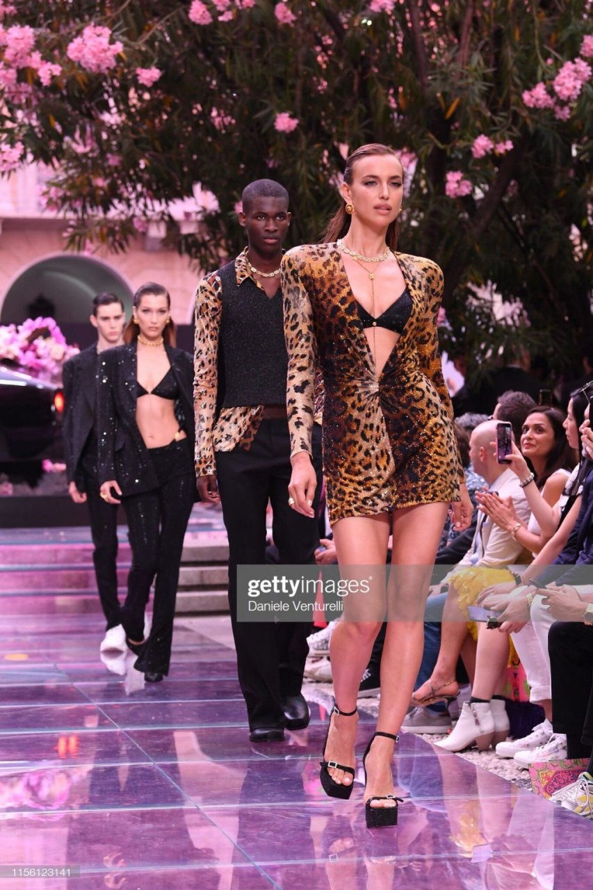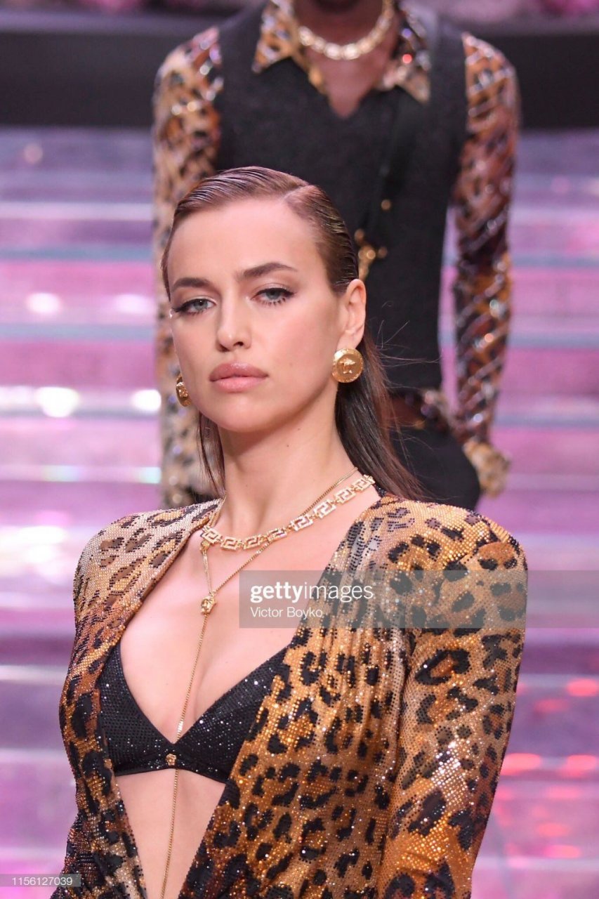La modella russa Irina Shayk è stata fotografata sulla passerella alla Milano Fashion Week Primavera 2020 di Versace a Milano, 15/06/2019. Oltre all’abbigliamento maschile, le modelle hanno presentato una nuova collezione per donna.