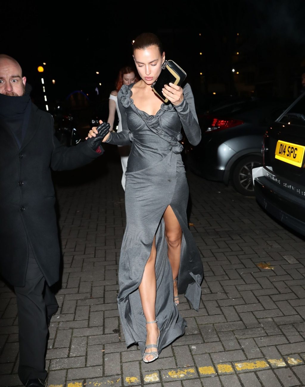 Irina è stata vista sfoggiare il suo impressionante abito lungo mentre usciva dall’evento e si dirigeva alle after party.