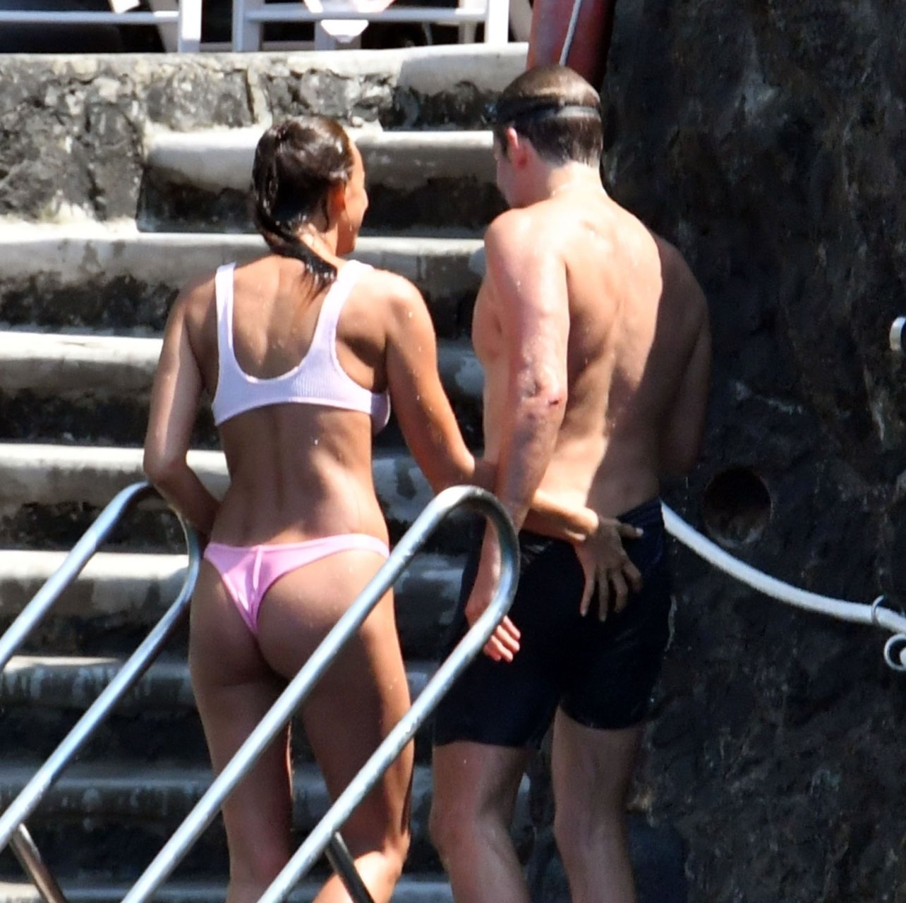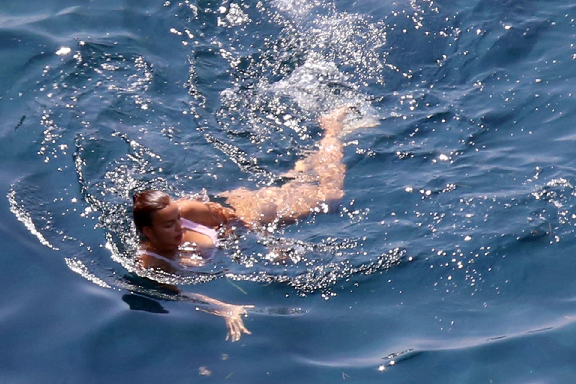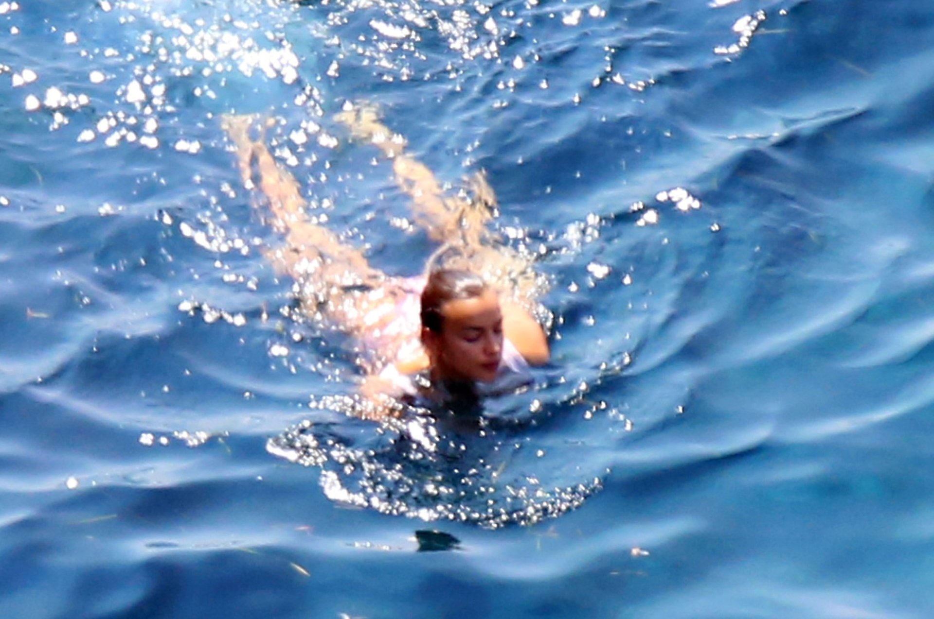 La felice coppia è stata vista fare un bagno insieme nel mare turchese prima di prendere il sole insieme, godendosi il sole. In un momento Irina tocca maliziosamente il fondoschiena di Bradley, cosa che lui ha trovato divertente.