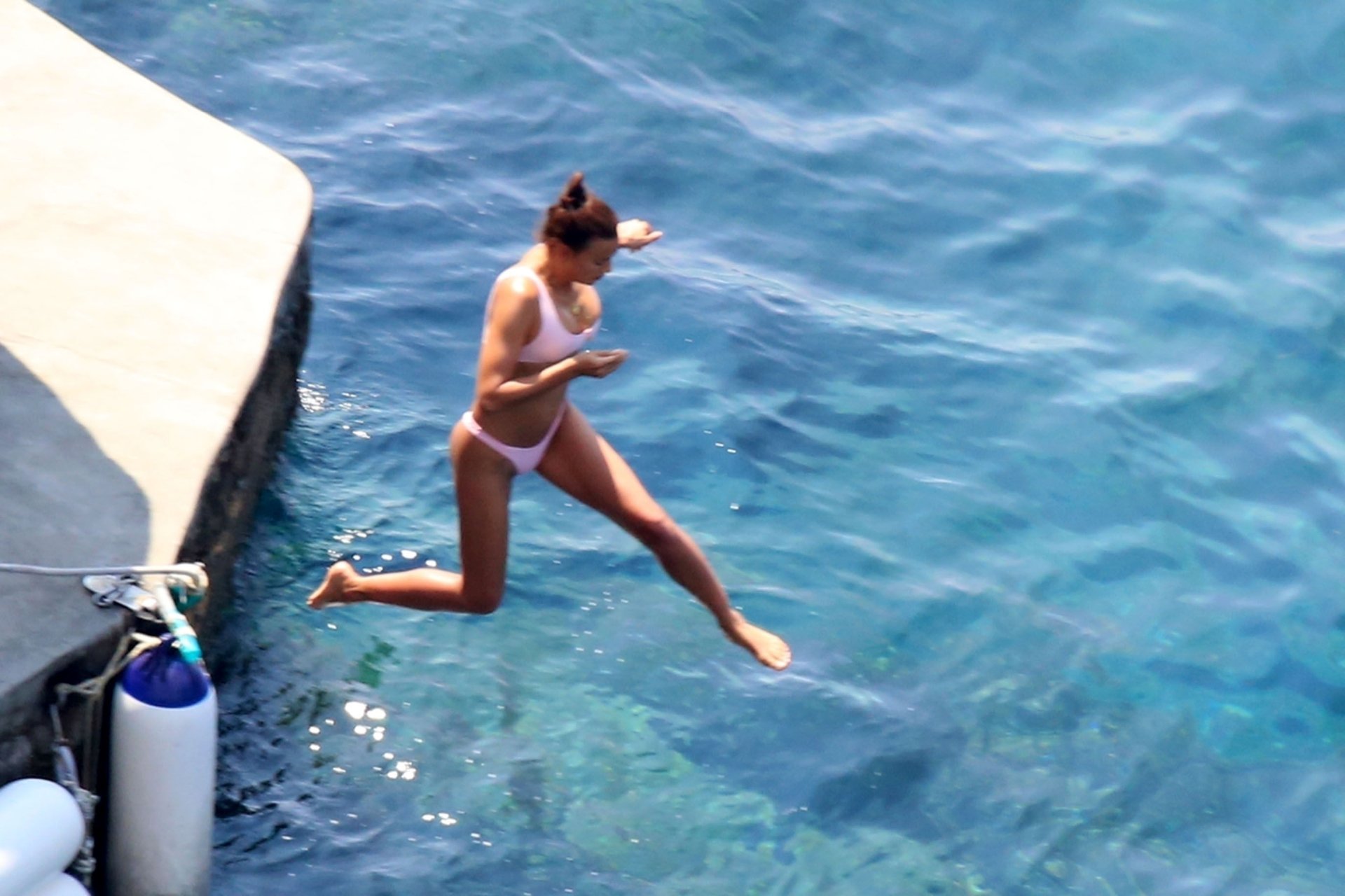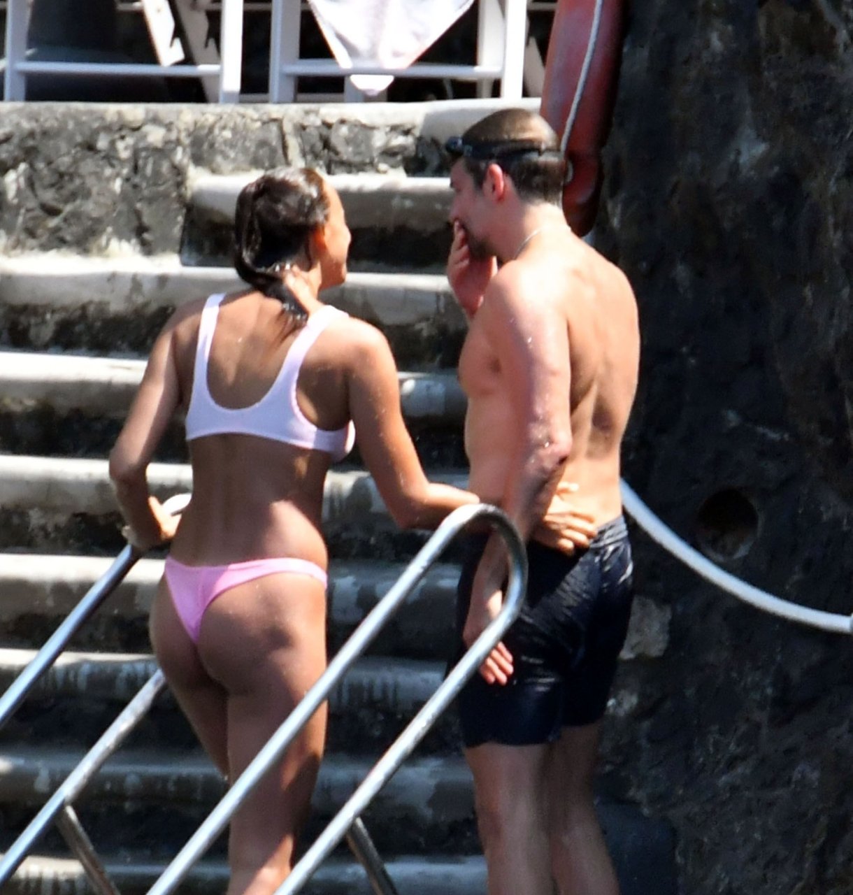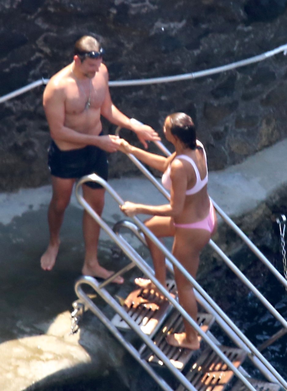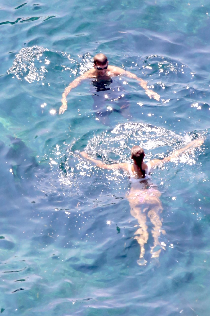 La felice coppia è stata vista fare un bagno insieme nel mare turchese prima di prendere il sole insieme, godendosi il sole. In un momento Irina tocca maliziosamente il fondoschiena di Bradley, cosa che lui ha trovato divertente.