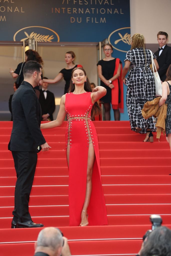 Pantyless Irina Shayk partecipa alla prima del film ‘Sorry Angel’ con un abito rosso Versace al 71º Festival di Cannes in Francia, 10/05/2018. Irina Shayk è una modella e attrice di origine russa, Età: 32.