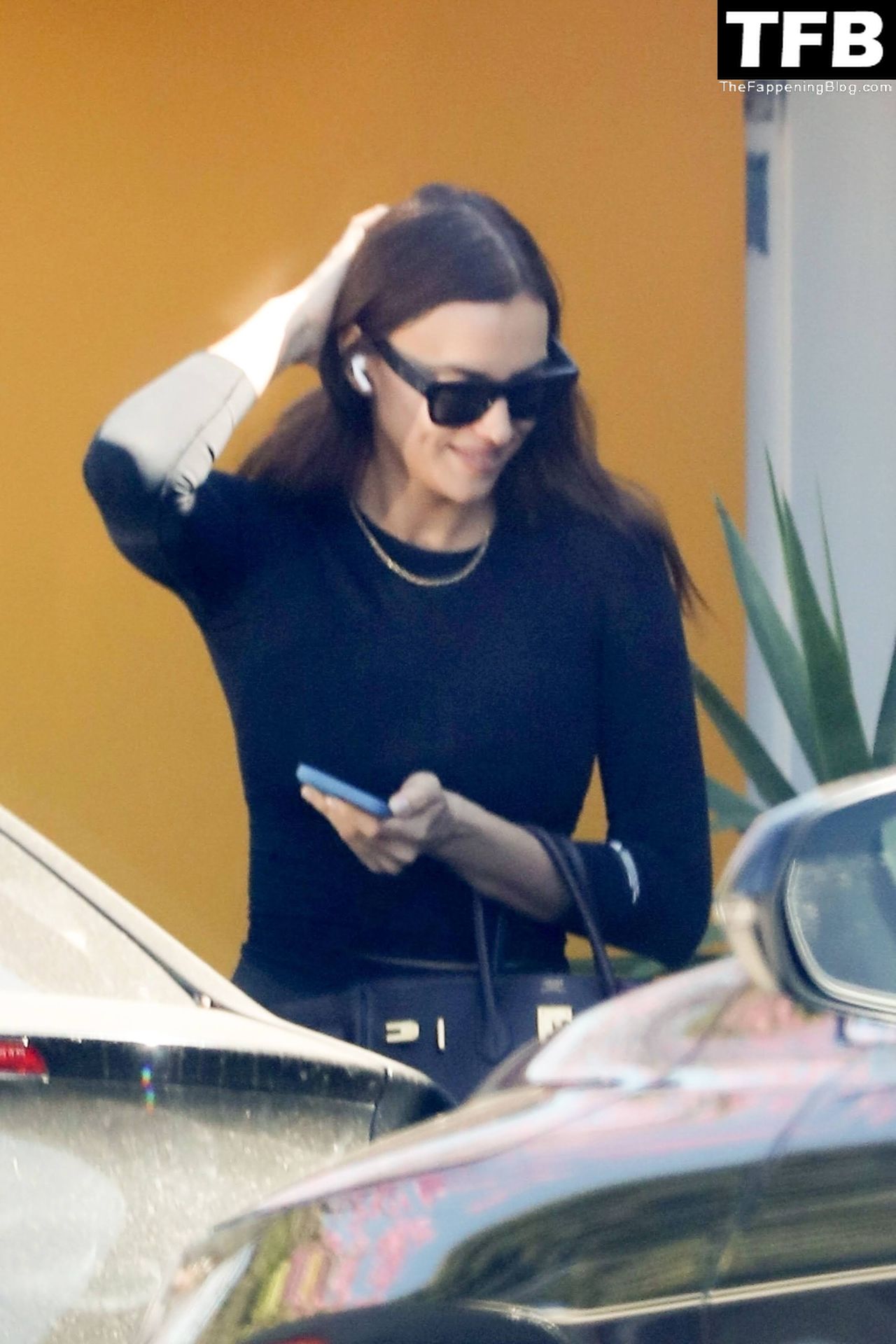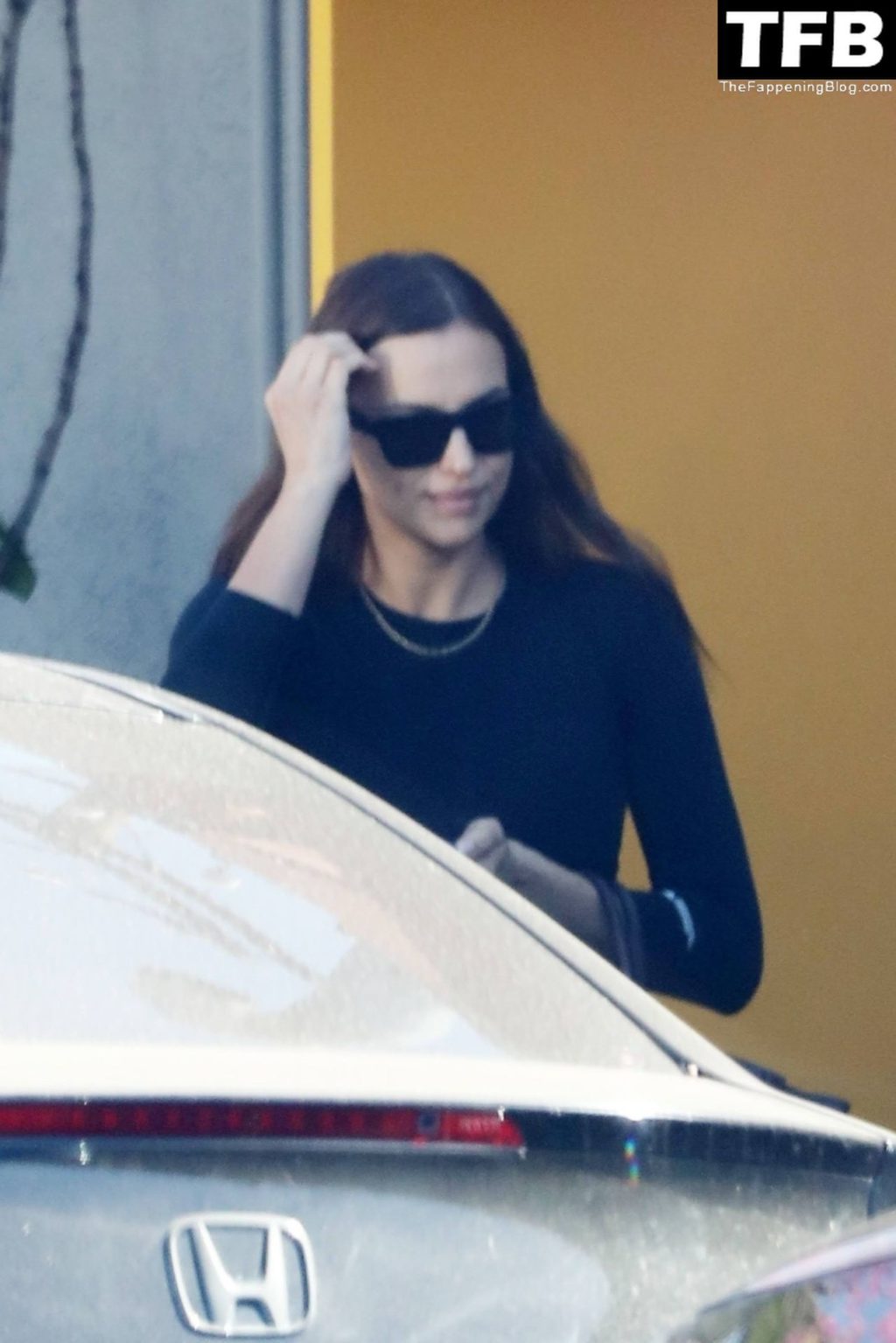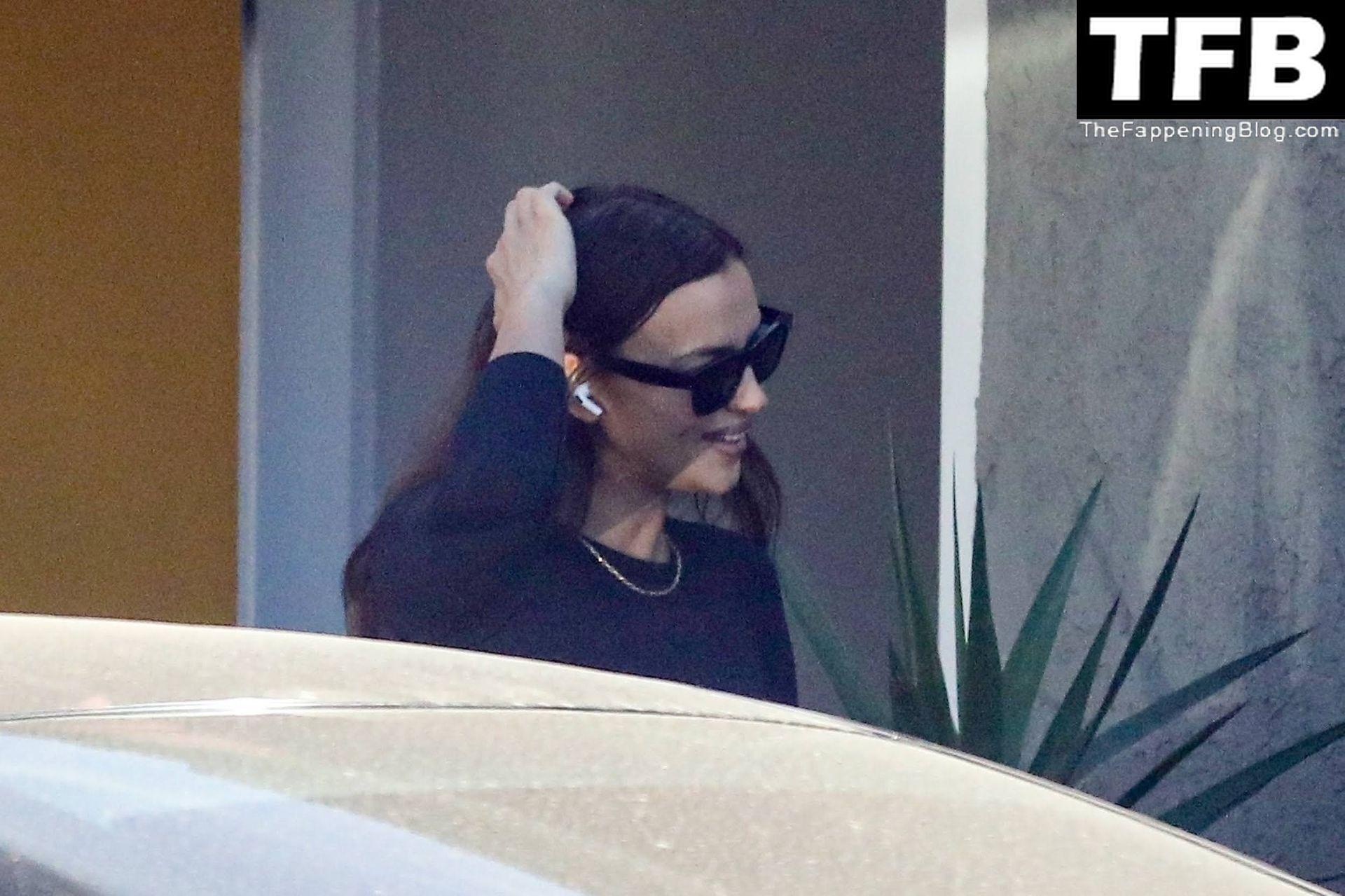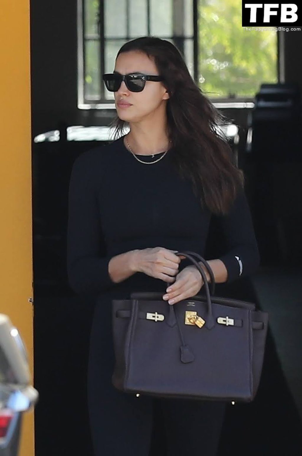 La modella russa Irina Shayk indossa un completo da palestra tutto nero e scarpe Yeezy per la sua sessione in palestra a Santa Monica, 02/03/2022.