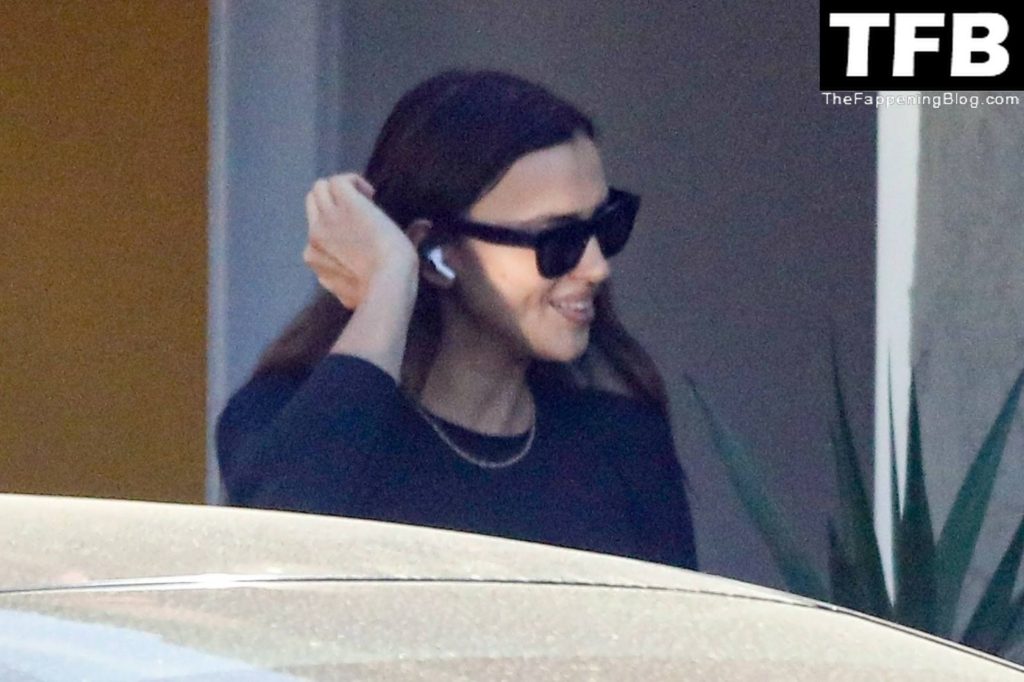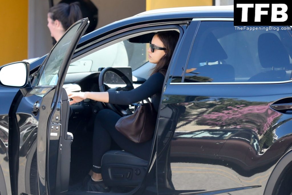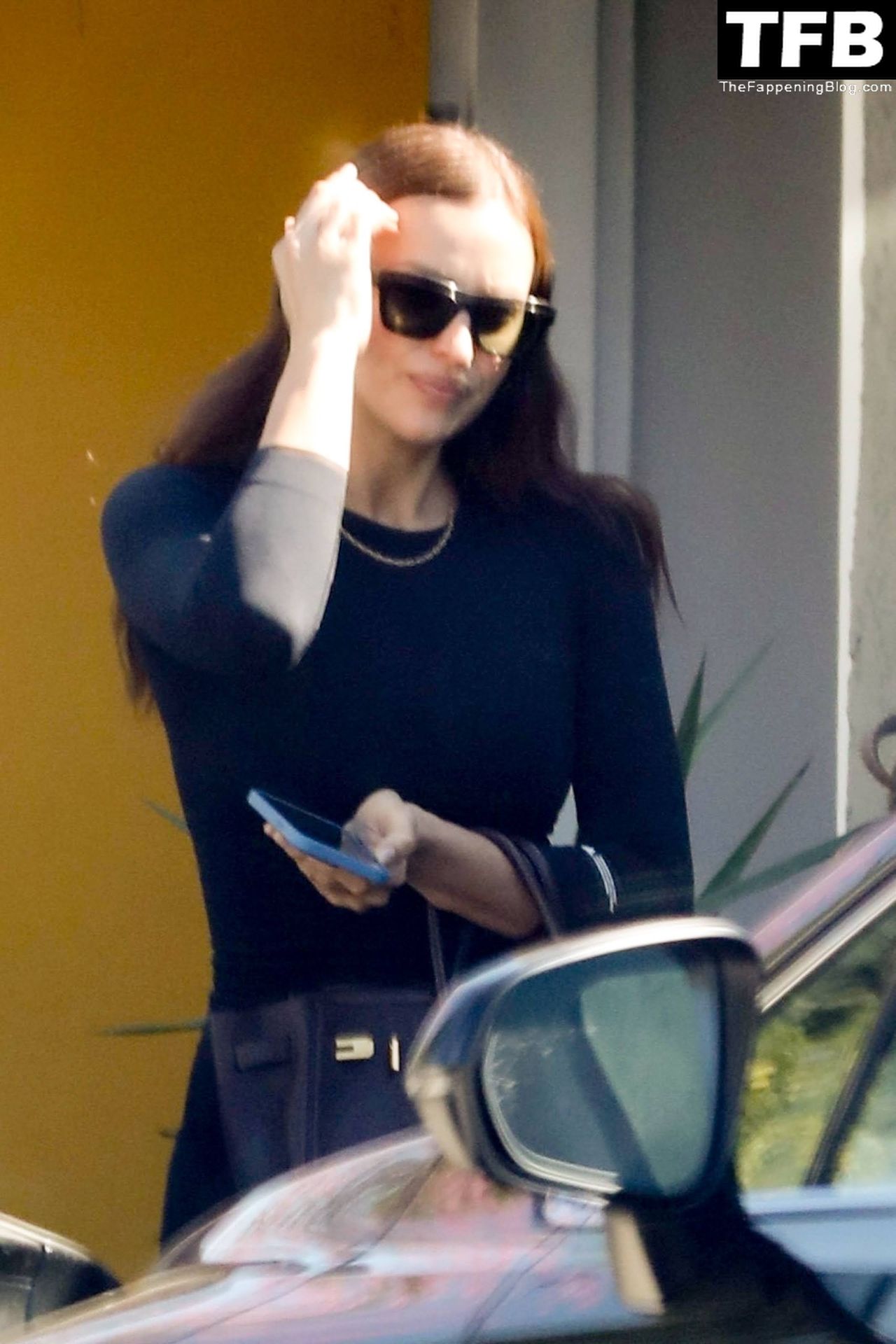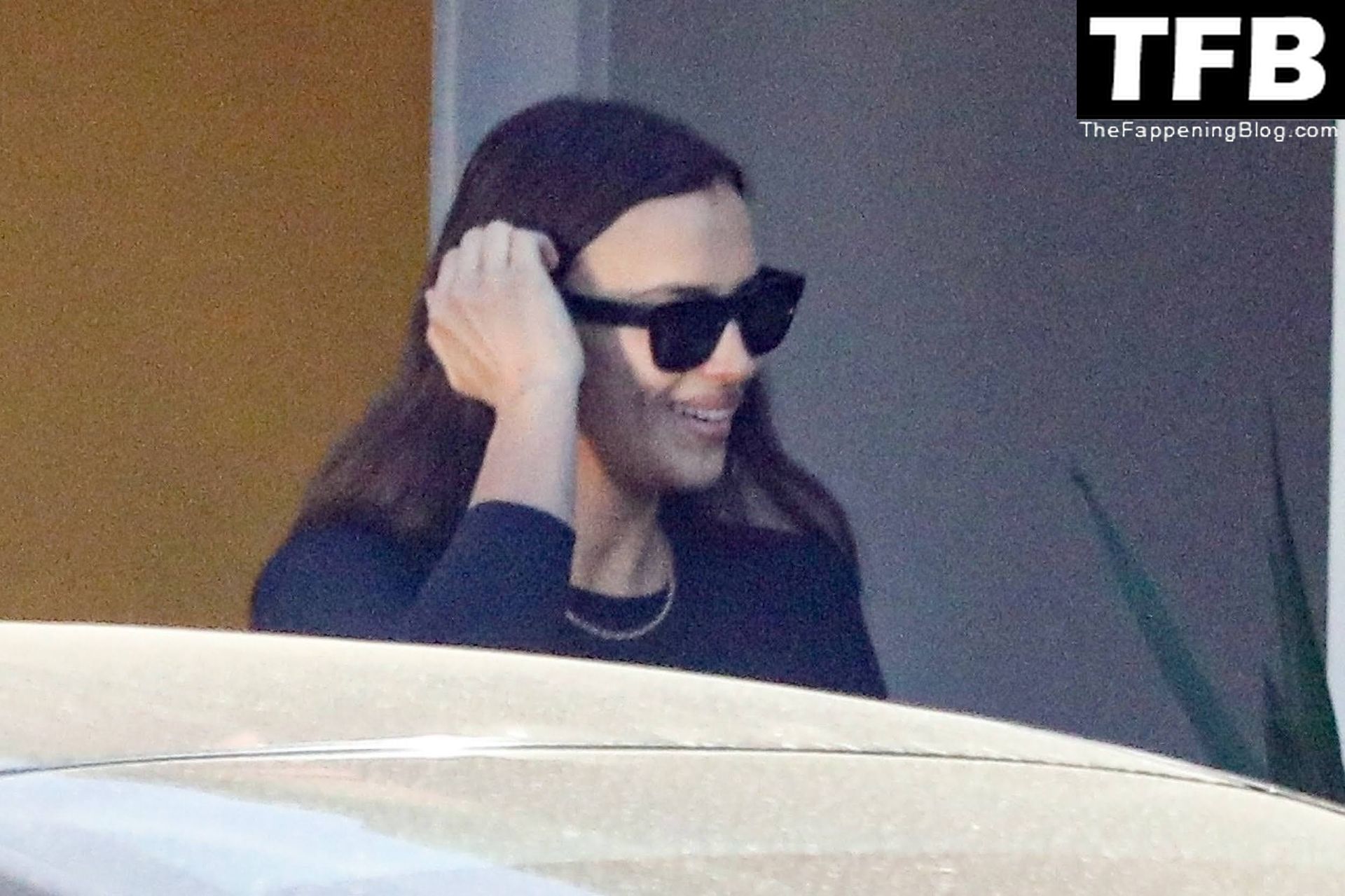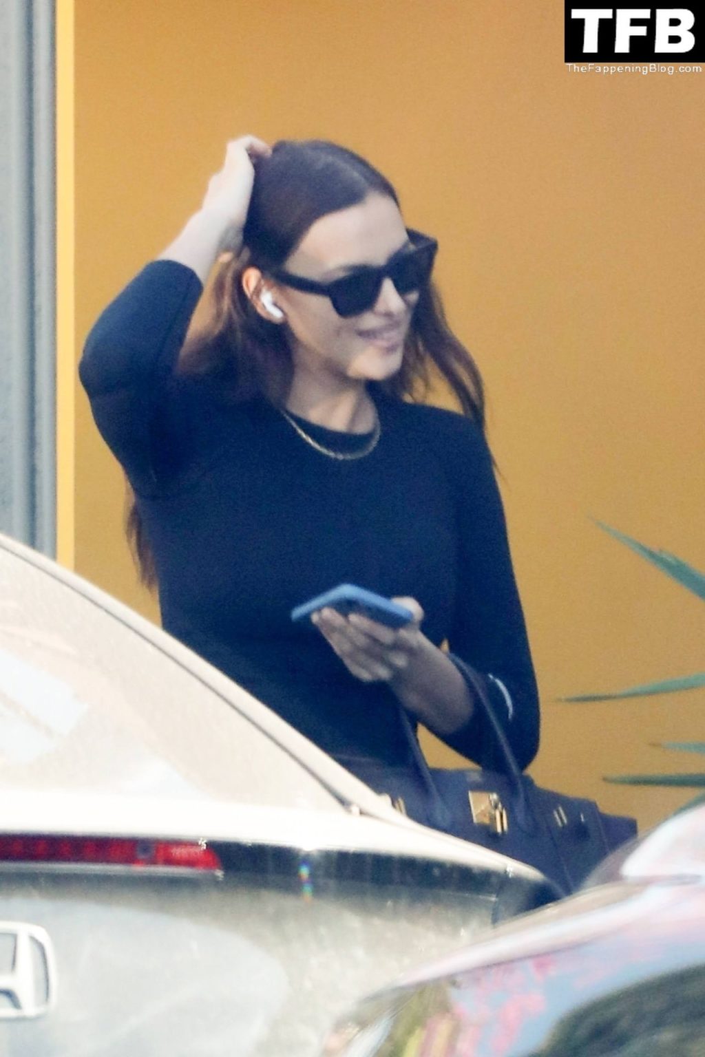 La modella russa Irina Shayk indossa un completo da palestra tutto nero e scarpe Yeezy per la sua sessione in palestra a Santa Monica, 02/03/2022.