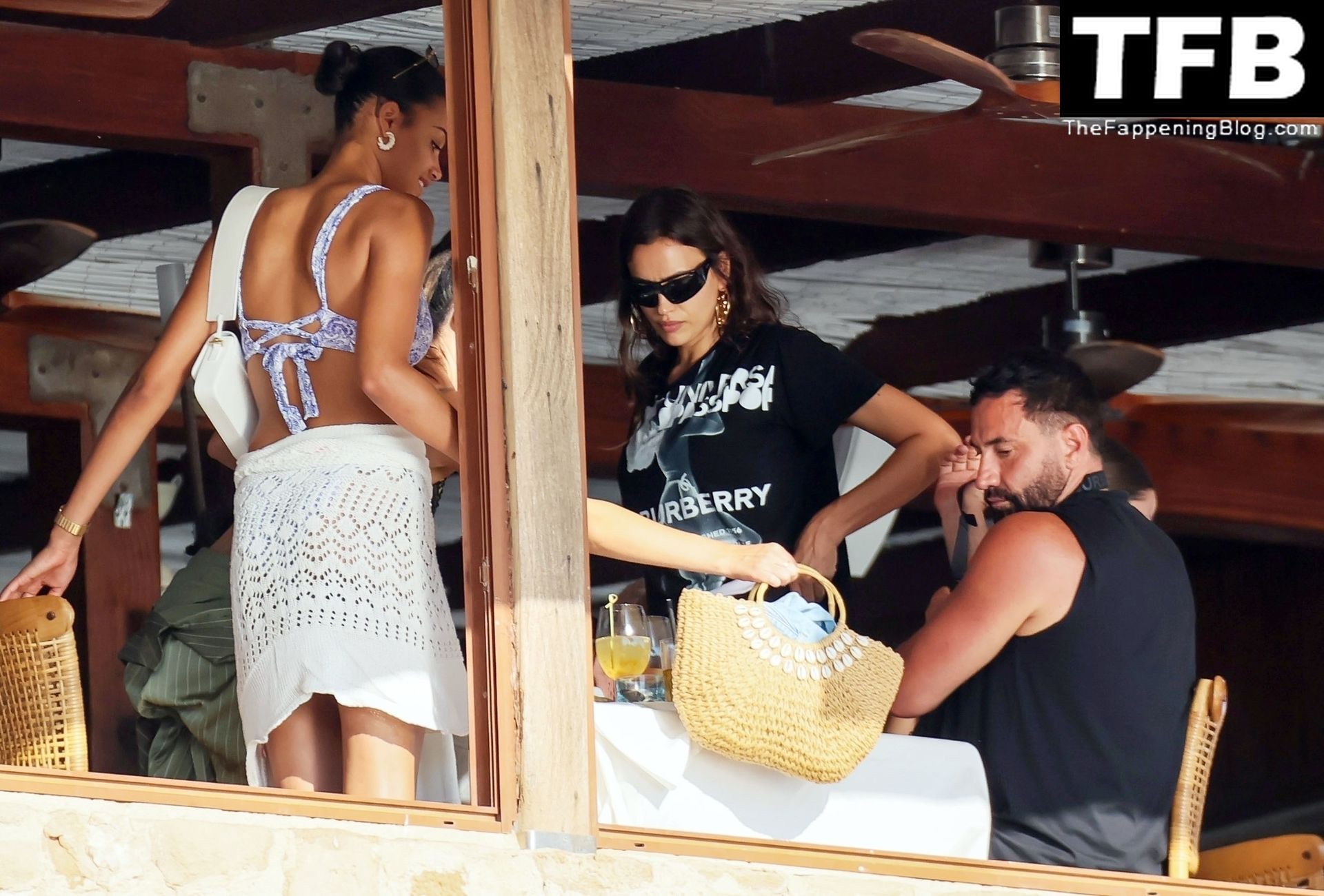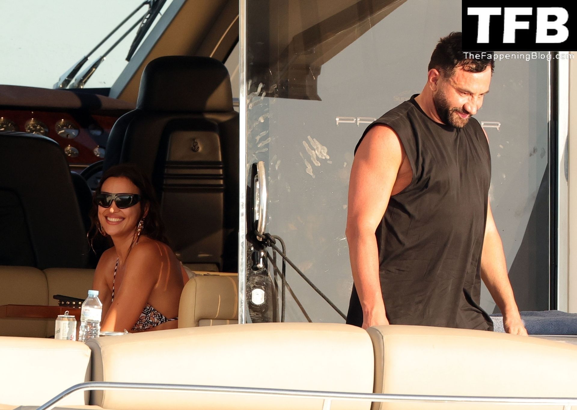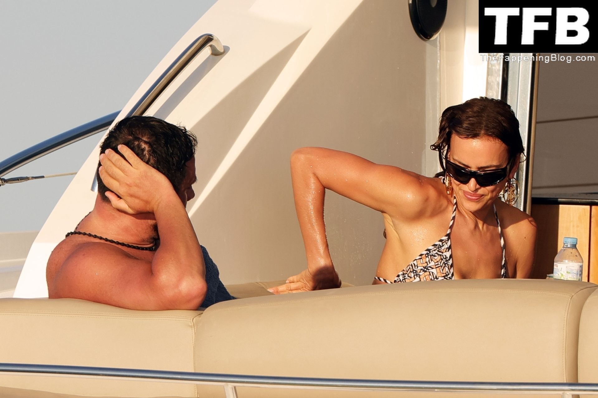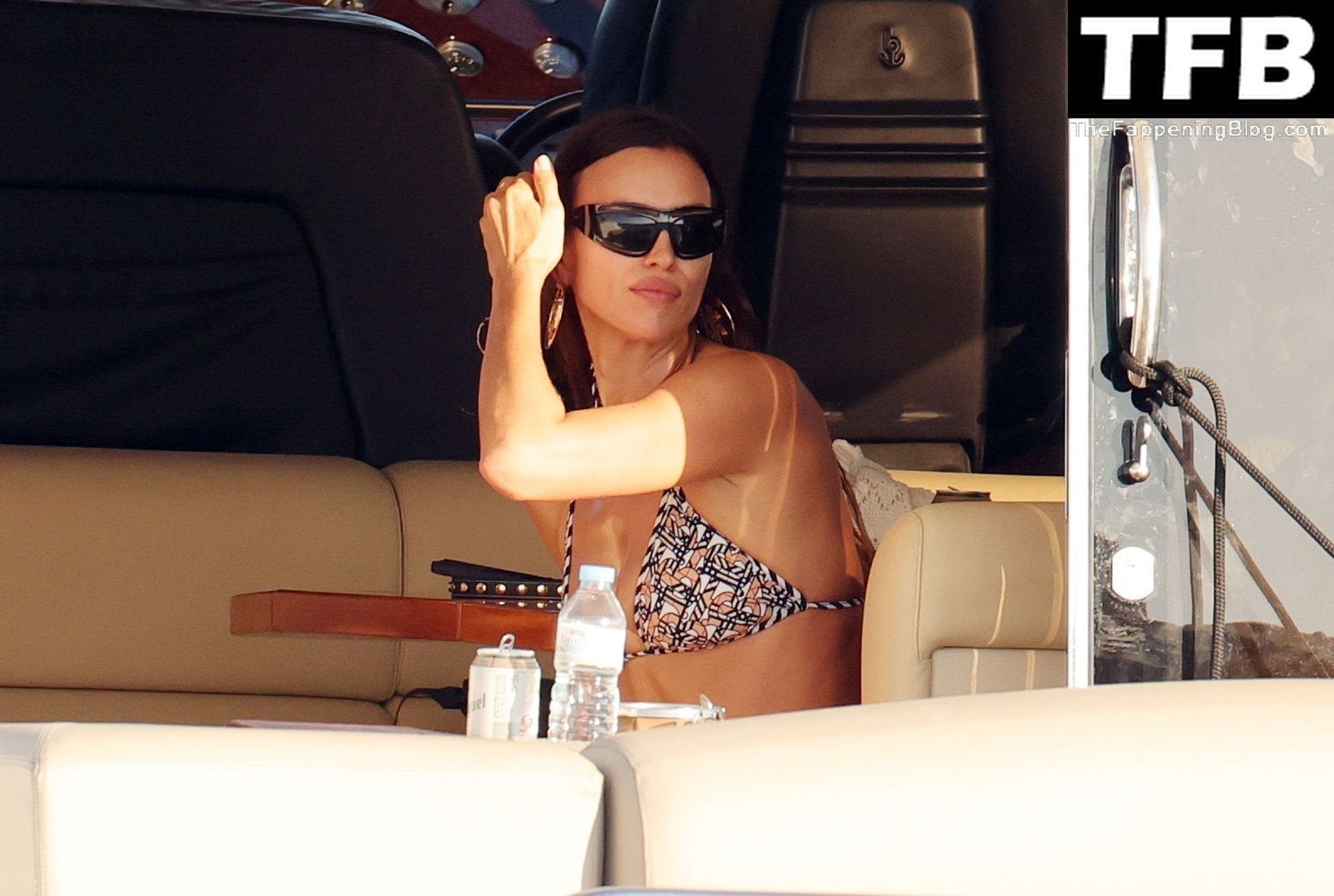 La seducente Irina ha mostrato la sua figura incredibilmente tonica indossando un bikini a due pezzi con motivo a triangoli, completando il look con occhiali da sole neri oversize e un paio di grandi orecchini dorati.