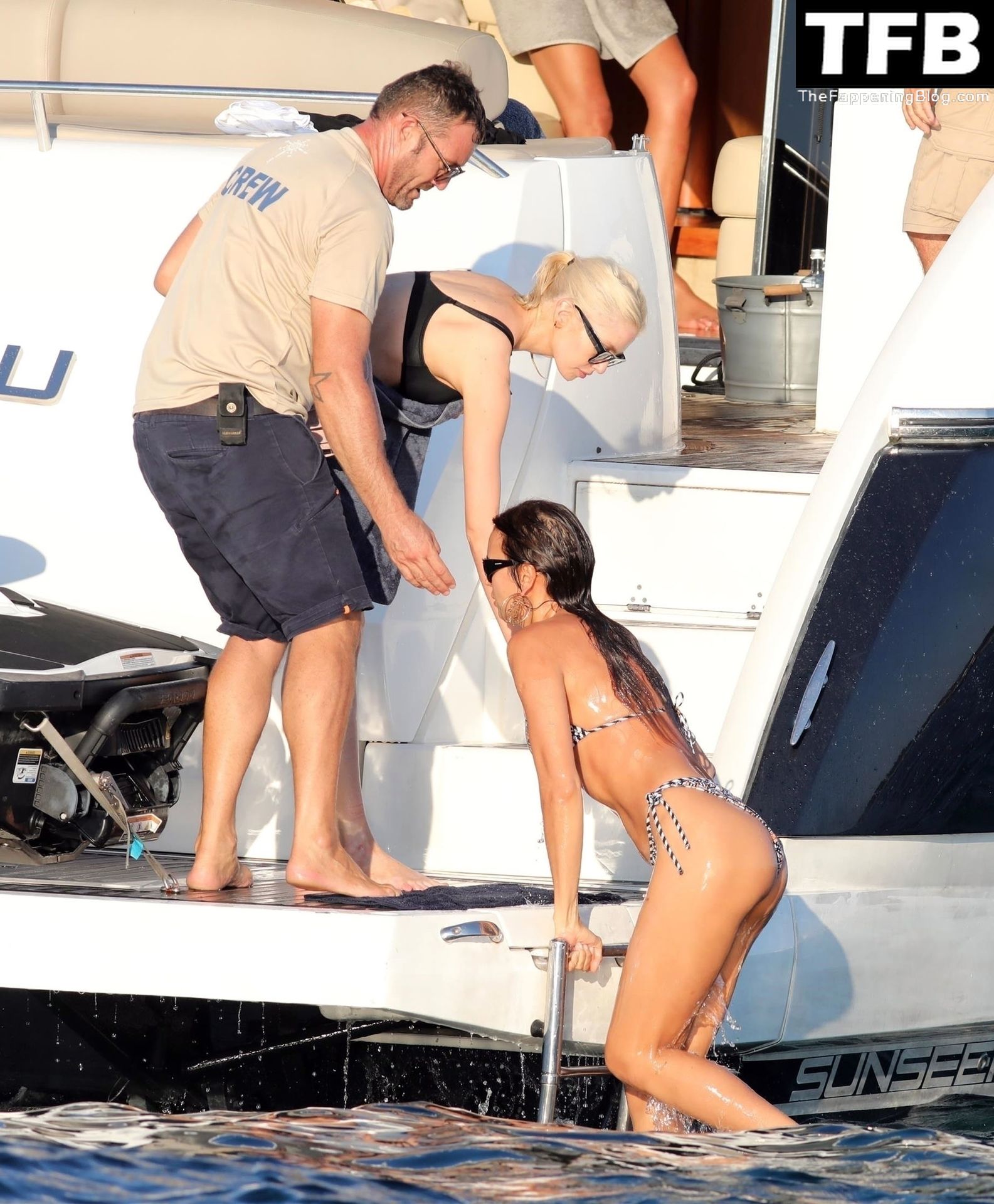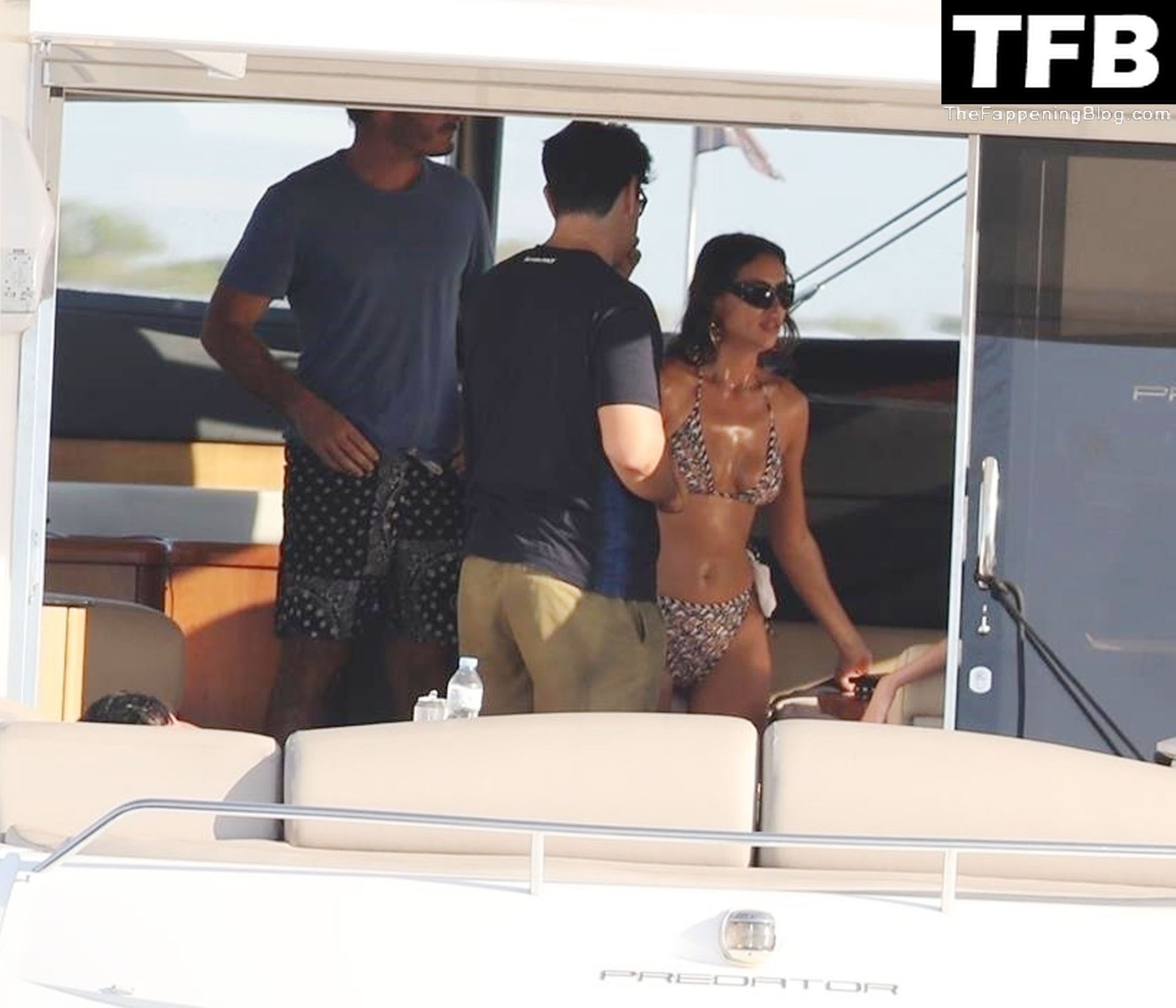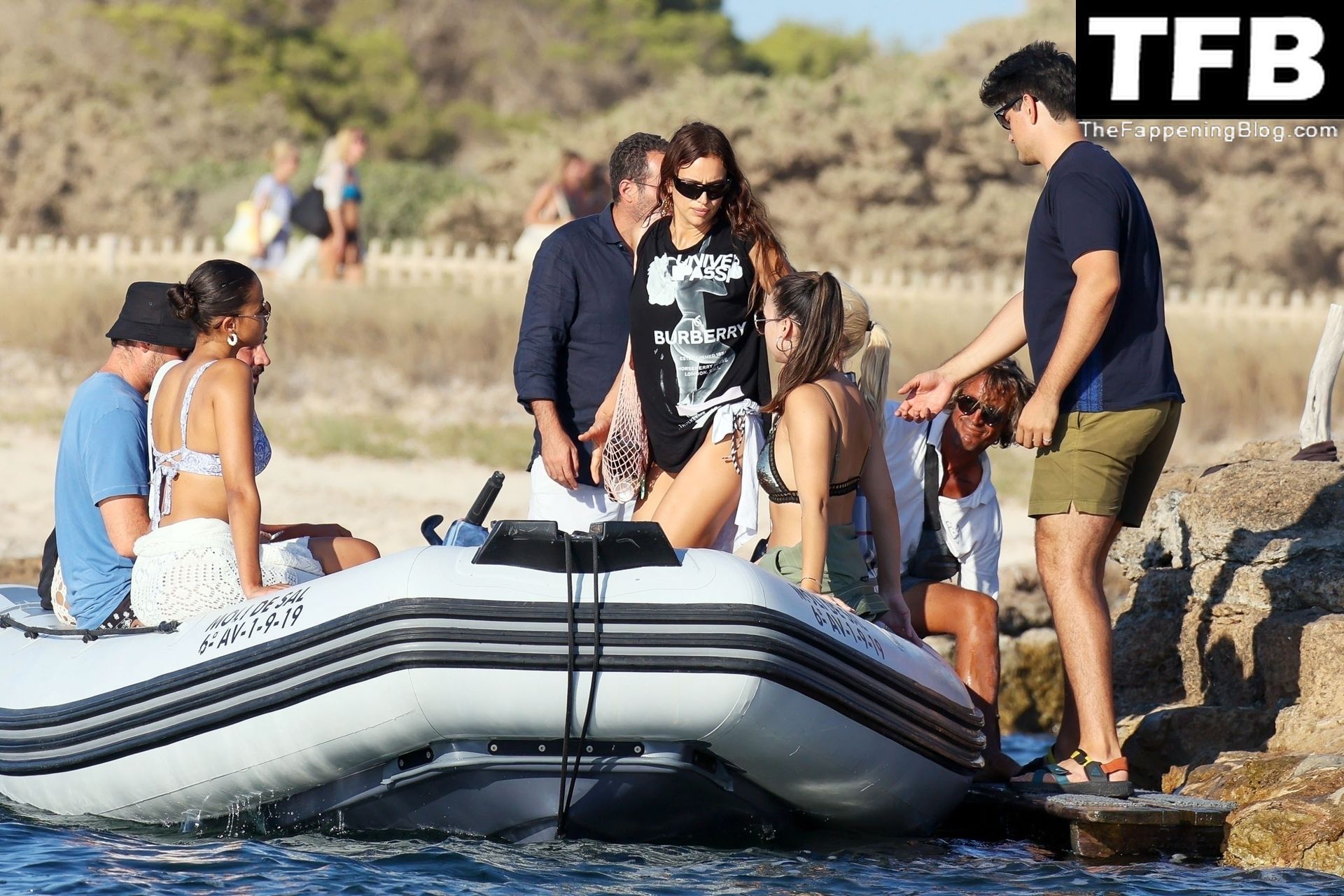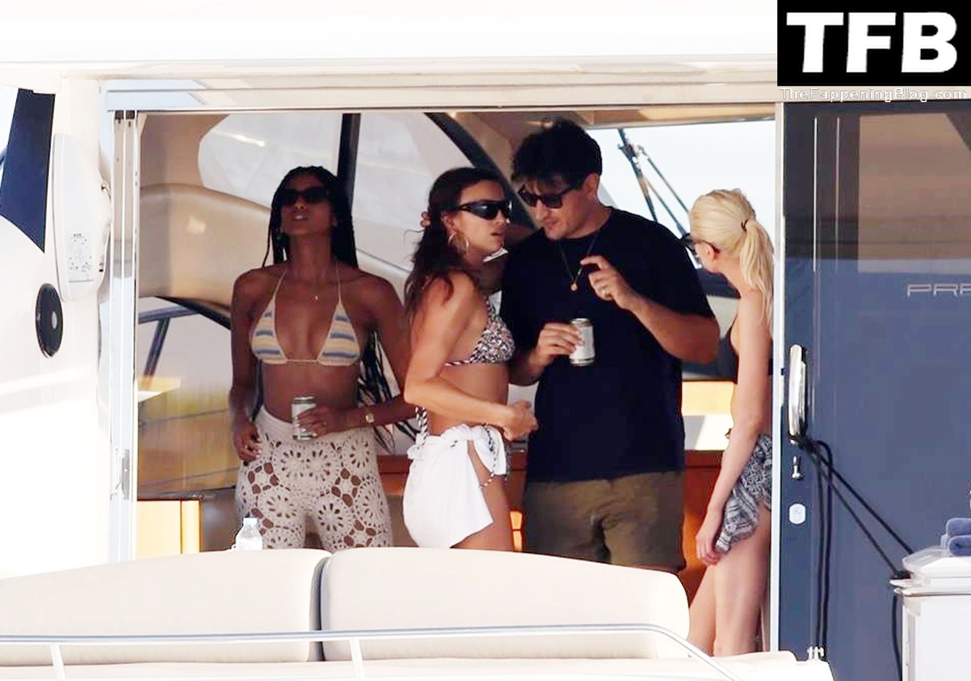 La seducente Irina ha mostrato la sua figura incredibilmente tonica indossando un bikini a due pezzi con motivo a triangoli, completando il look con occhiali da sole neri oversize e un paio di grandi orecchini dorati.