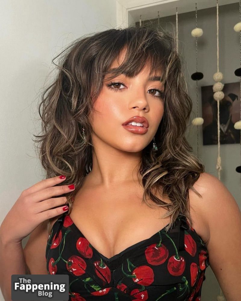 Isabela Merced che sfoggia un vestito nero aderente, mostrando un serio décolleté con le sue tette in evidenza.