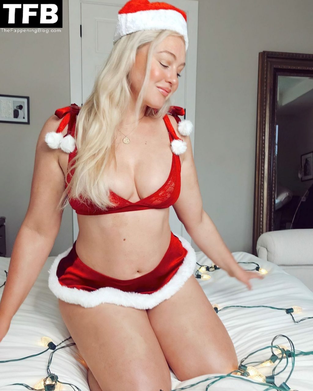 Modella taglia forte Iskra Lawrence posa in lingerie di un nuovo set Santa del marchio Mentionables, stuzzicandoci con il suo seno – Instagram (dicembre 2021).