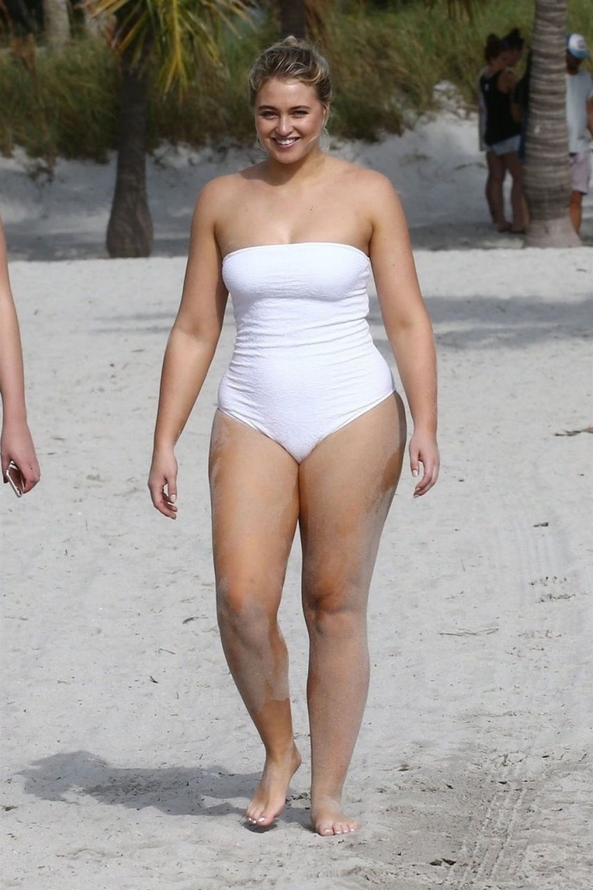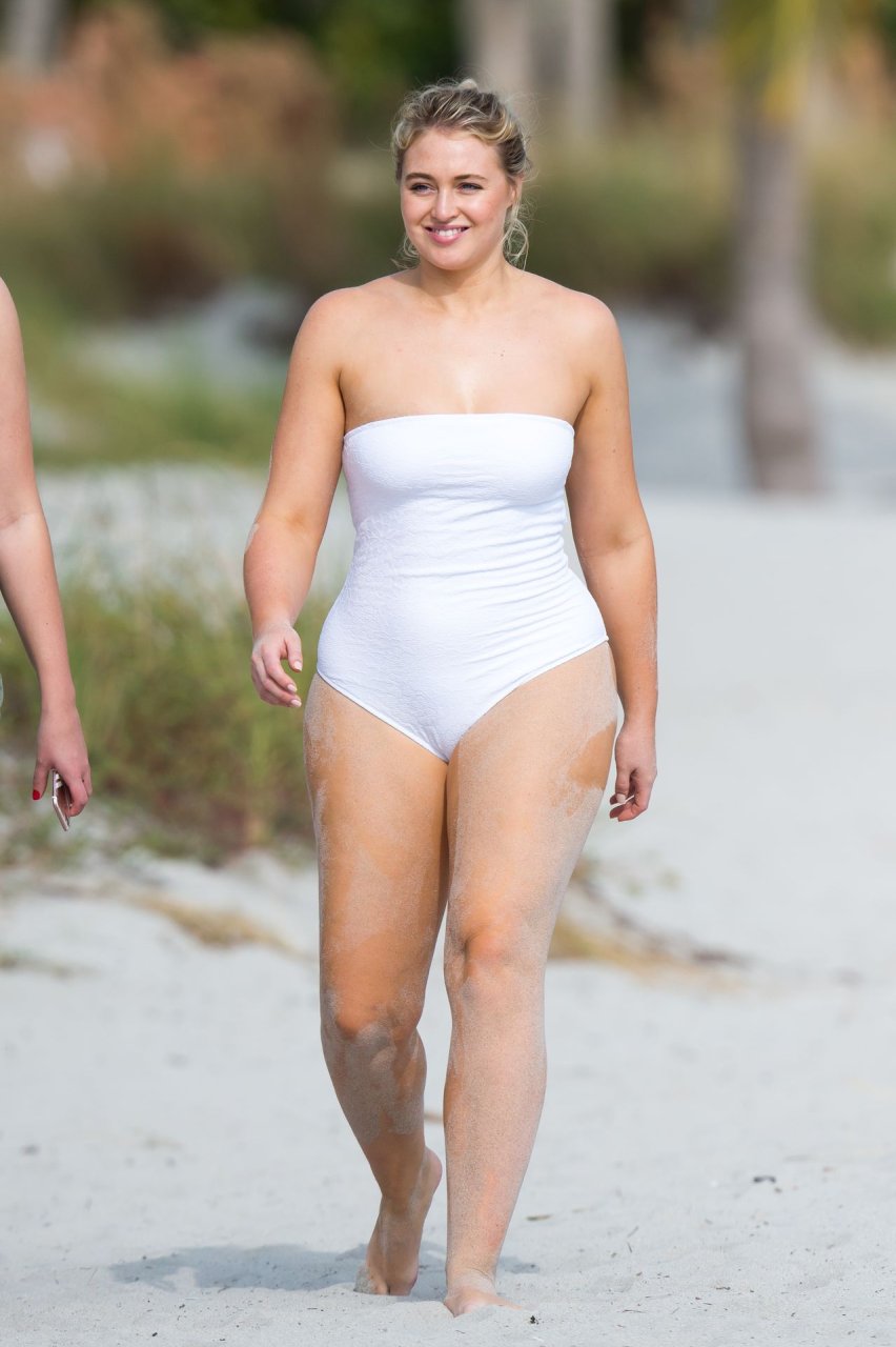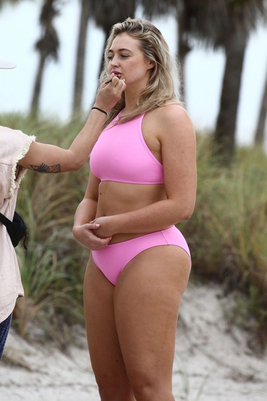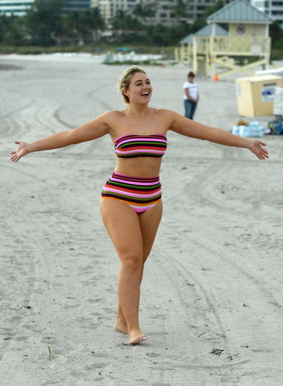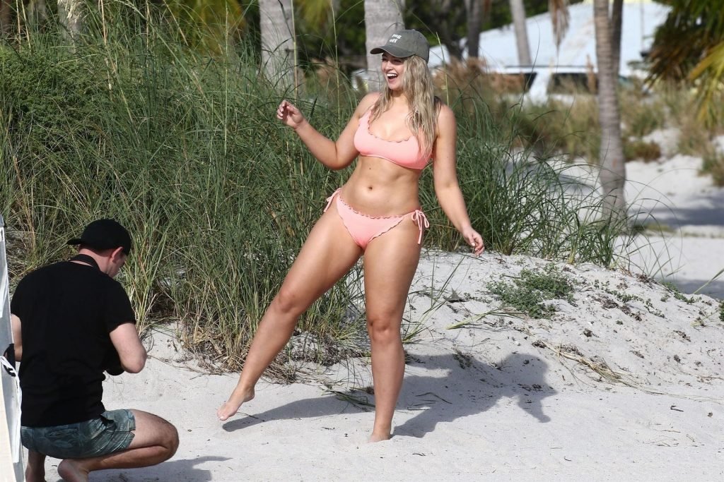 La modella britannica Iskra Lawrence è stata vista durante un servizio fotografico per Aerie sulla spiaggia di Miami, 27/11/2018. Iskra sorrideva mentre si godeva un’altra giornata di riprese per la linea di costumi da bagno.