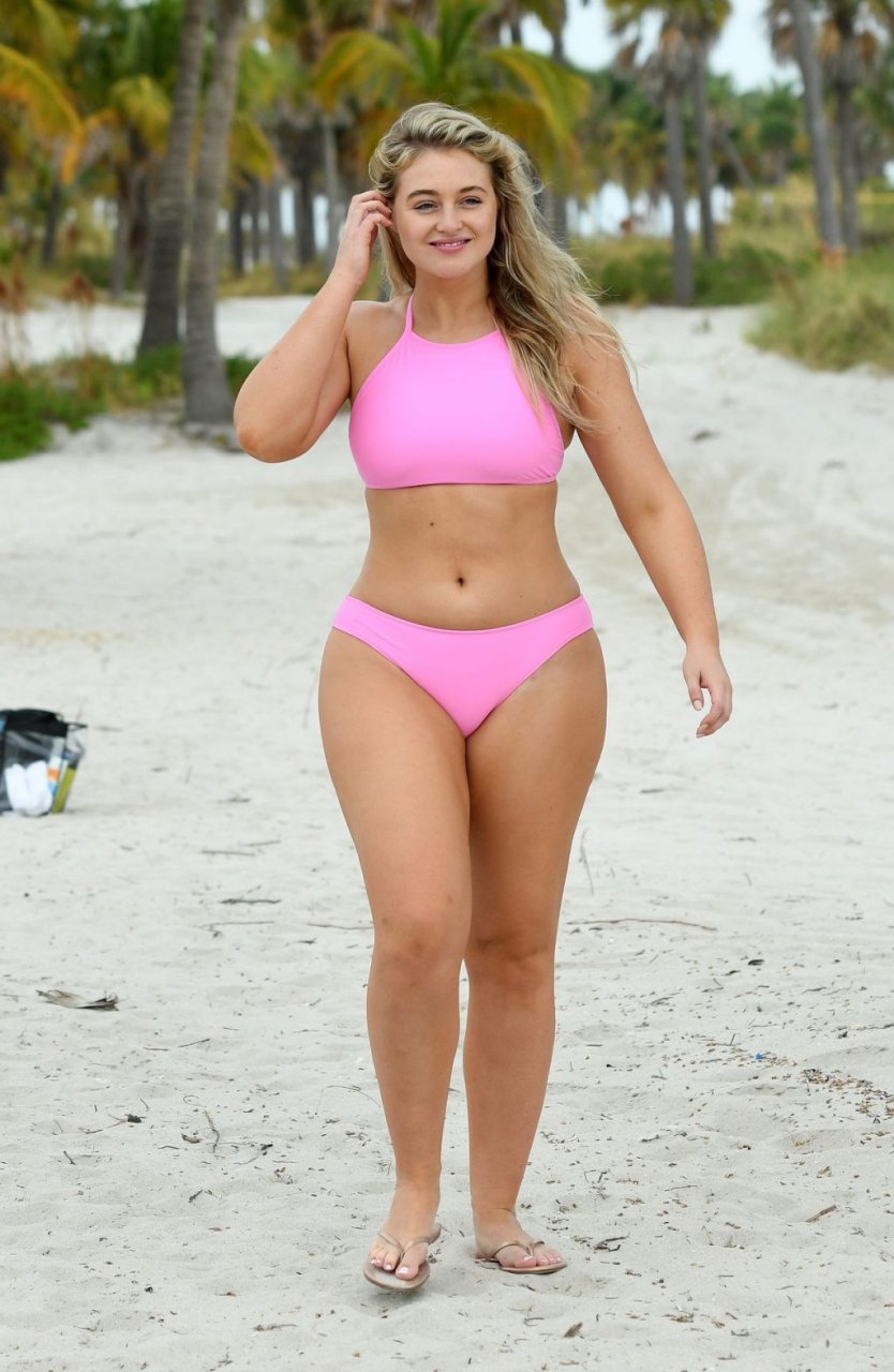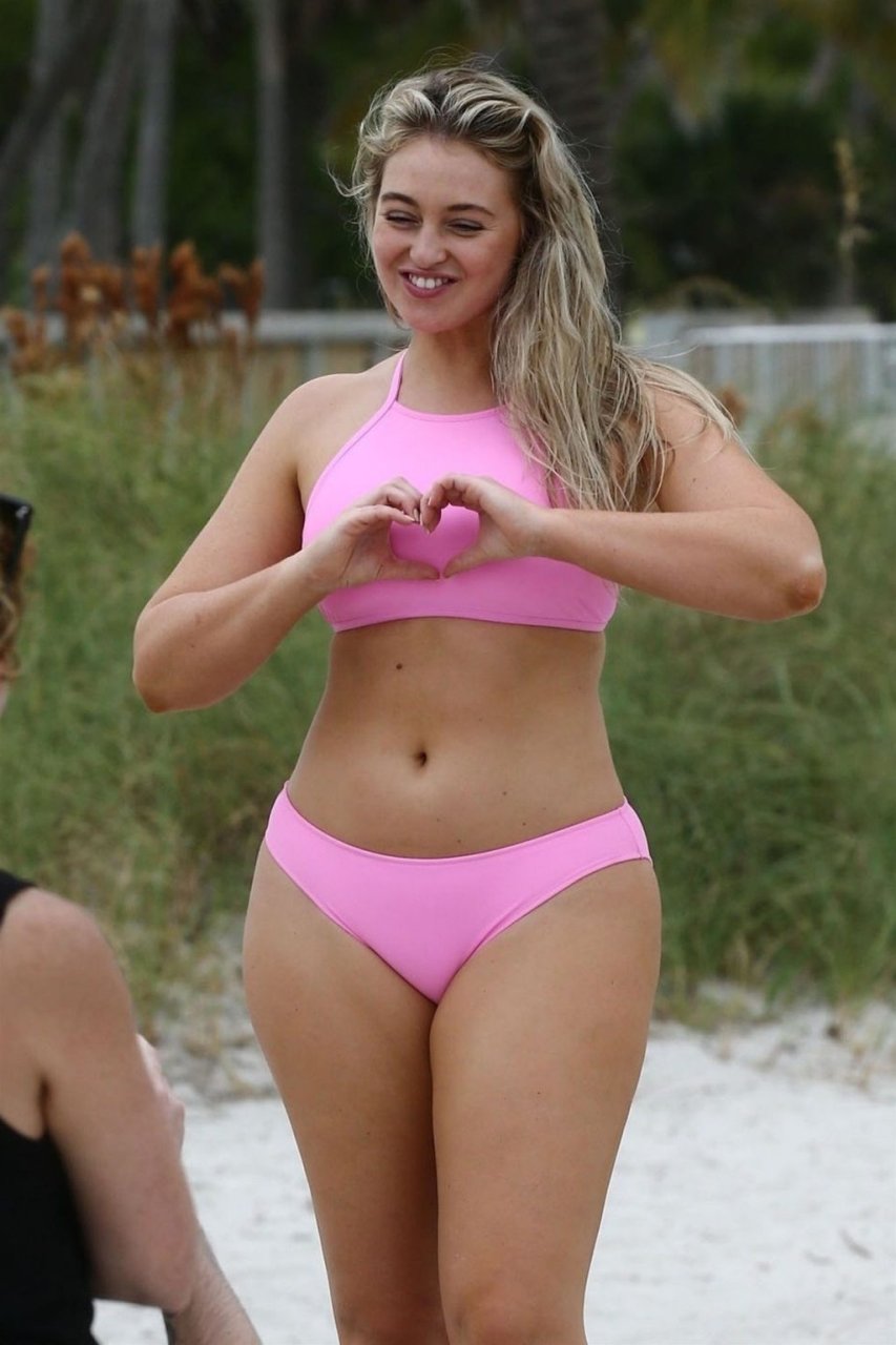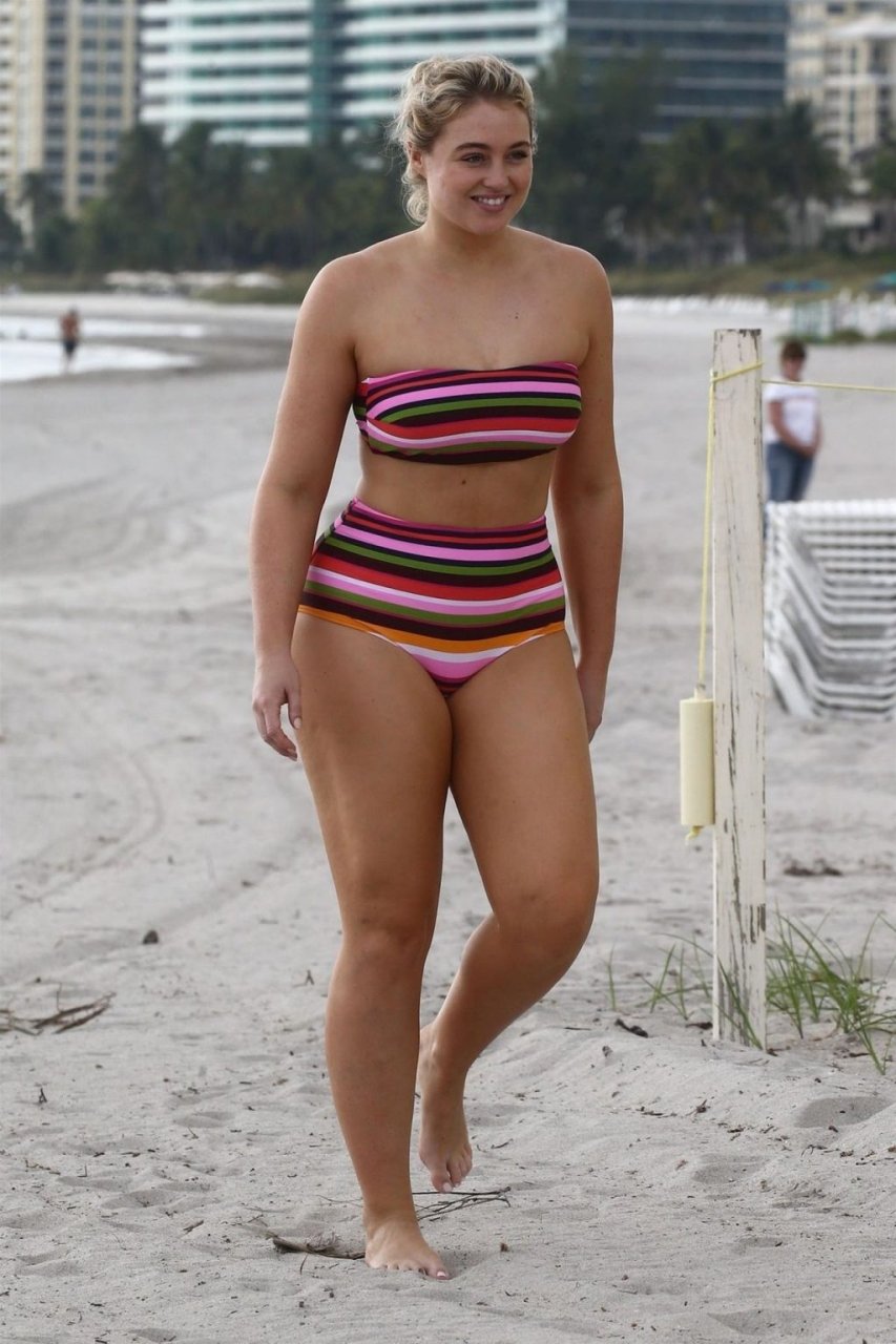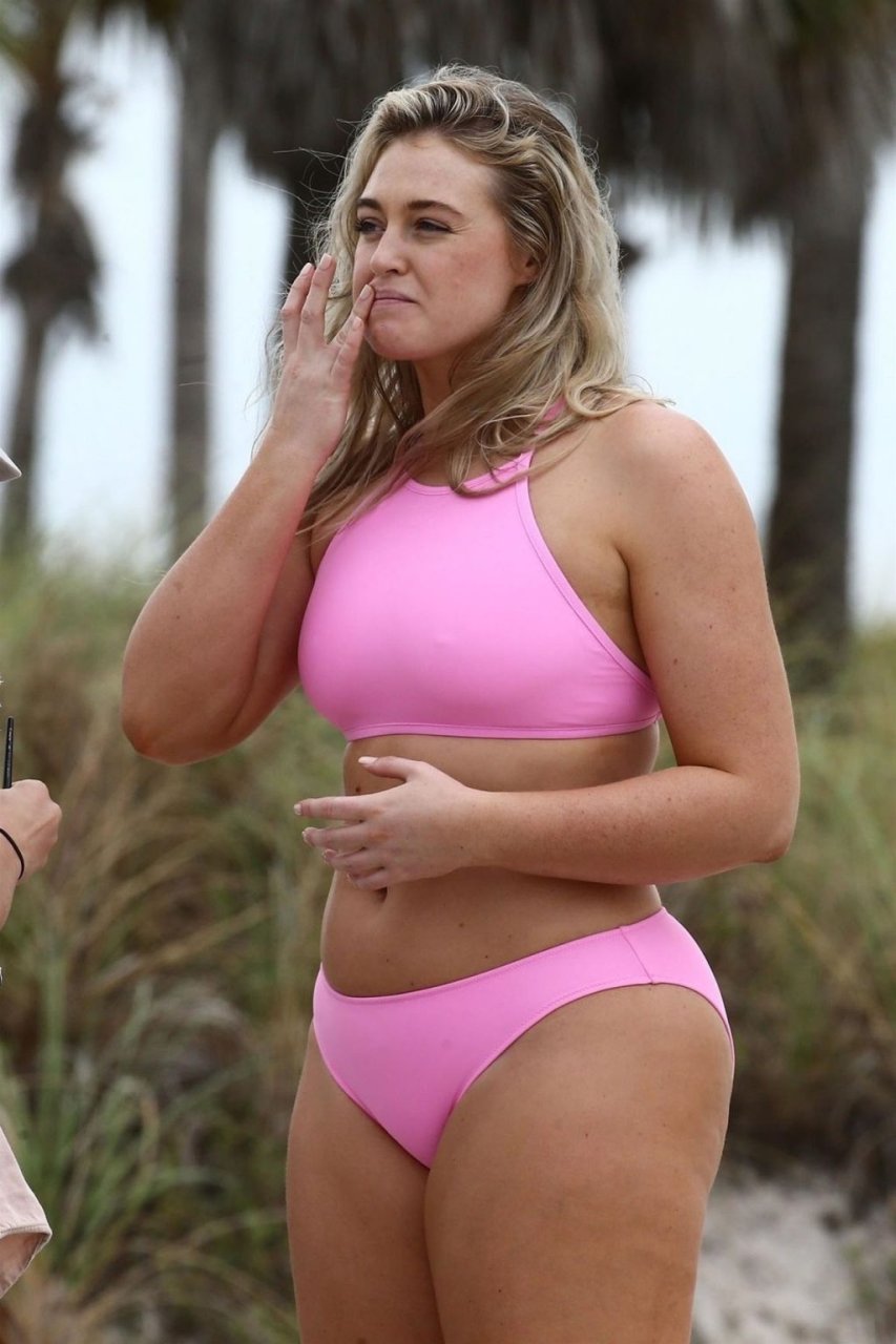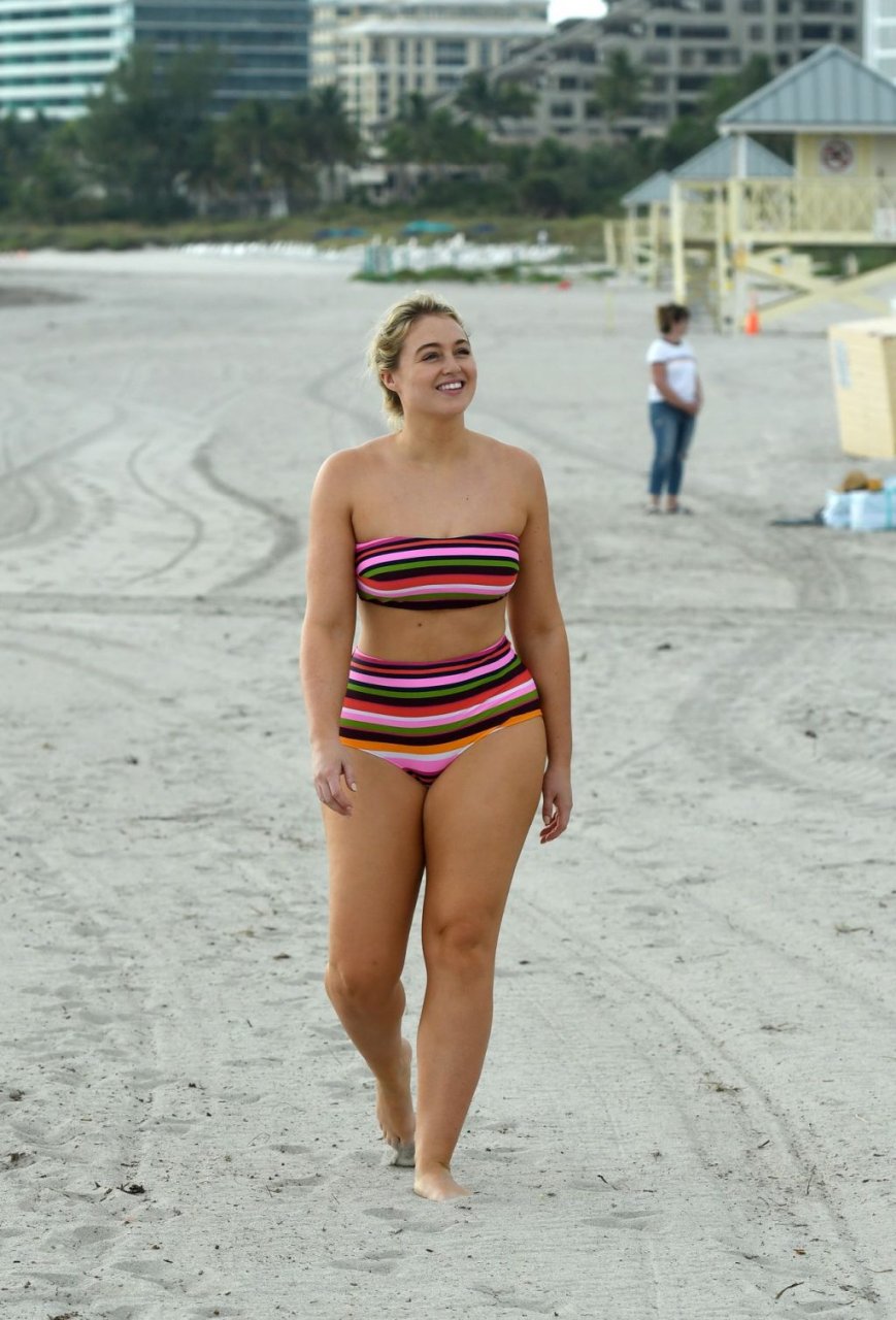 La modella britannica Iskra Lawrence è stata vista durante un servizio fotografico per Aerie sulla spiaggia di Miami, 27/11/2018. Iskra sorrideva mentre si godeva un’altra giornata di riprese per la linea di costumi da bagno.