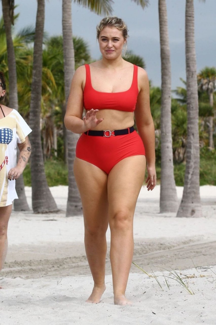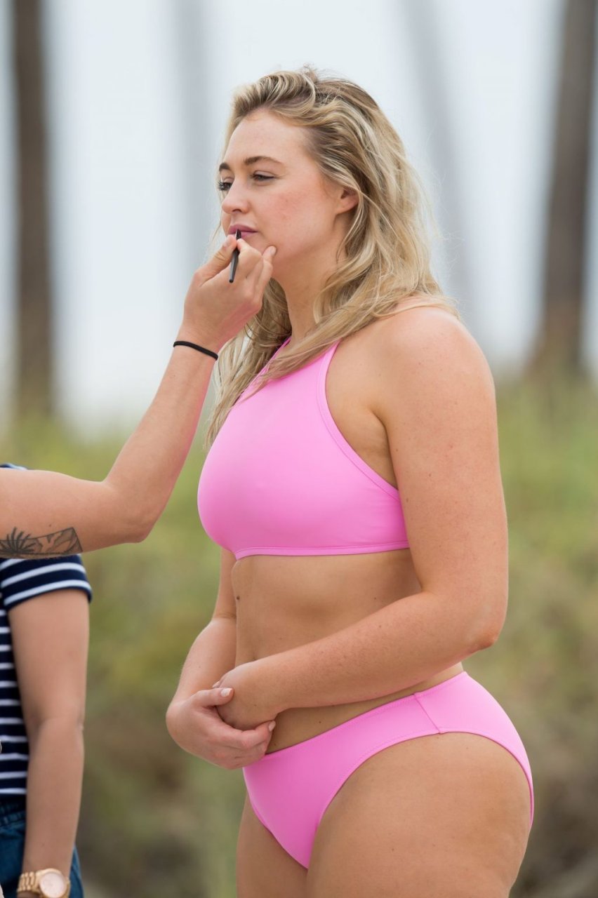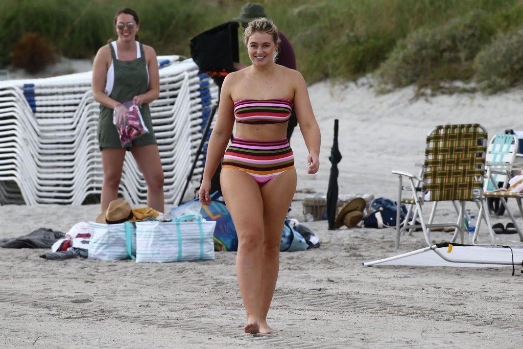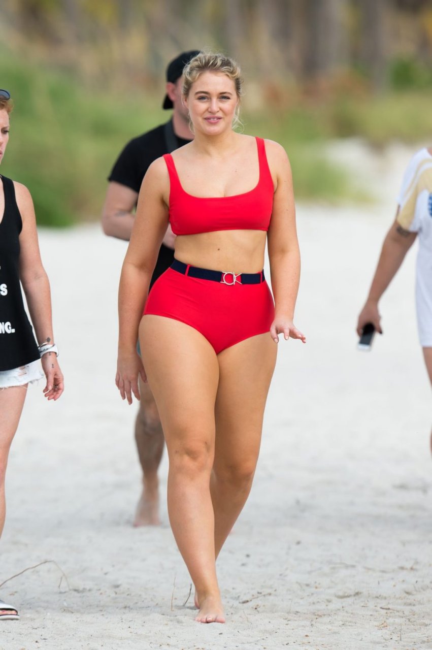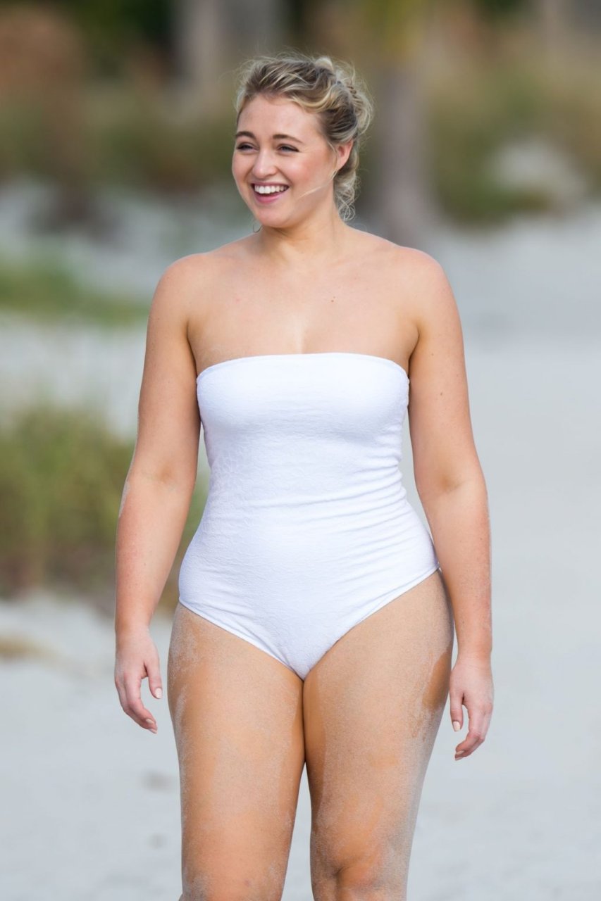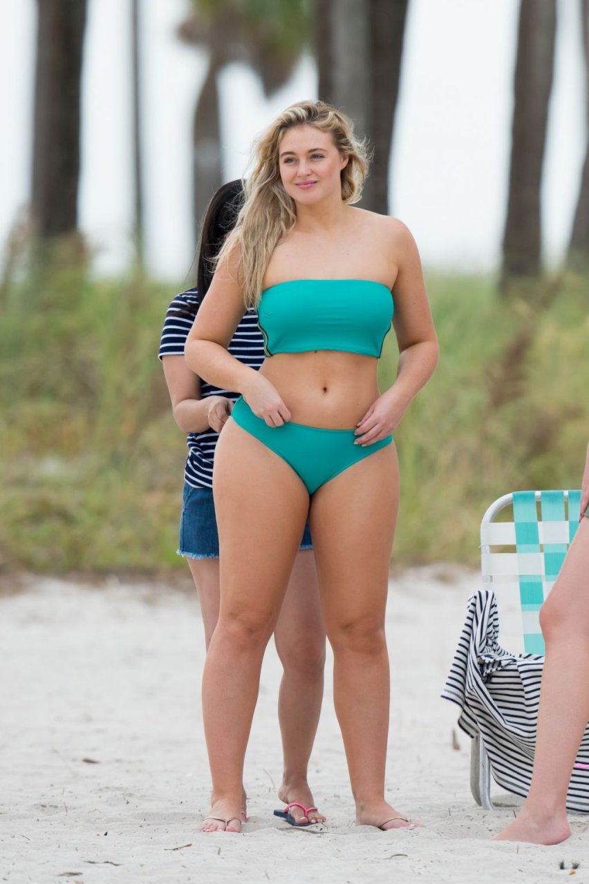 La modella britannica Iskra Lawrence è stata vista durante un servizio fotografico per Aerie sulla spiaggia di Miami, 27/11/2018. Iskra sorrideva mentre si godeva un’altra giornata di riprese per la linea di costumi da bagno.