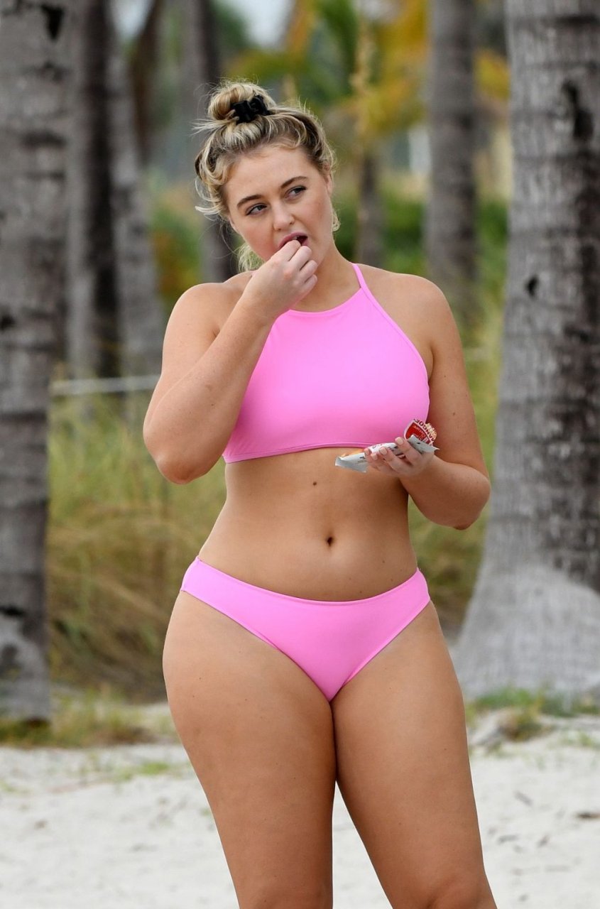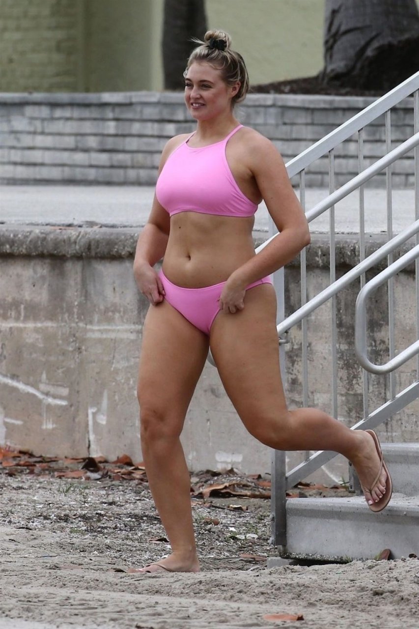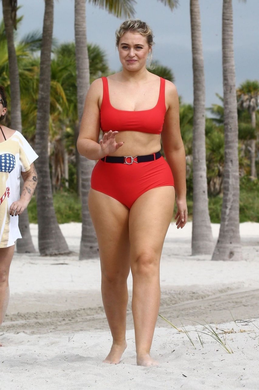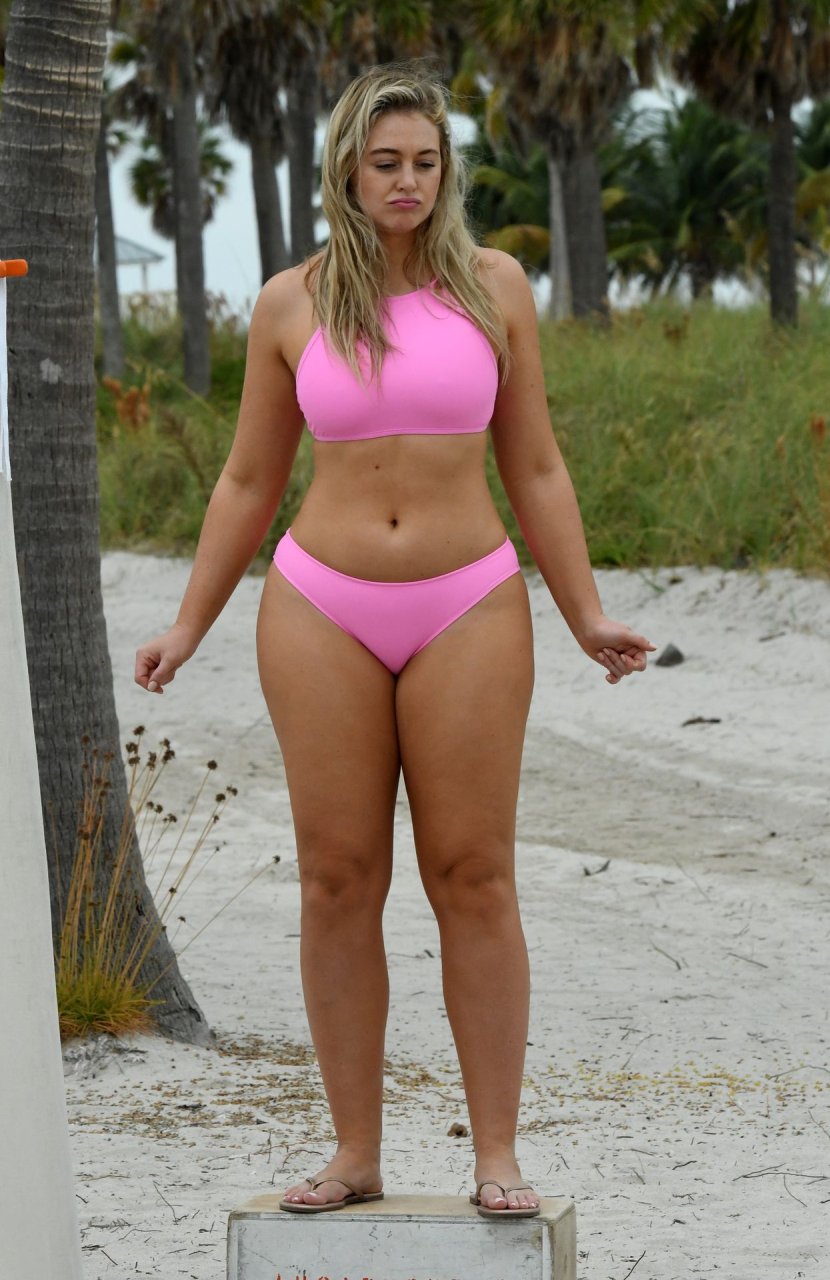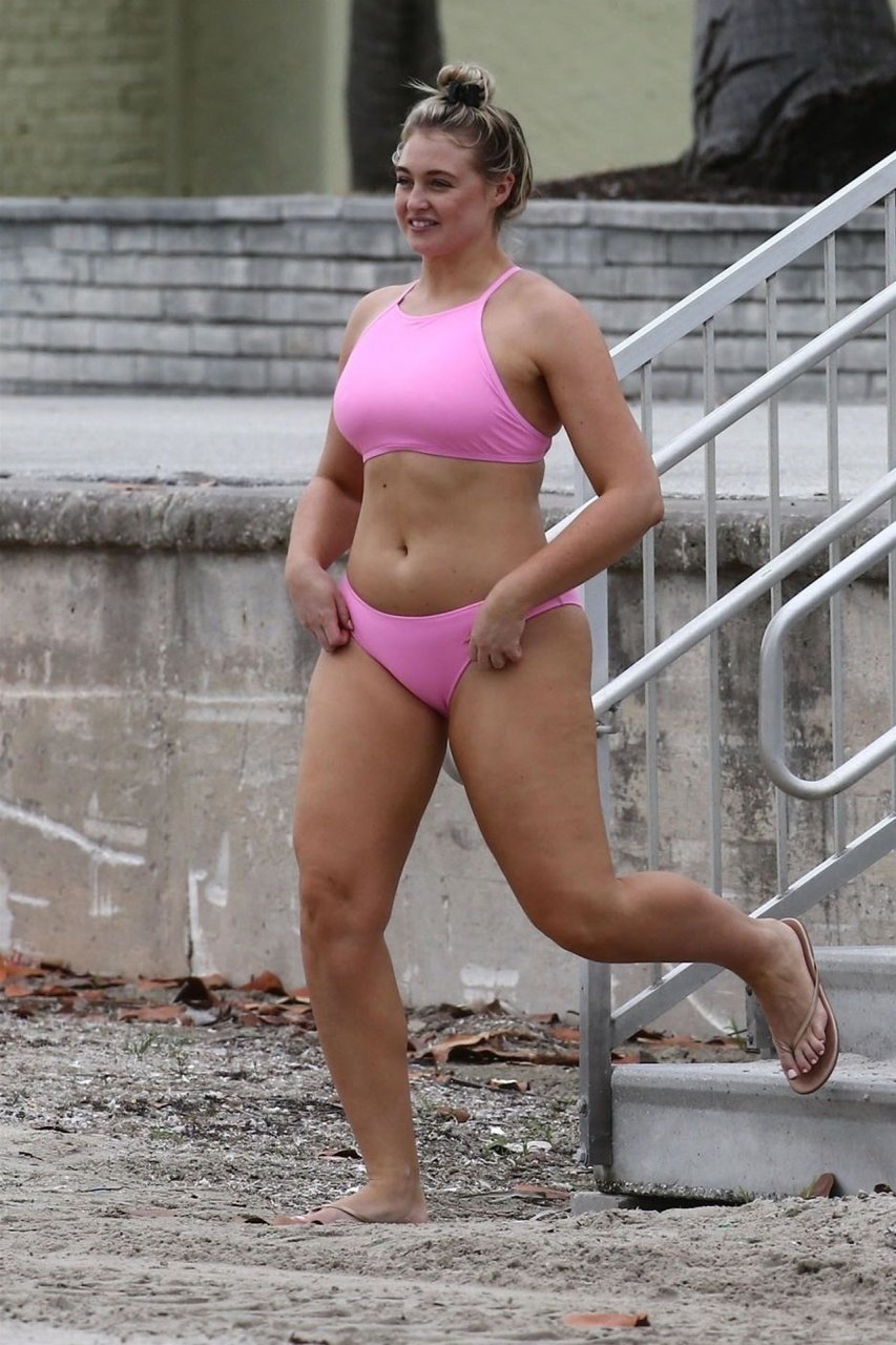 La modella britannica Iskra Lawrence è stata vista durante un servizio fotografico per Aerie sulla spiaggia di Miami, 27/11/2018. Iskra sorrideva mentre si godeva un’altra giornata di riprese per la linea di costumi da bagno.