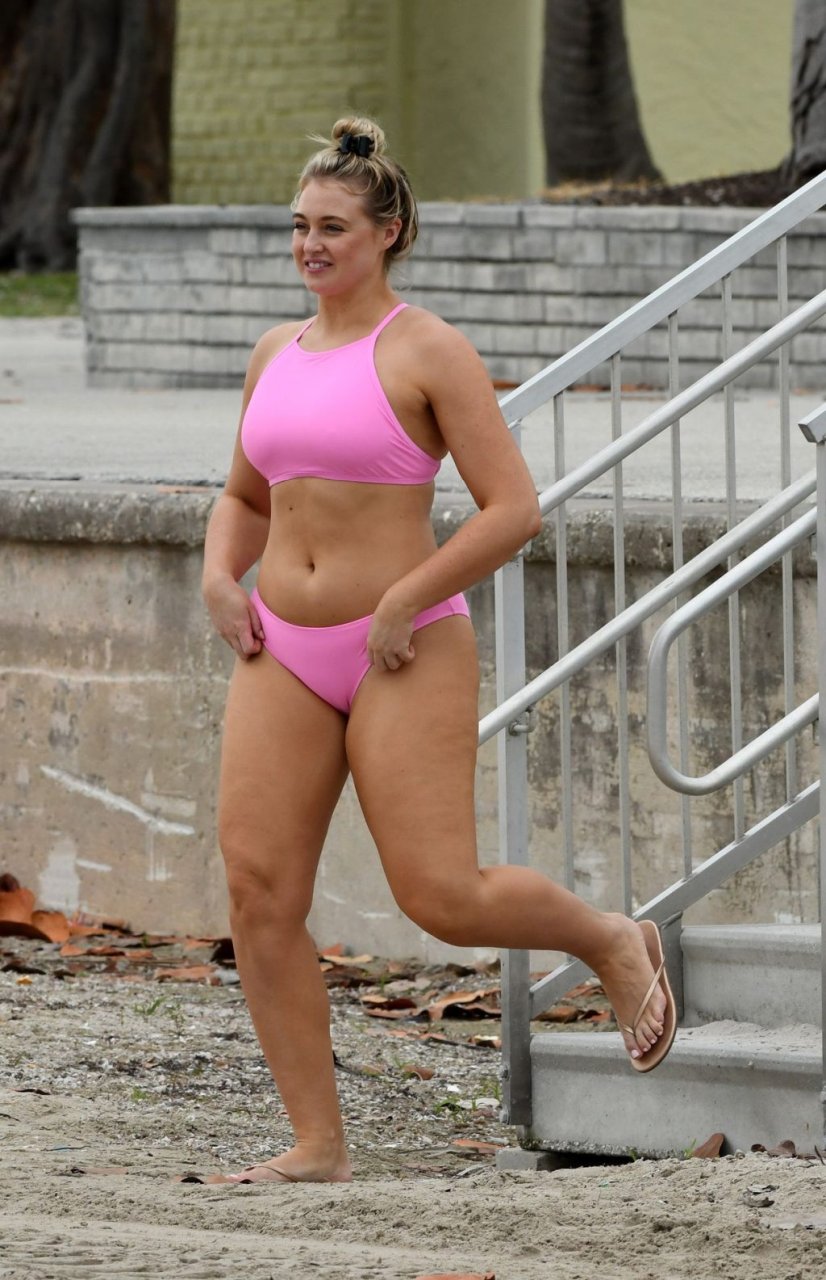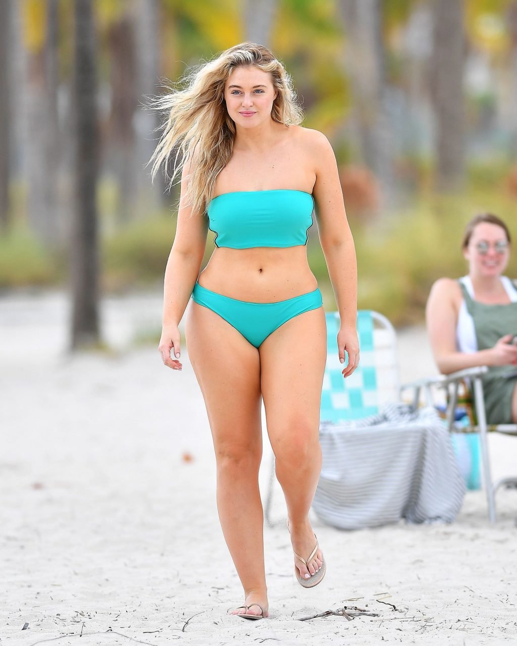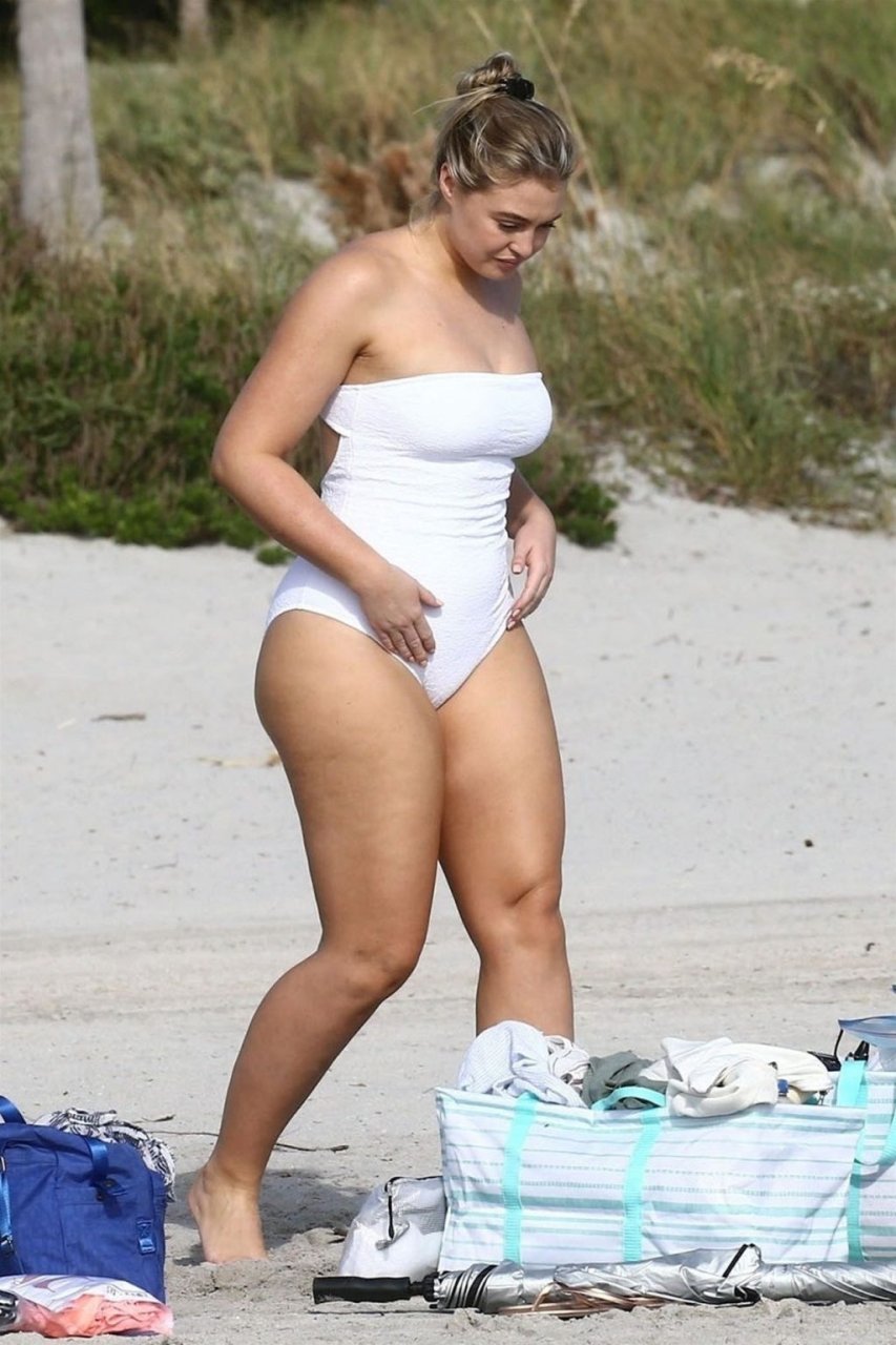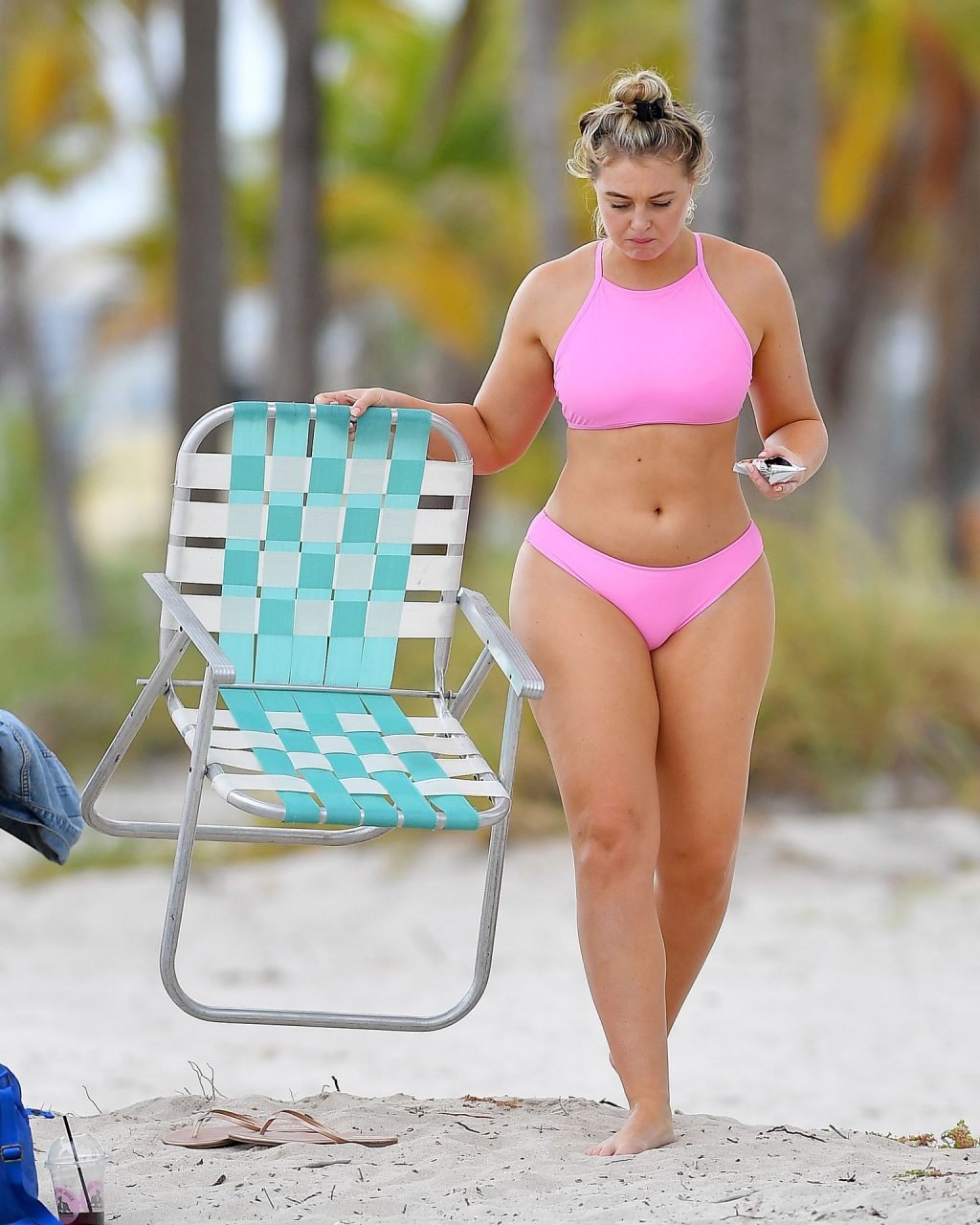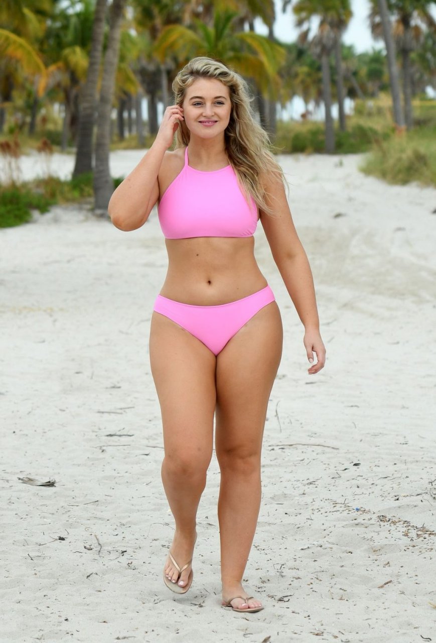 La modella britannica Iskra Lawrence è stata vista durante un servizio fotografico per Aerie sulla spiaggia di Miami, 27/11/2018. Iskra sorrideva mentre si godeva un’altra giornata di riprese per la linea di costumi da bagno.