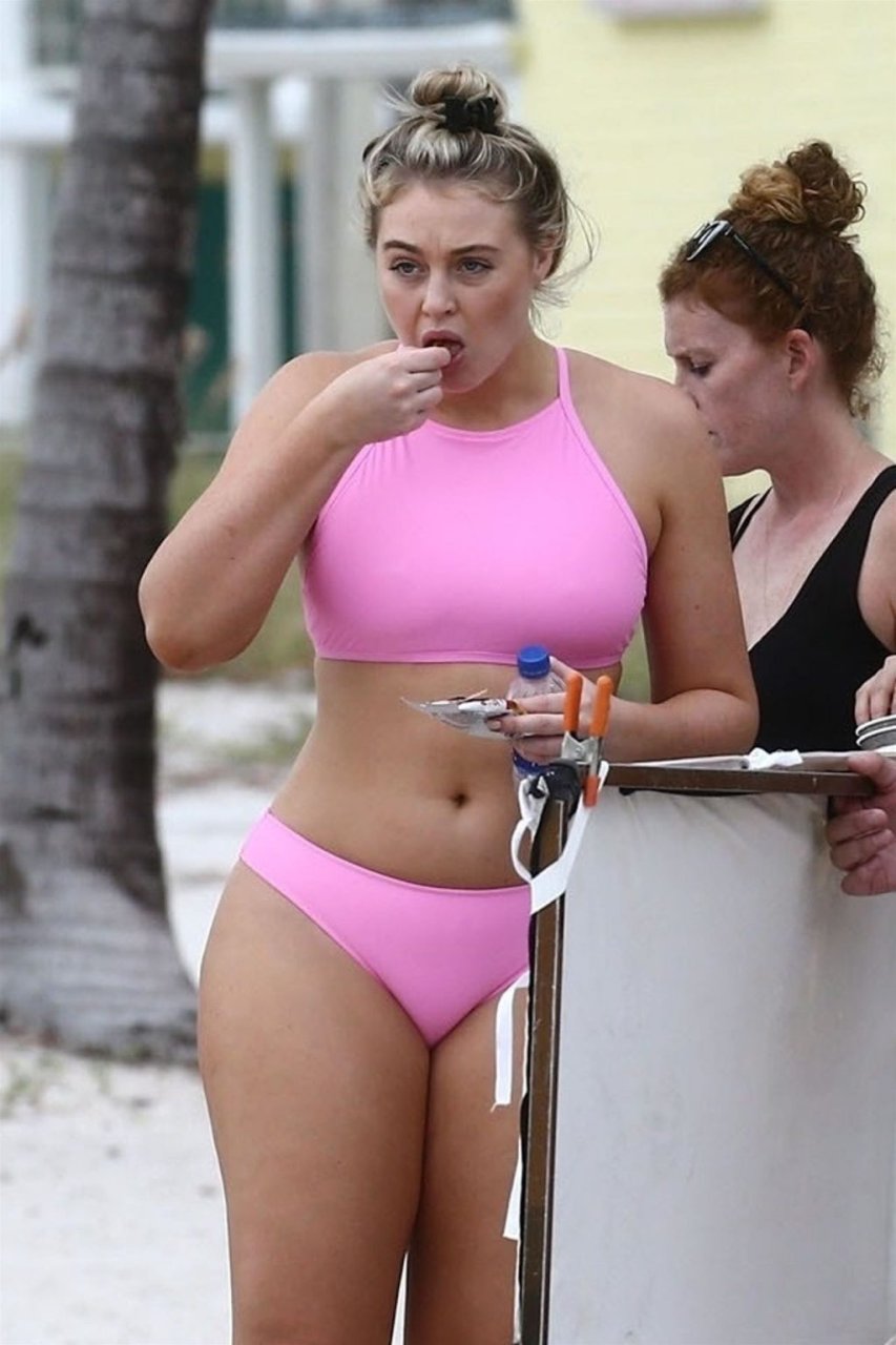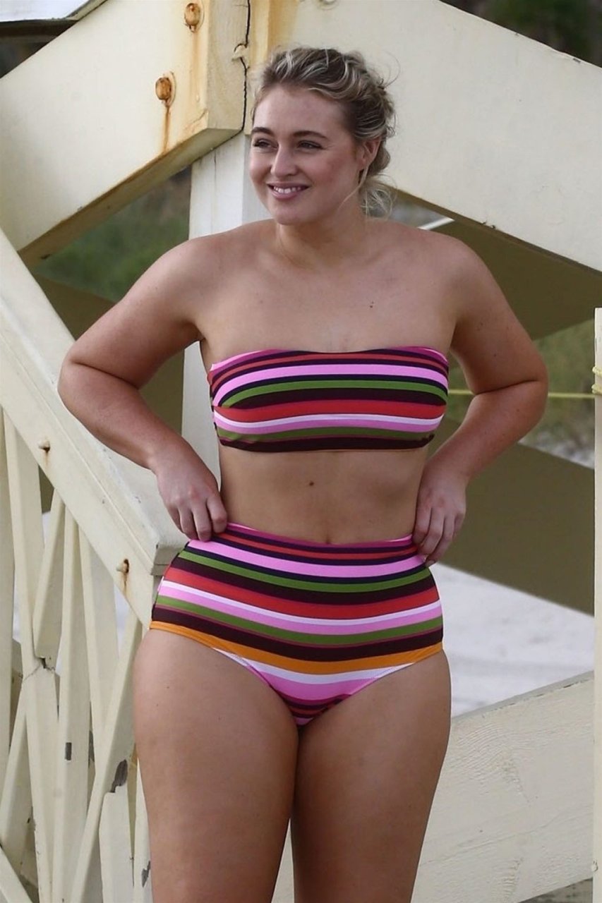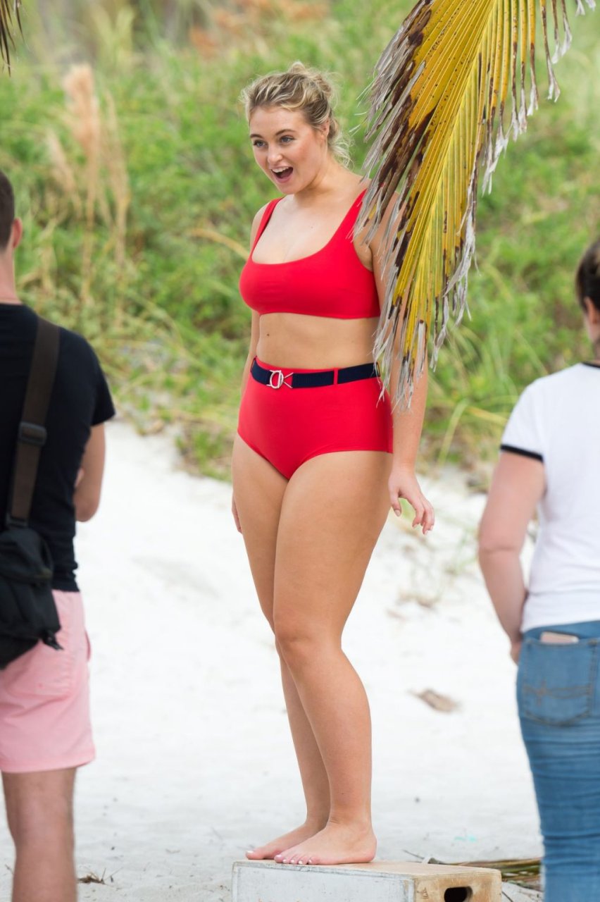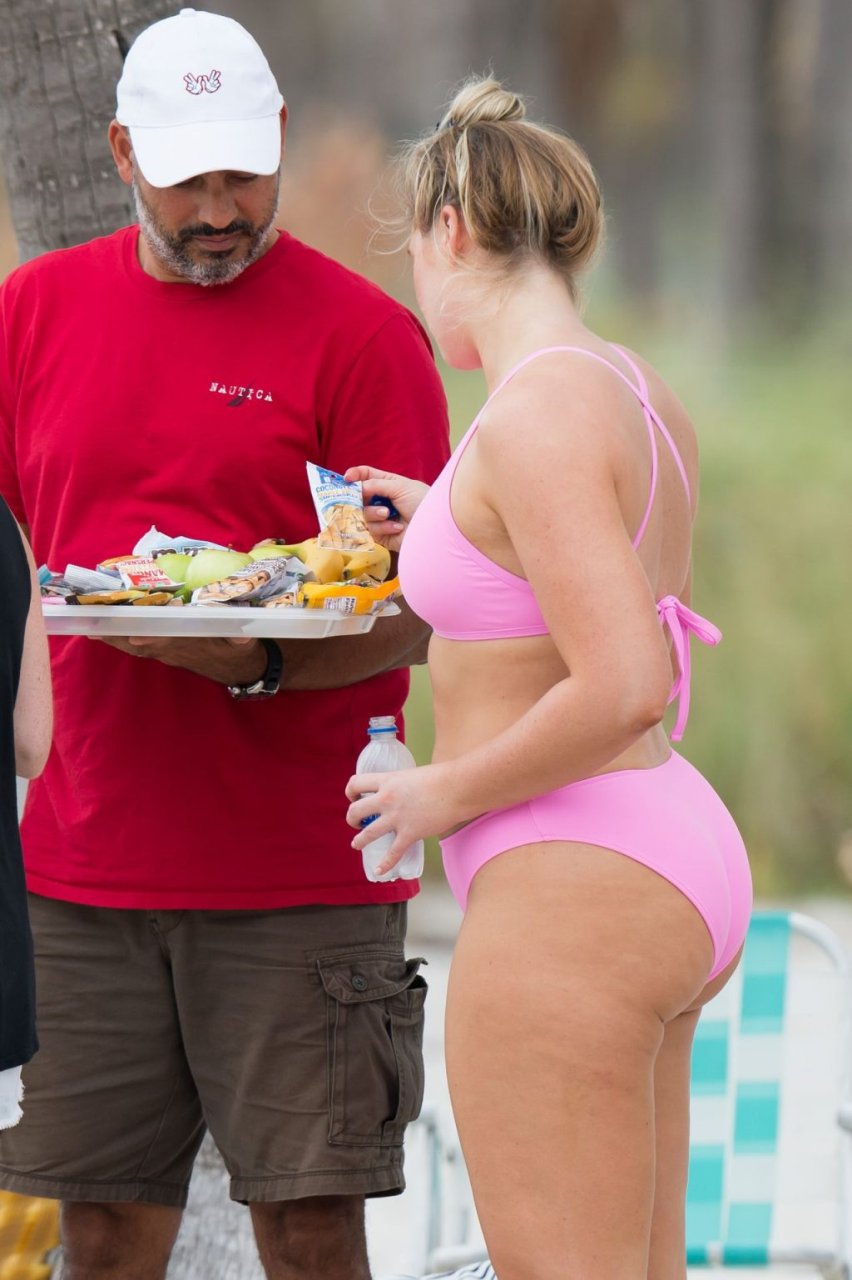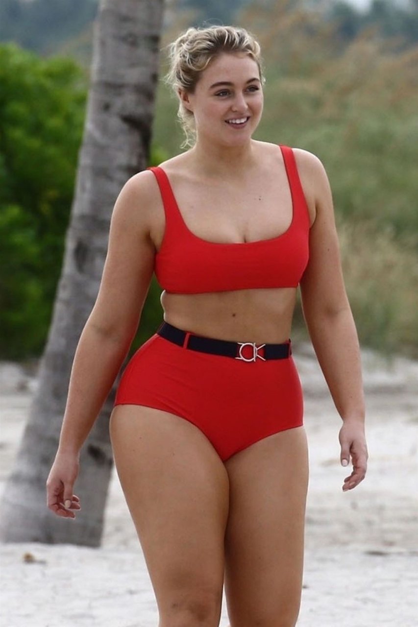 La modella britannica Iskra Lawrence è stata vista durante un servizio fotografico per Aerie sulla spiaggia di Miami, 27/11/2018. Iskra sorrideva mentre si godeva un’altra giornata di riprese per la linea di costumi da bagno.