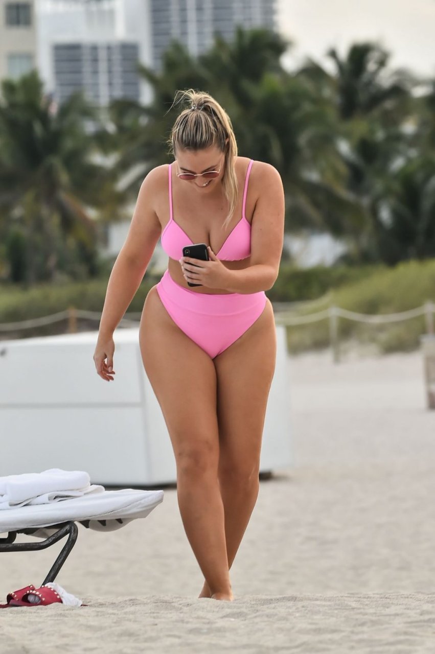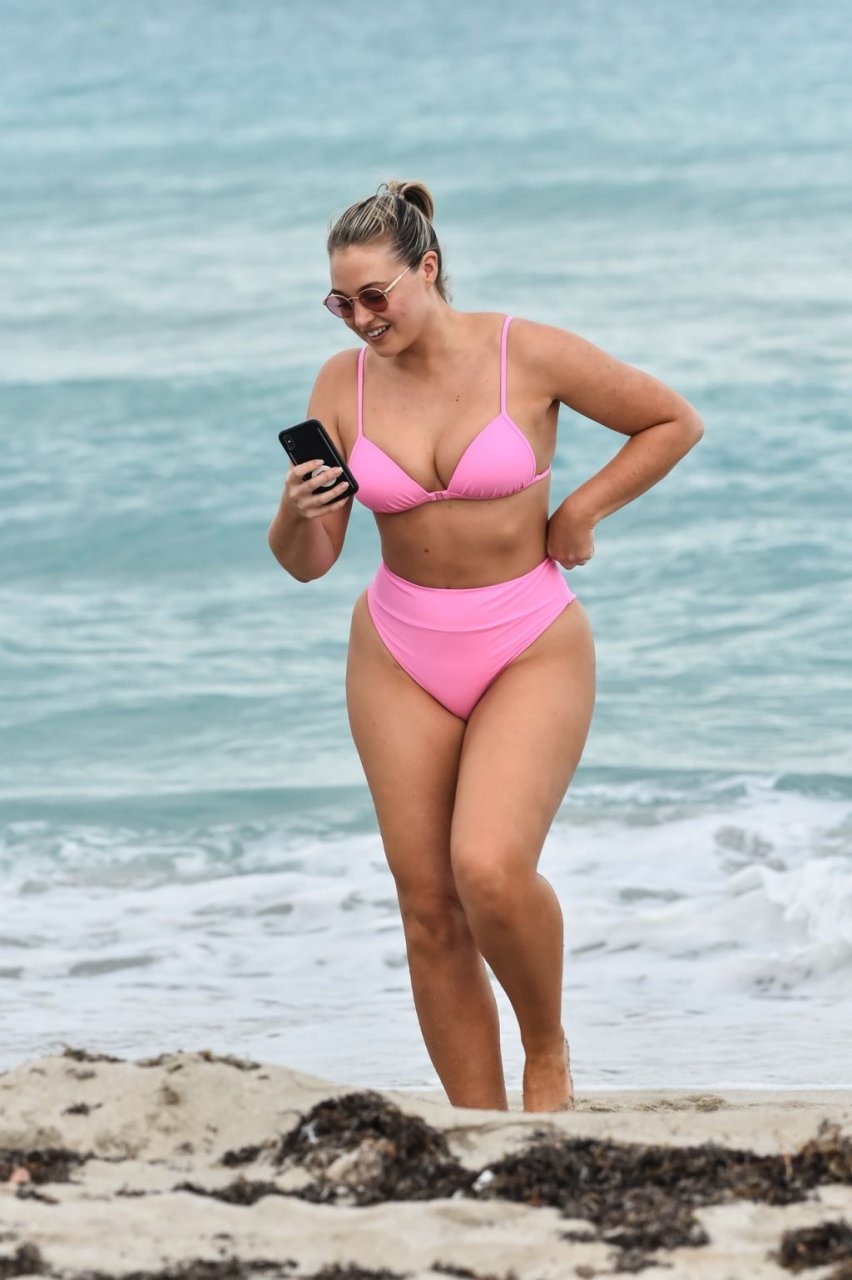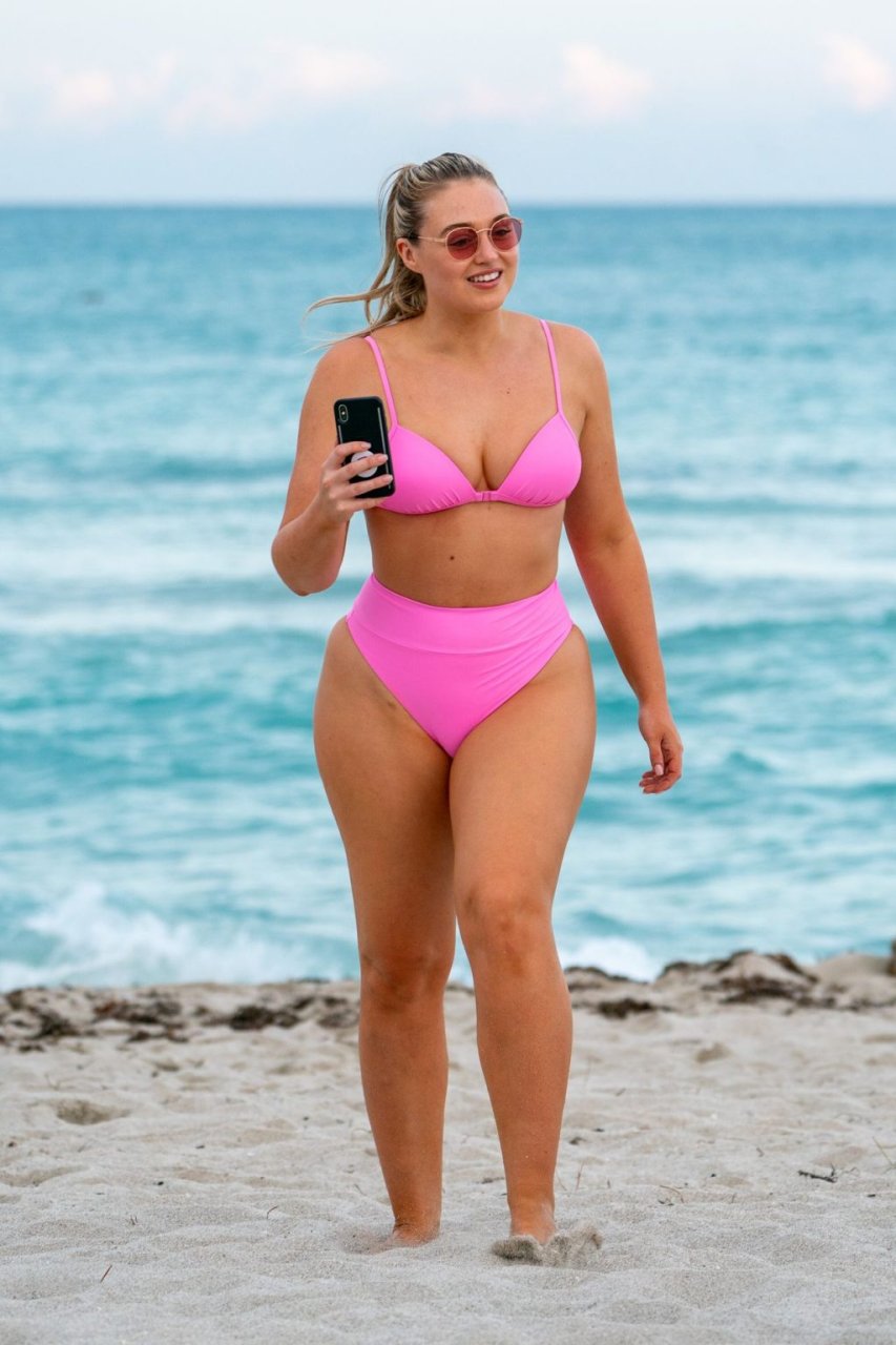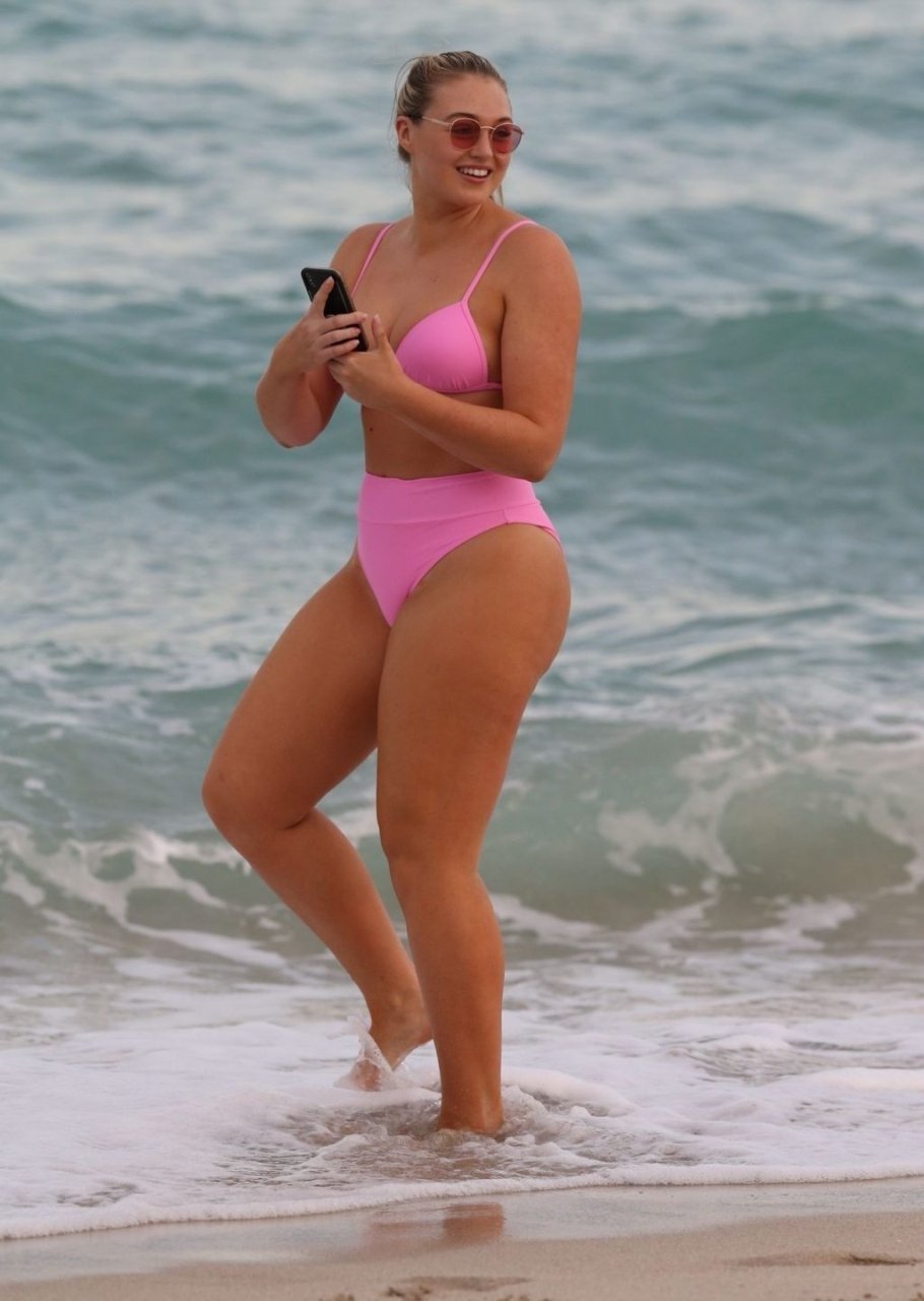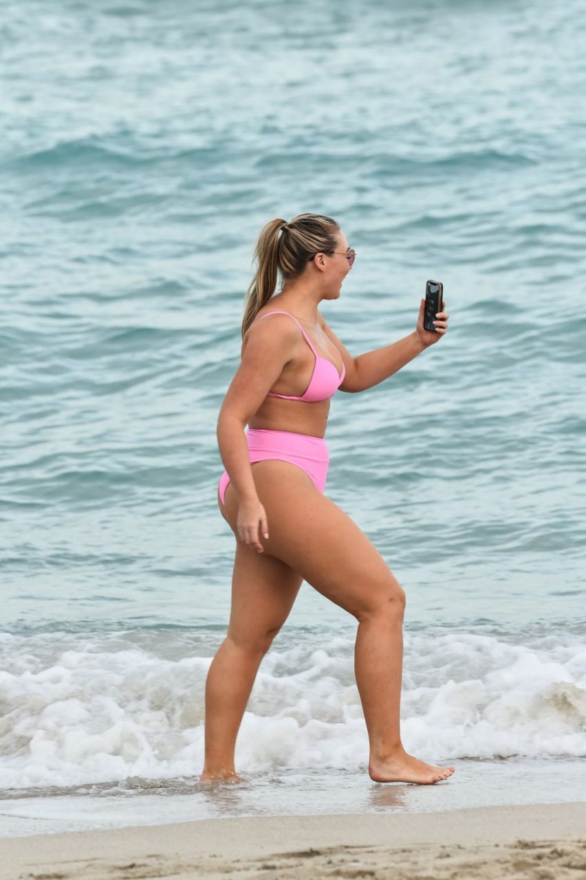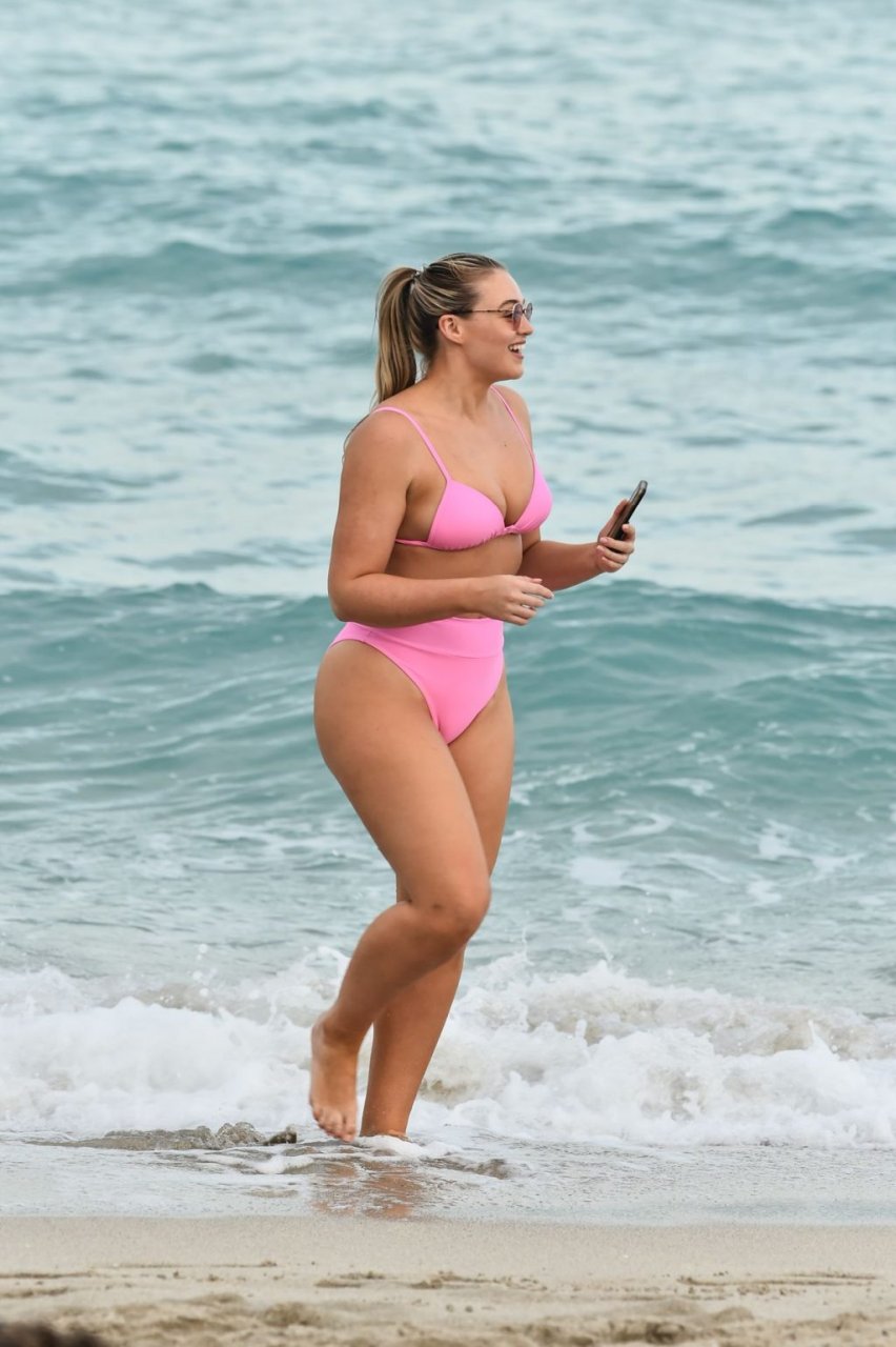 La modella Iskra Lawrence mostra le sue curve in spiaggia con un bikini rosa a Miami, 12/09/2018. Iskra è splendida mentre si gode la sua giornata in spiaggia.