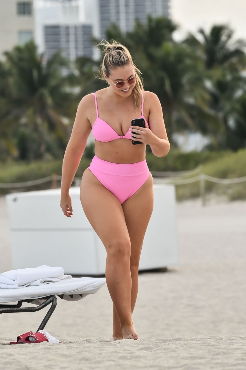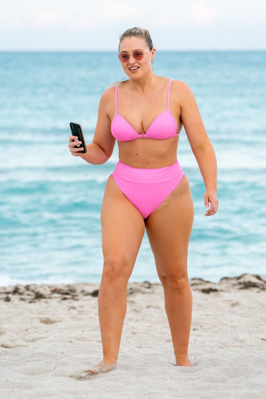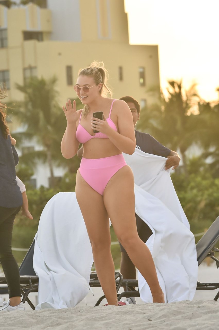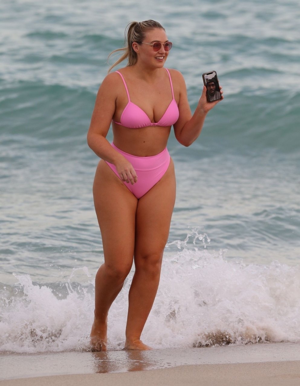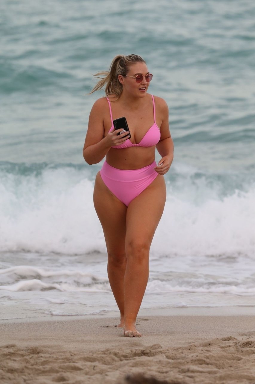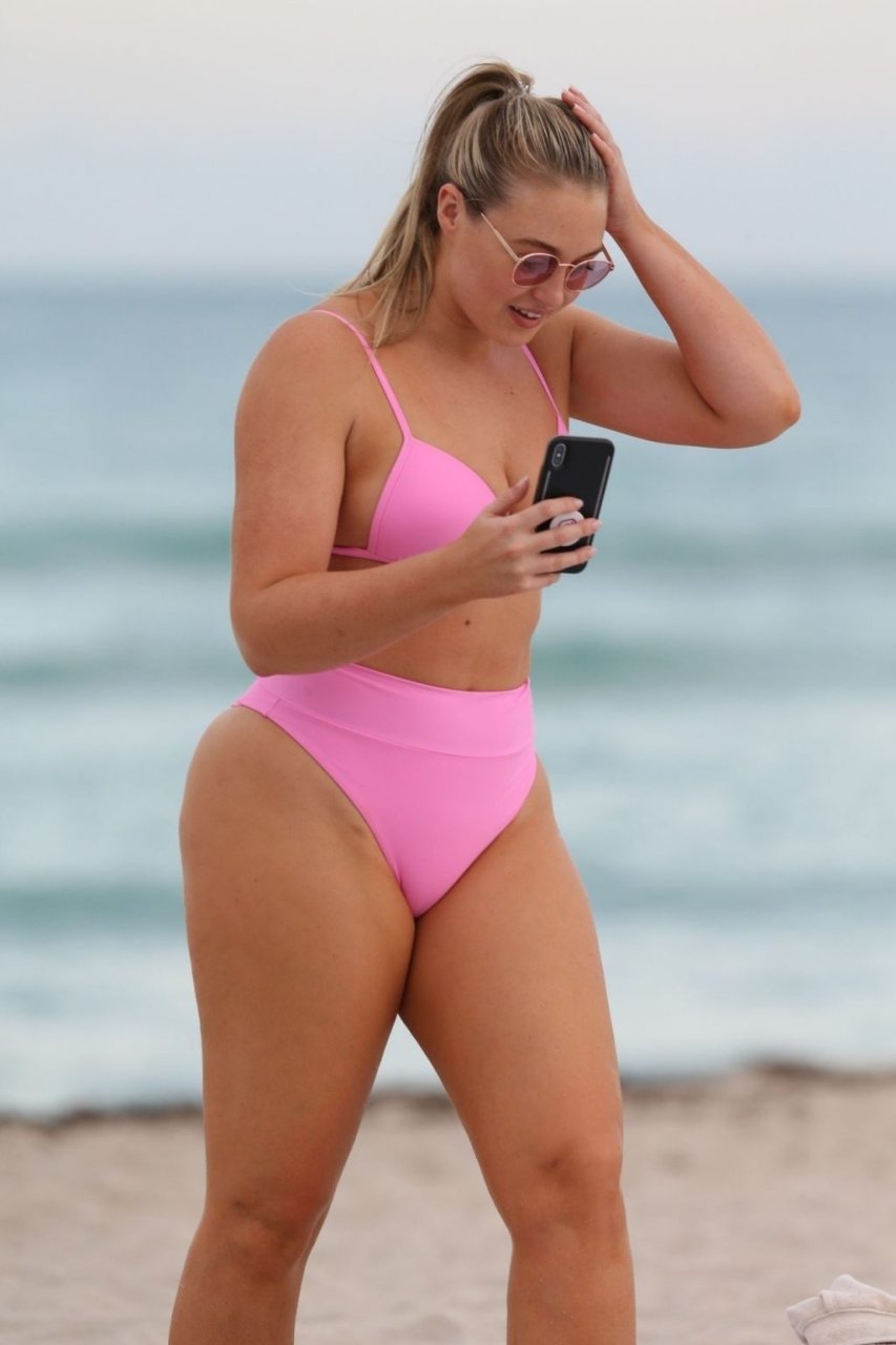 La modella Iskra Lawrence mostra le sue curve in spiaggia con un bikini rosa a Miami, 12/09/2018. Iskra è splendida mentre si gode la sua giornata in spiaggia.
