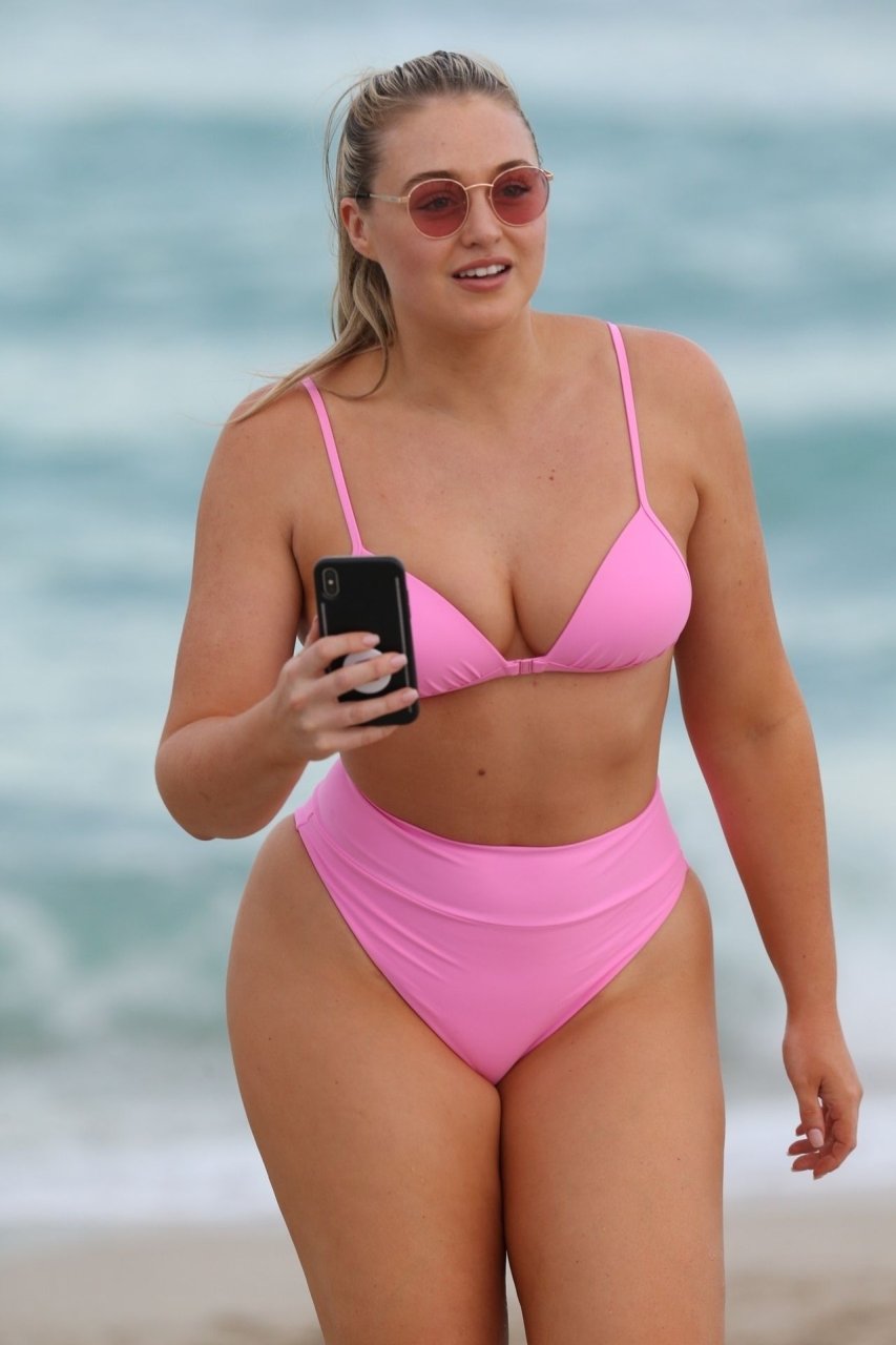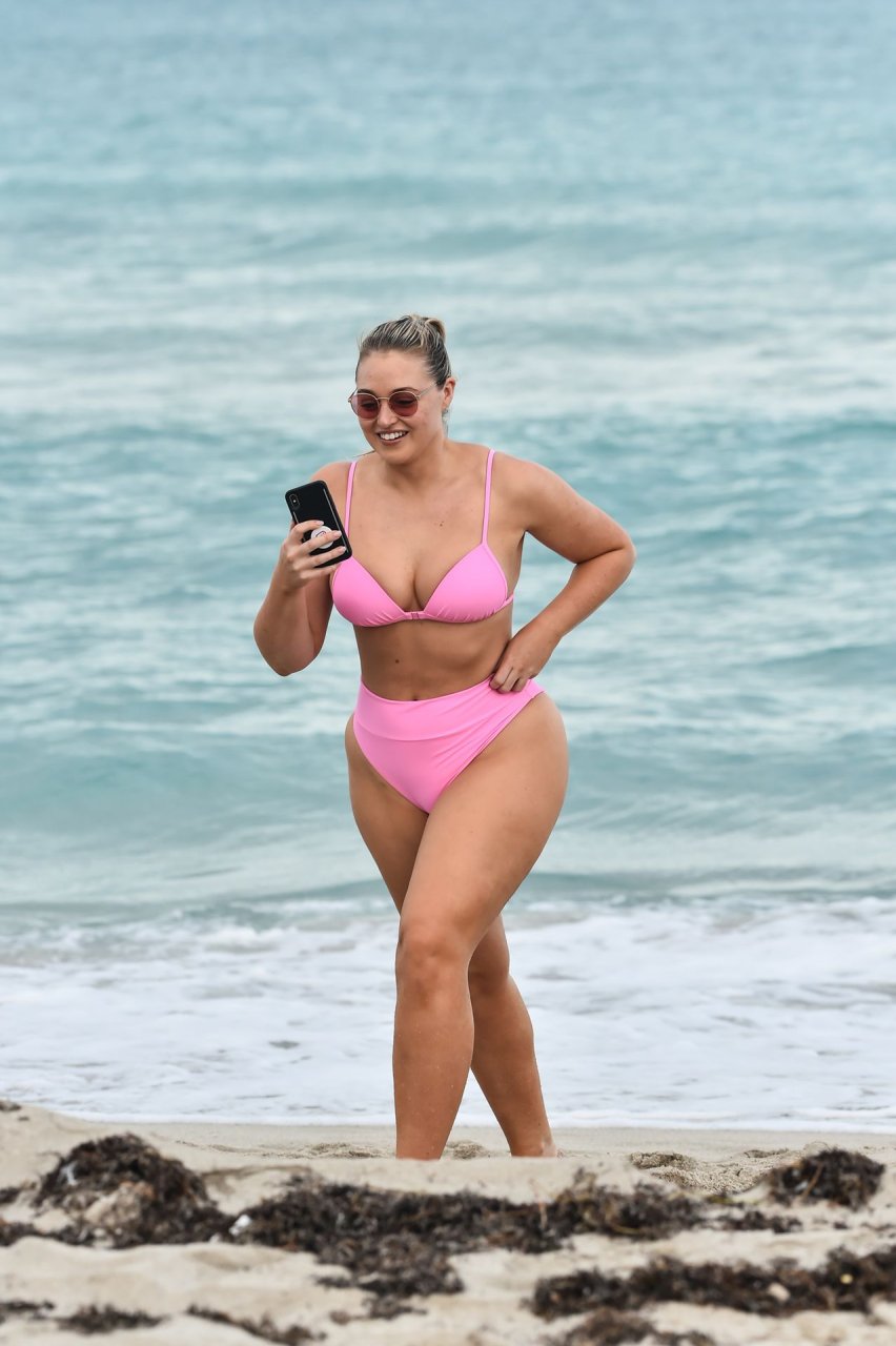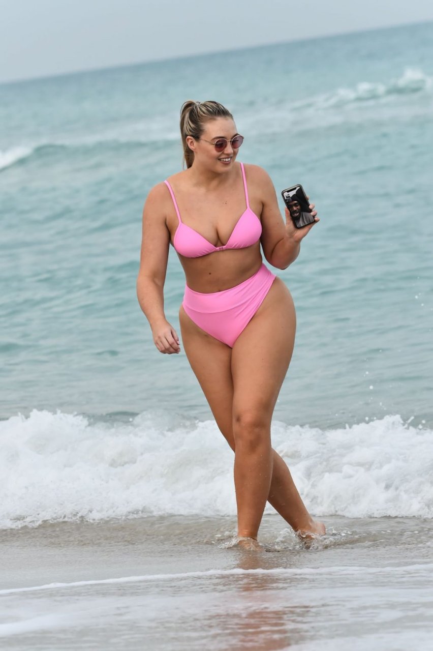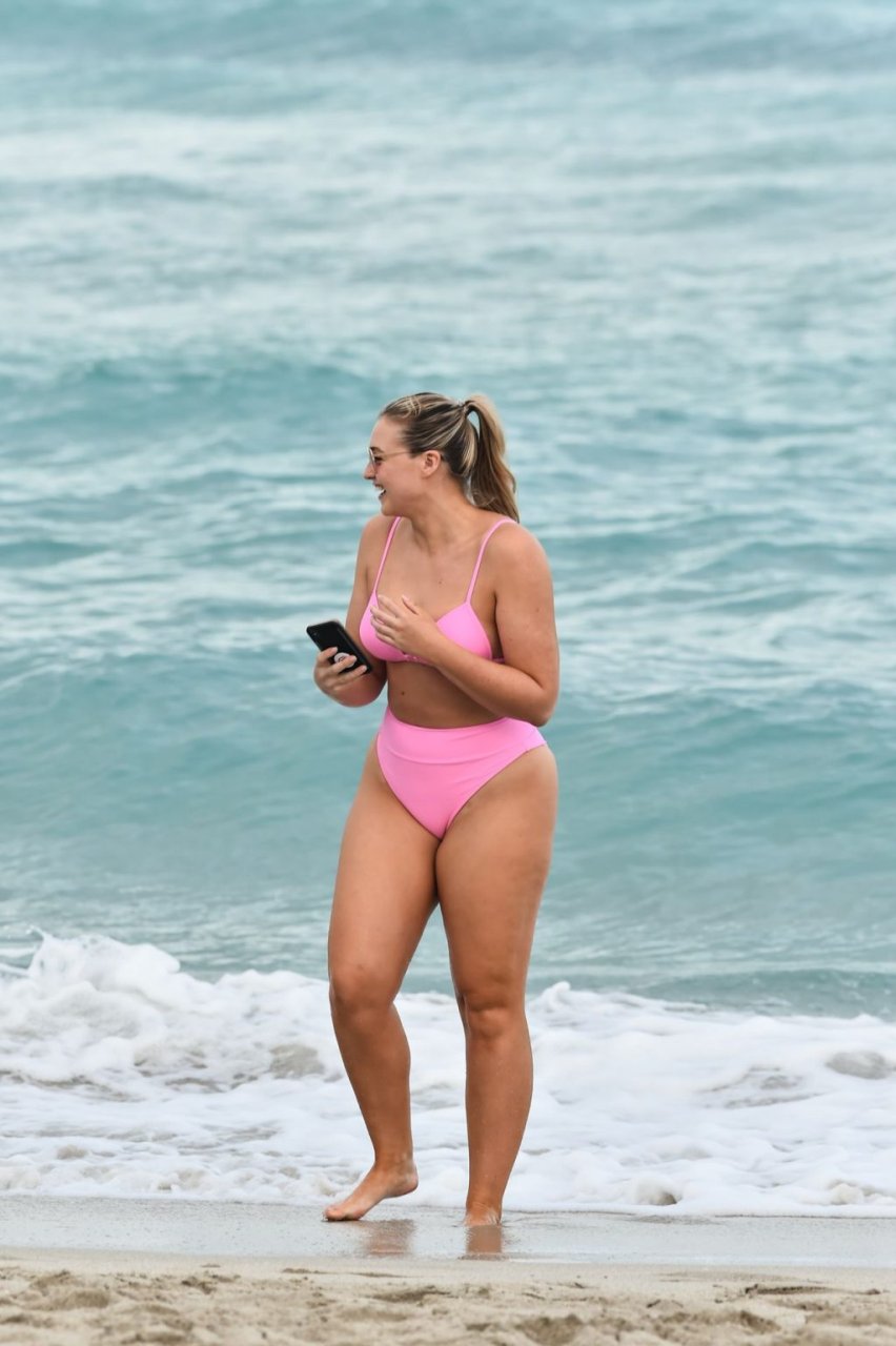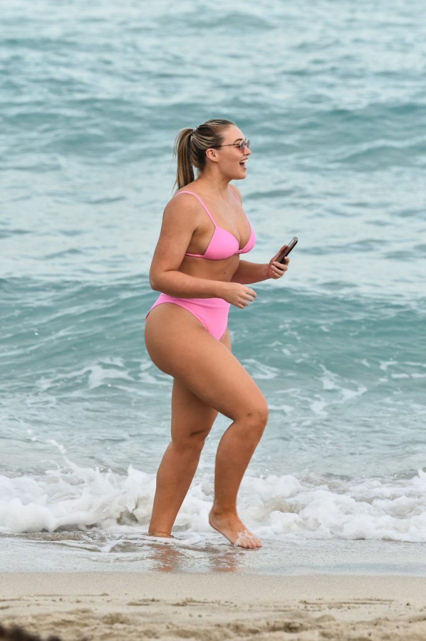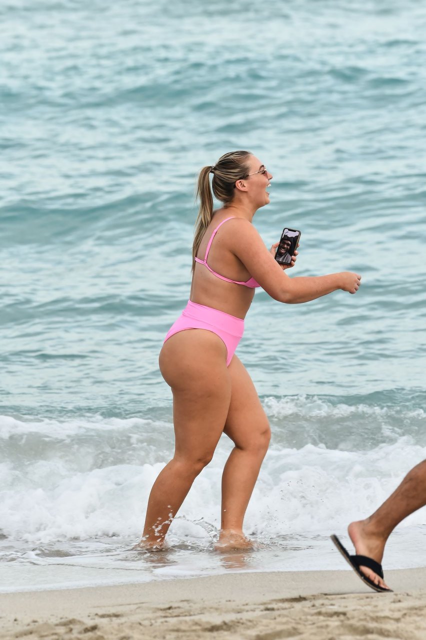 La modella Iskra Lawrence mostra le sue curve in spiaggia con un bikini rosa a Miami, 12/09/2018. Iskra è splendida mentre si gode la sua giornata in spiaggia.