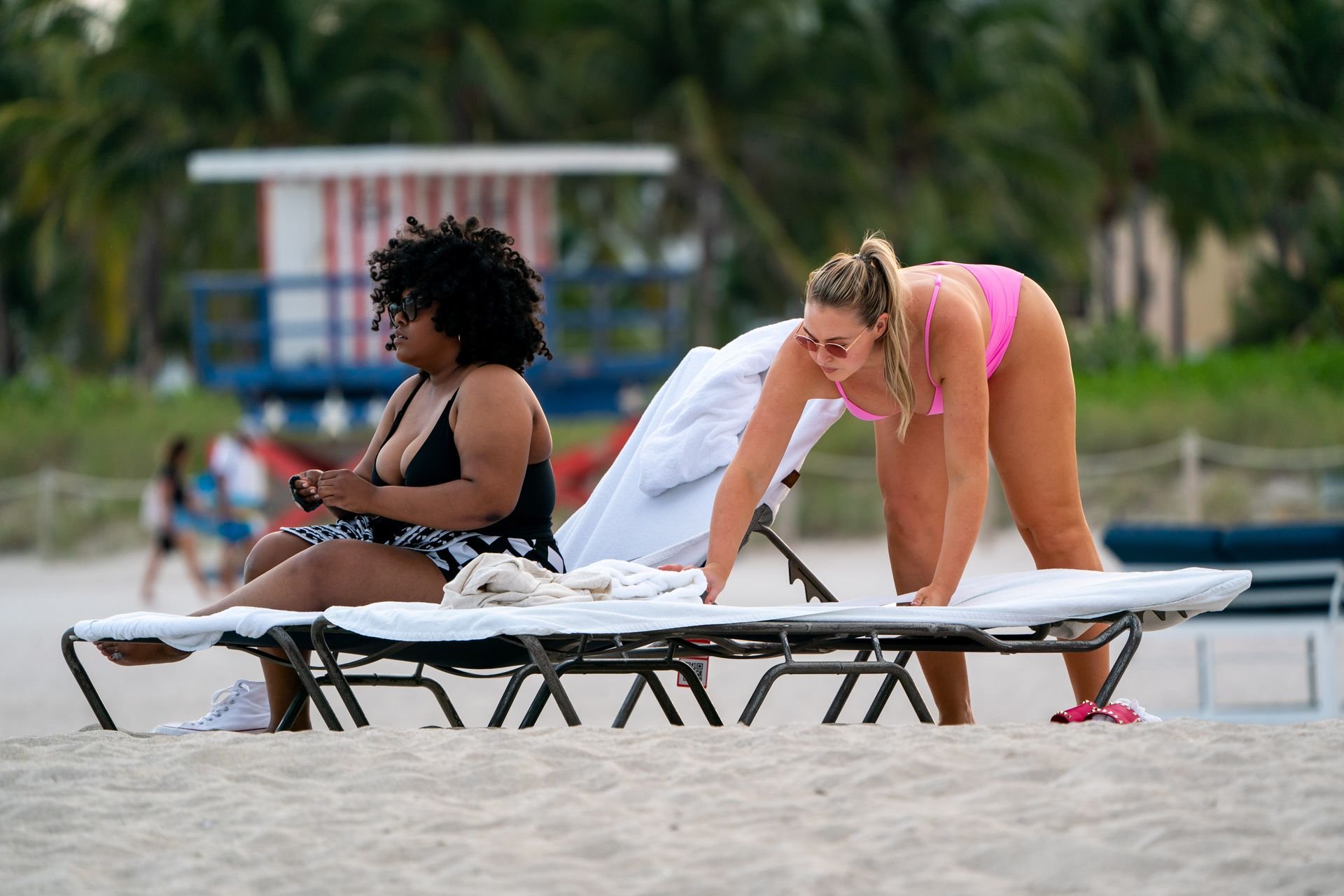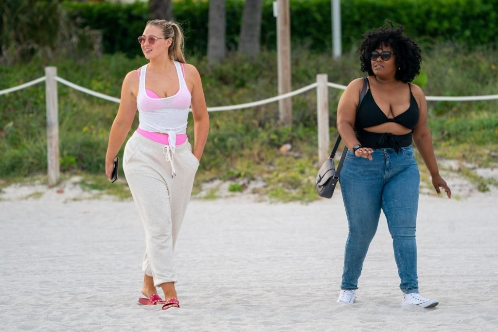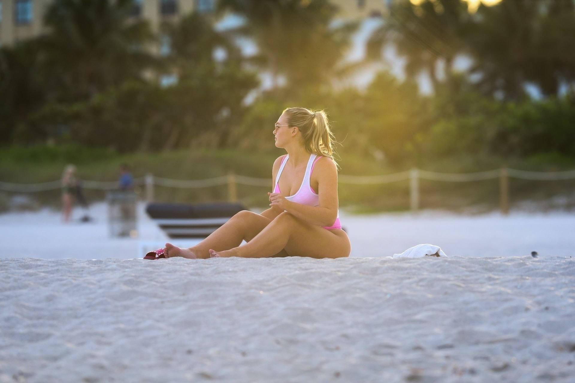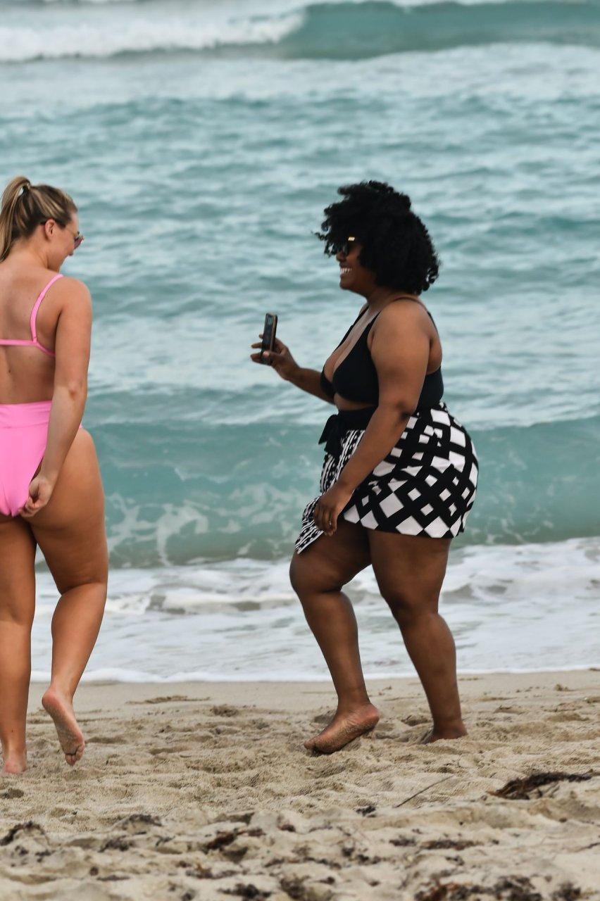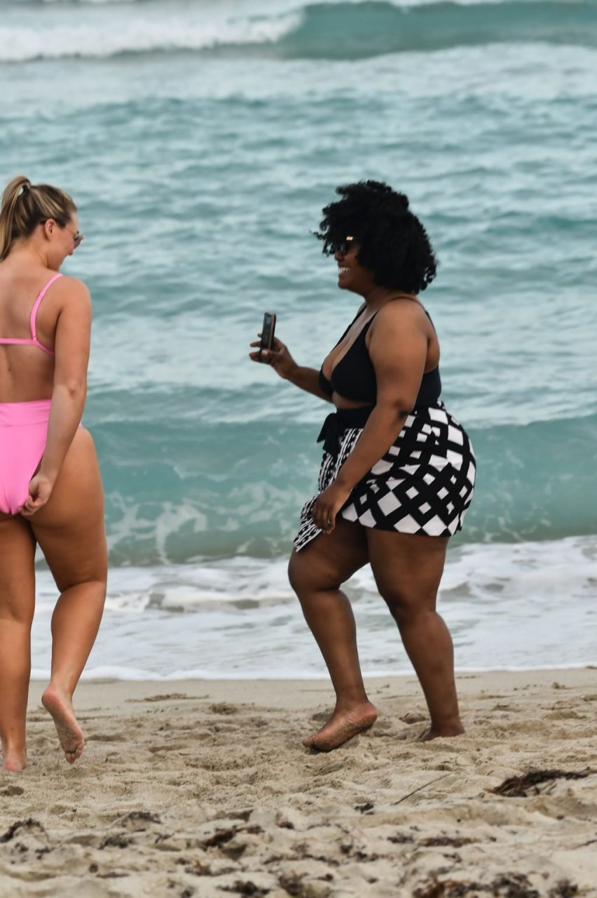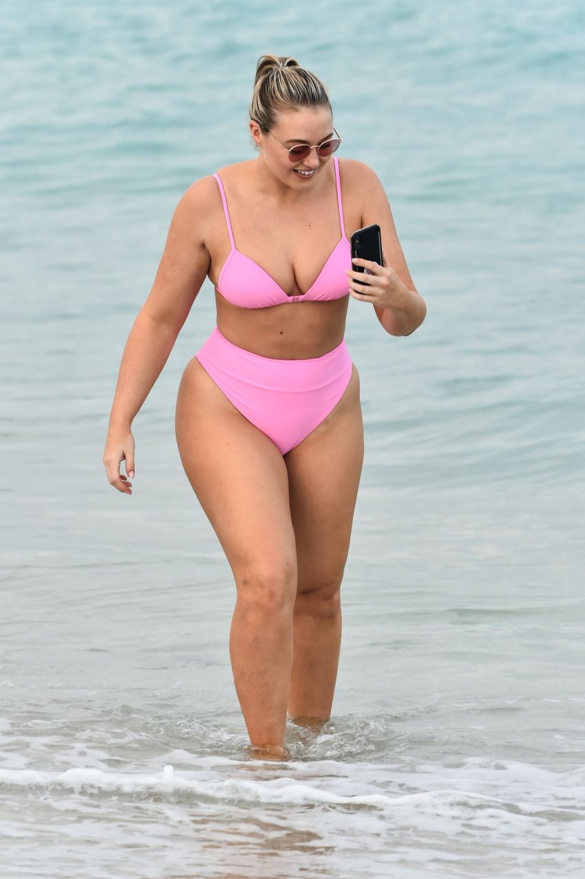 La modella Iskra Lawrence mostra le sue curve in spiaggia con un bikini rosa a Miami, 12/09/2018. Iskra è splendida mentre si gode la sua giornata in spiaggia.