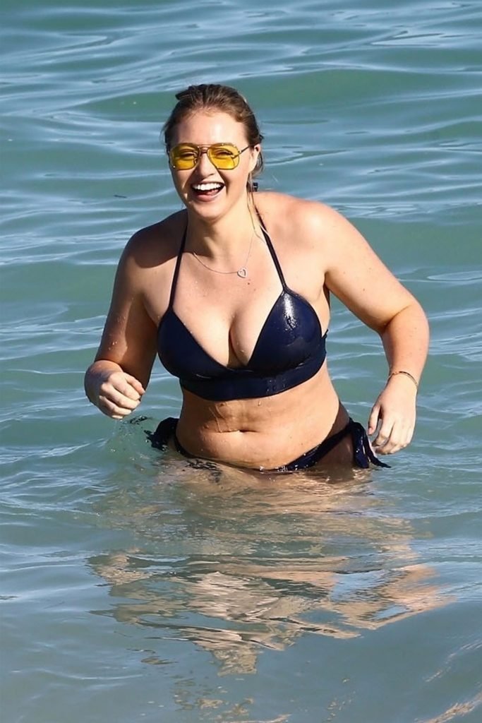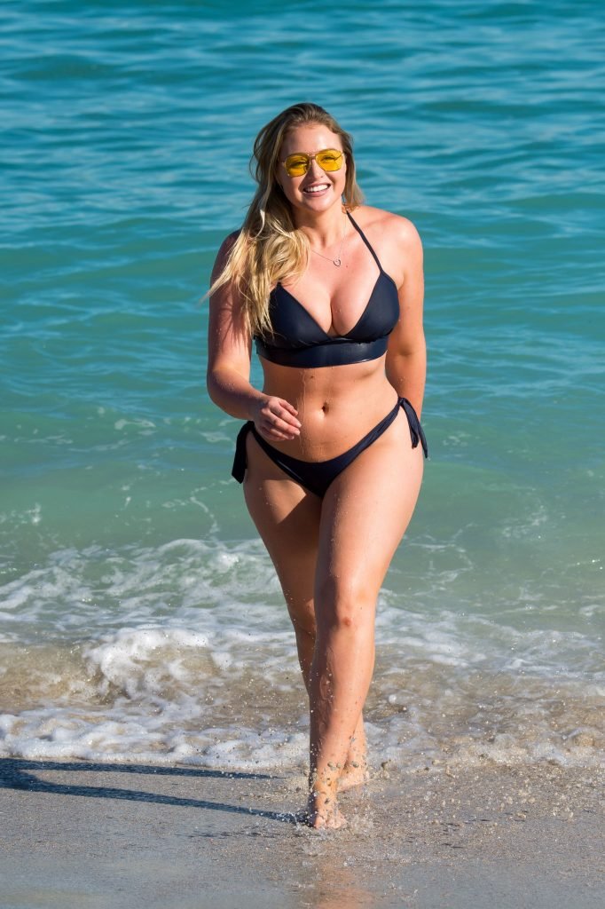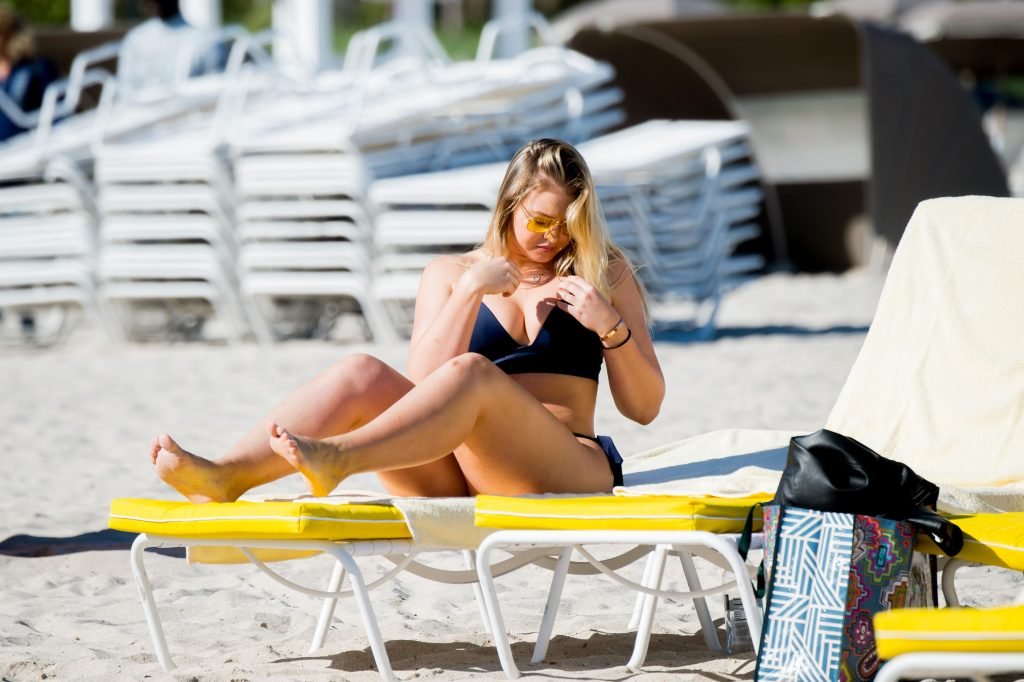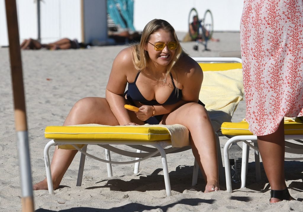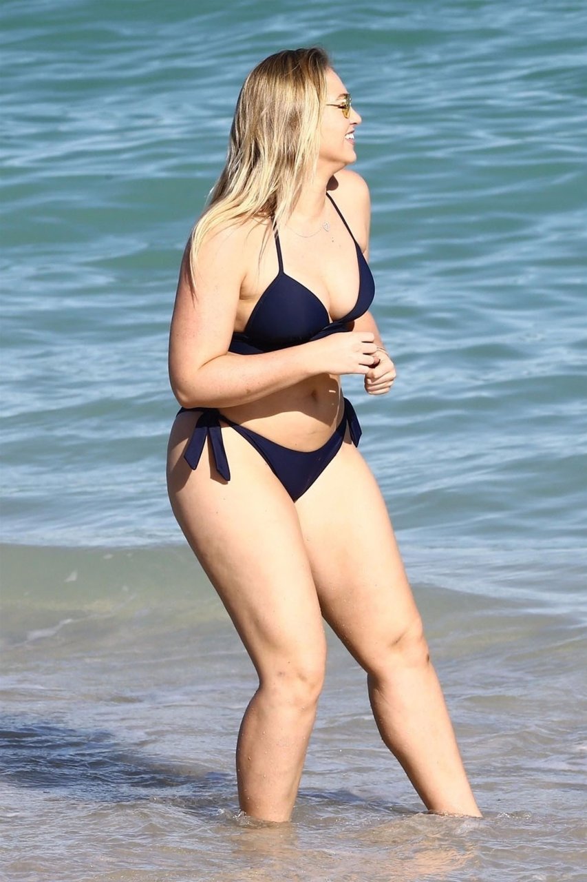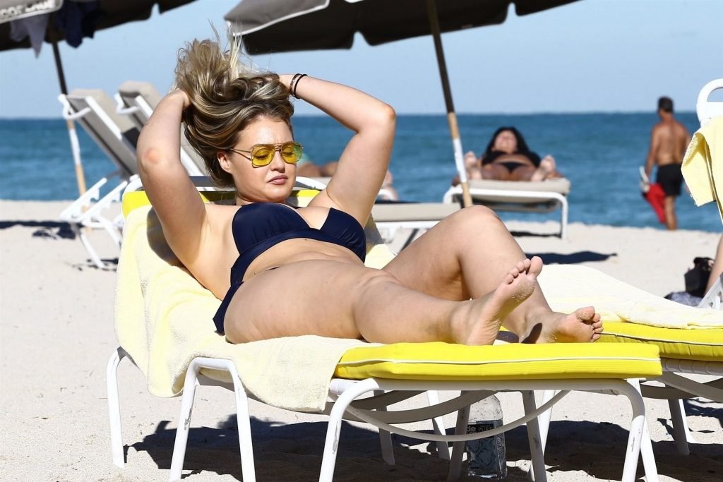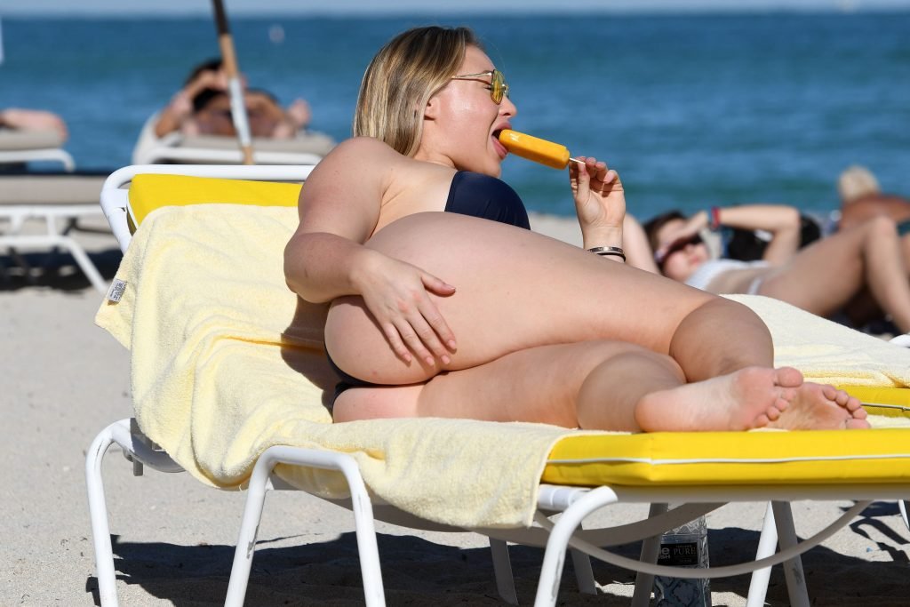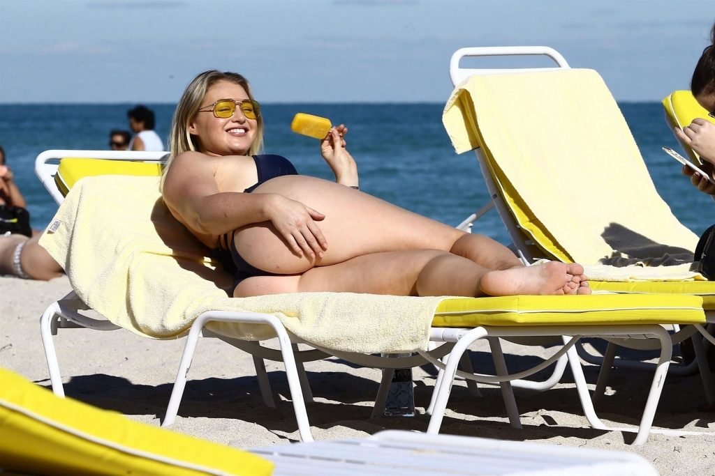 Iskra Lawrence e alcuni amici sono stati visti mentre si godevano una giornata in spiaggia a Miami, 11/12/2017. La modella formosa di 27 anni ha mostrato le sue curve in un bikini blu navy e ha gustato un gelato mentre si prendeva il sole.
