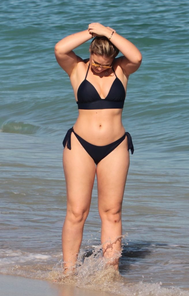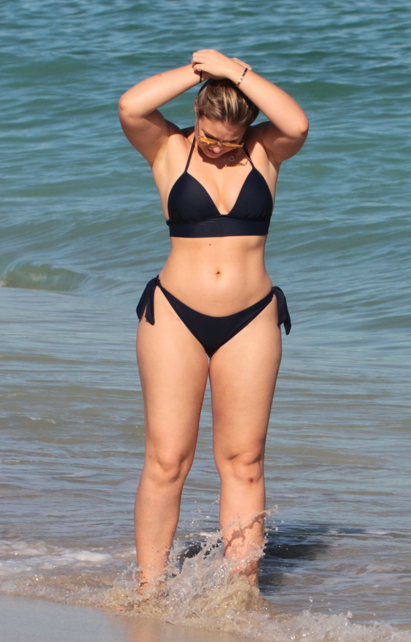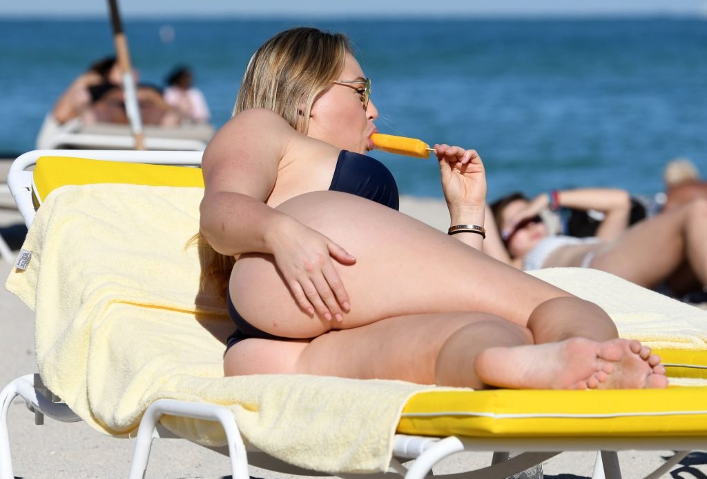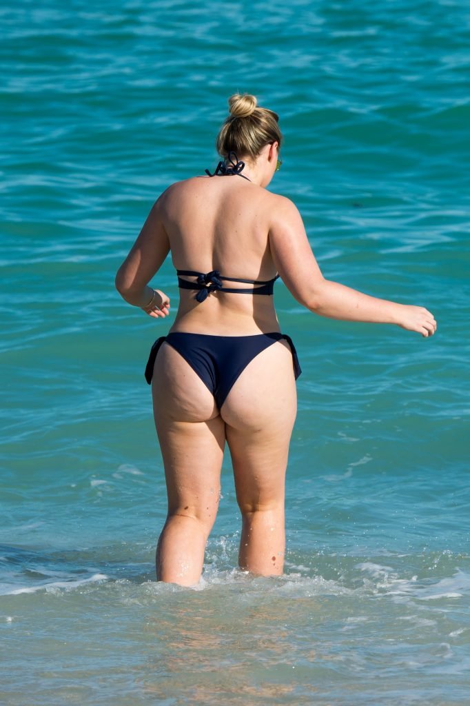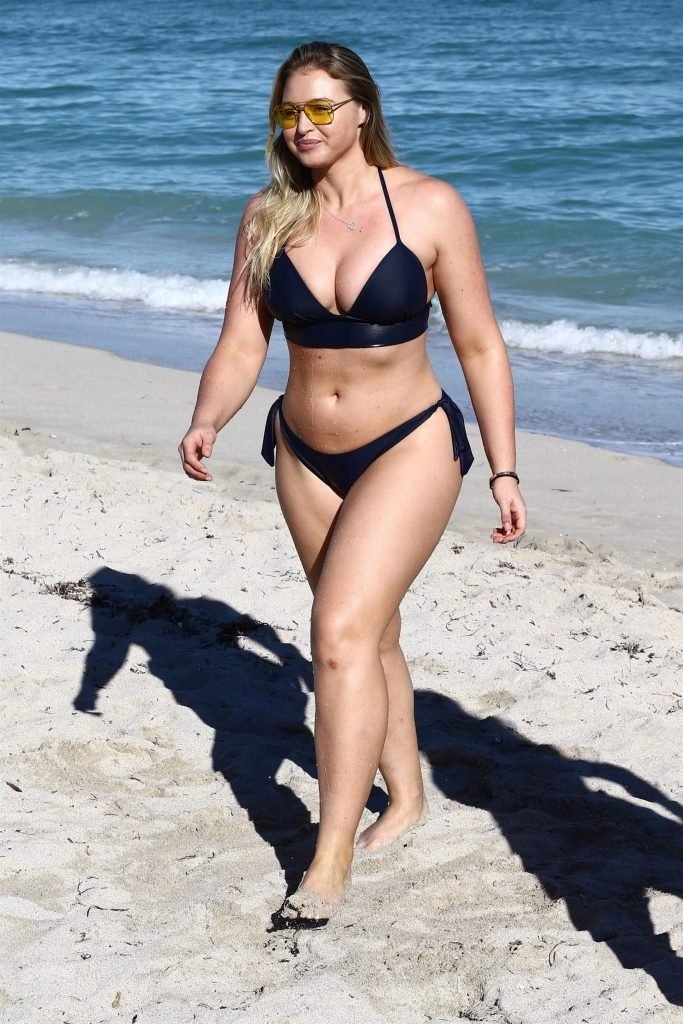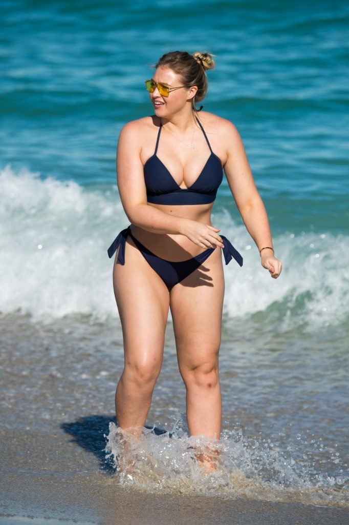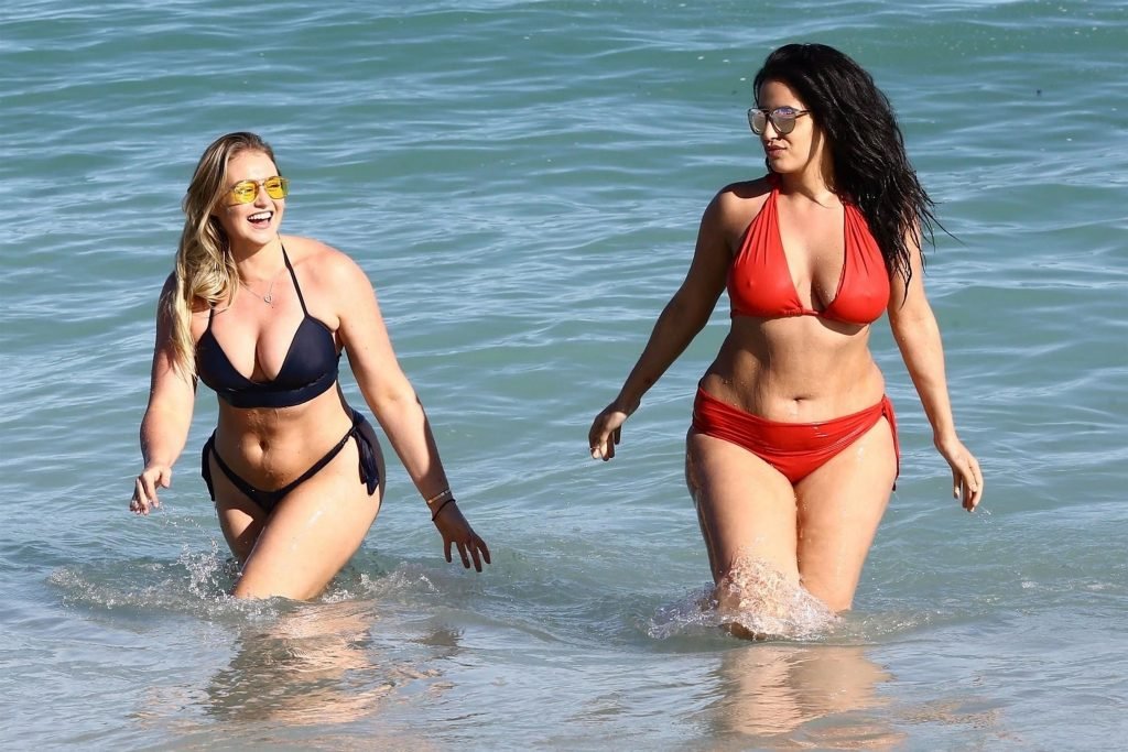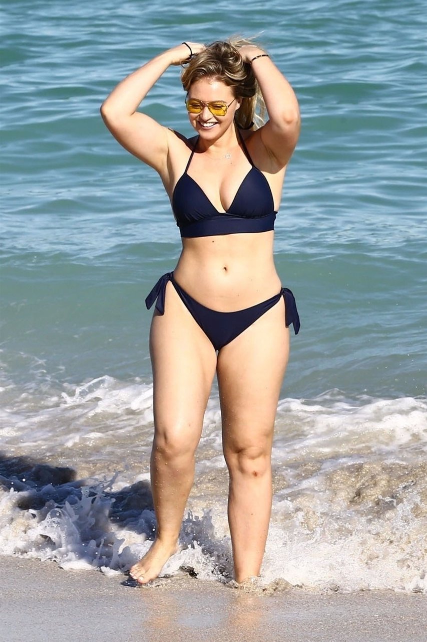 Iskra Lawrence e alcuni amici sono stati visti mentre si godevano una giornata in spiaggia a Miami, 11/12/2017. La modella formosa di 27 anni ha mostrato le sue curve in un bikini blu navy e ha gustato un gelato mentre si prendeva il sole.