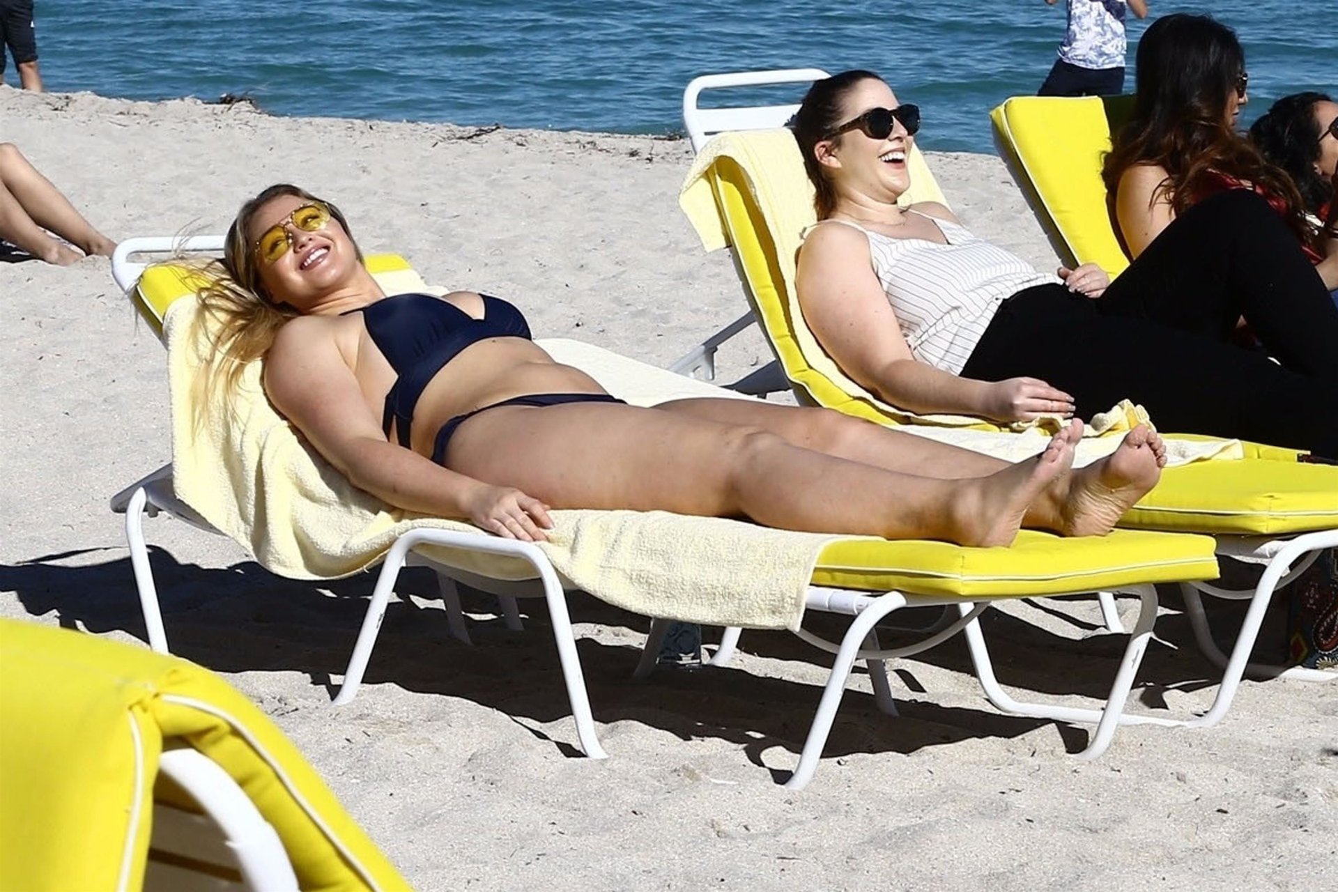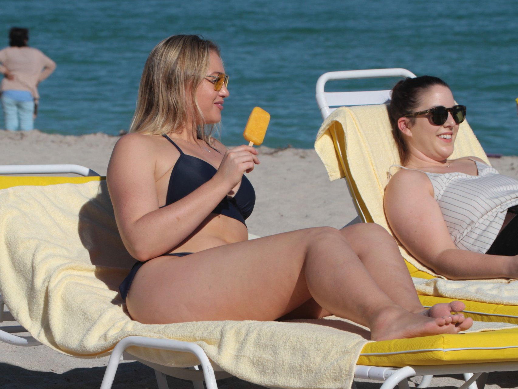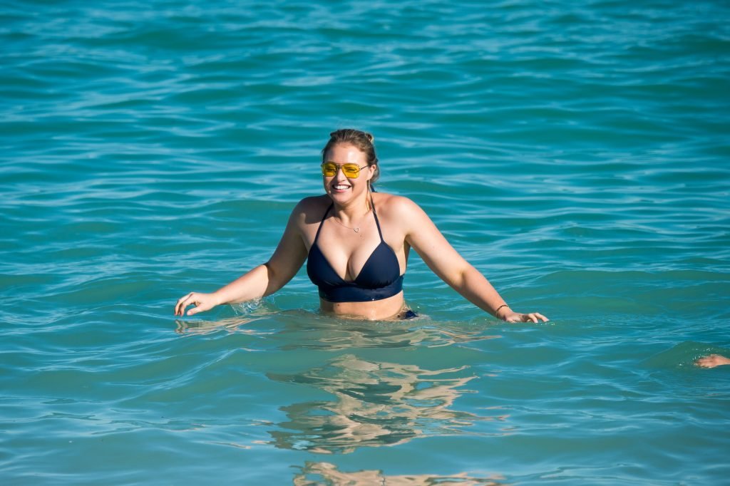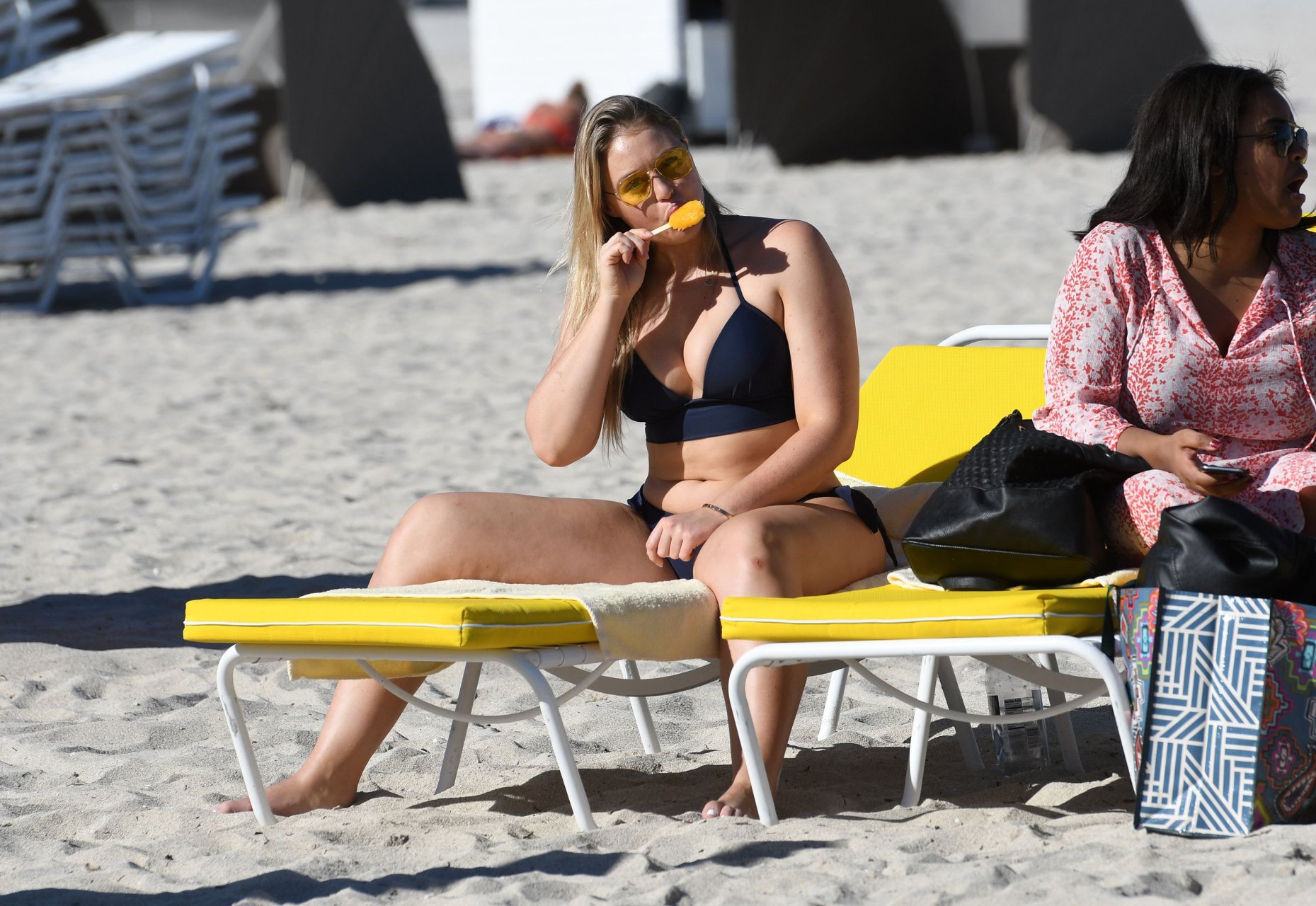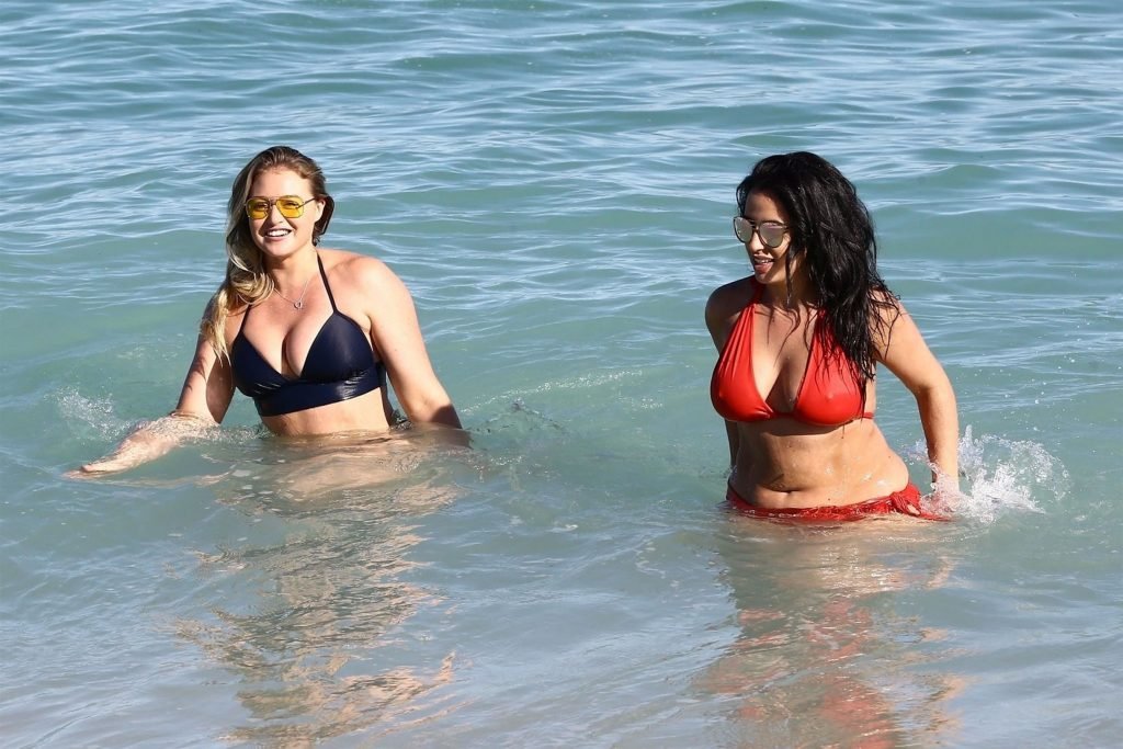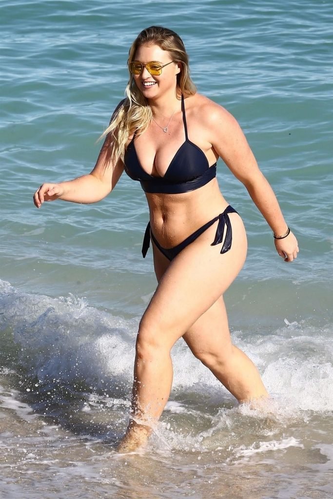 Iskra Lawrence e alcuni amici sono stati visti mentre si godevano una giornata in spiaggia a Miami, 11/12/2017. La modella formosa di 27 anni ha mostrato le sue curve in un bikini blu navy e ha gustato un gelato mentre si prendeva il sole.