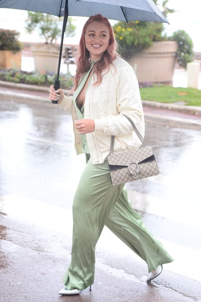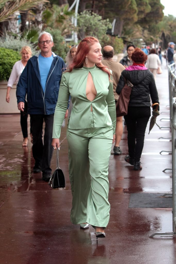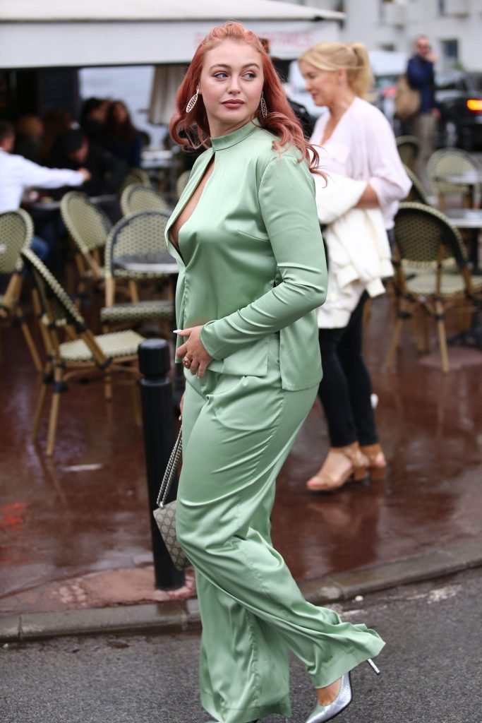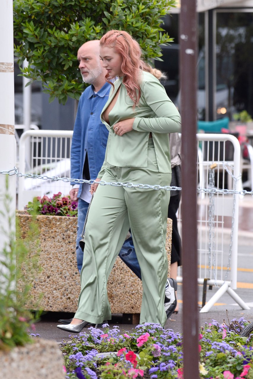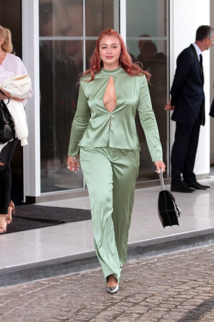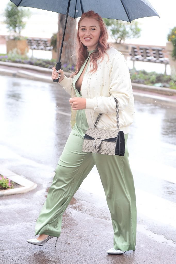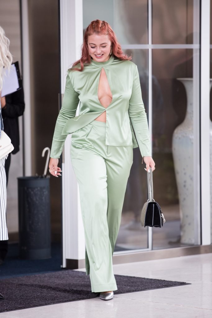 Iskra Lawrence è vista in un completo verde in una giornata piovosa alla Croisette di Cannes, Francia, 14/05/2018. L’attrice di 27 anni ha leggermente mostrato il seno grazie al taglio sulla giacca verde.