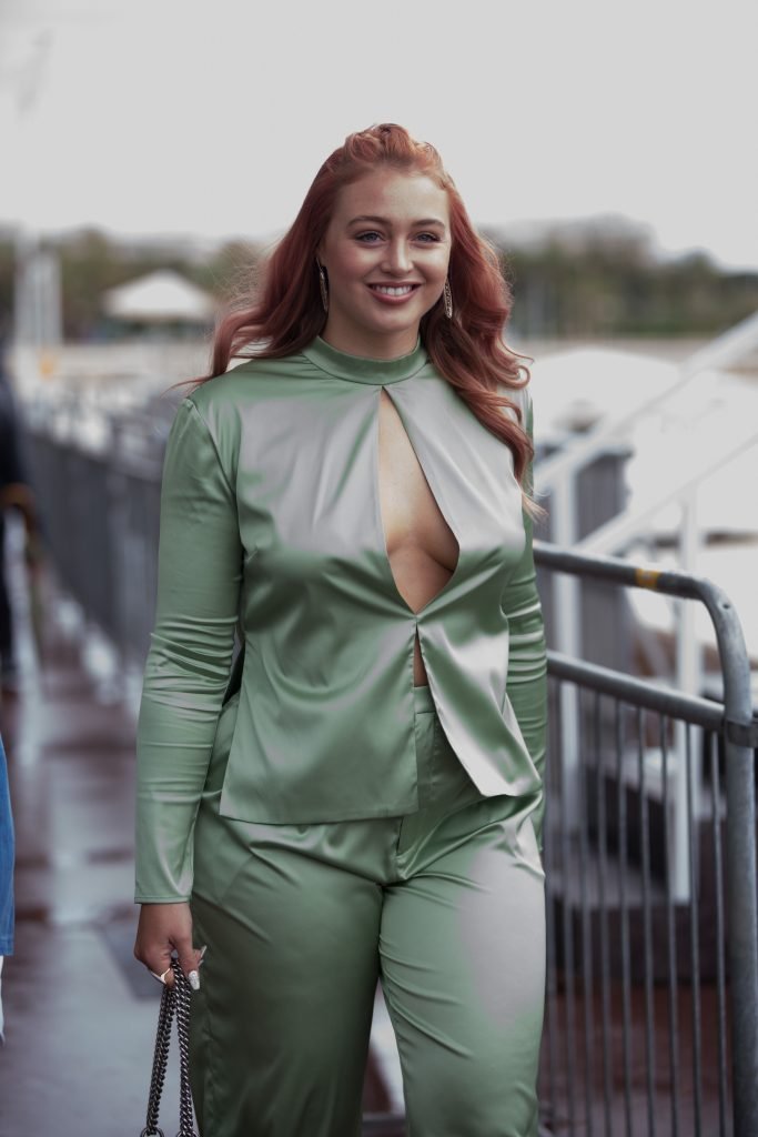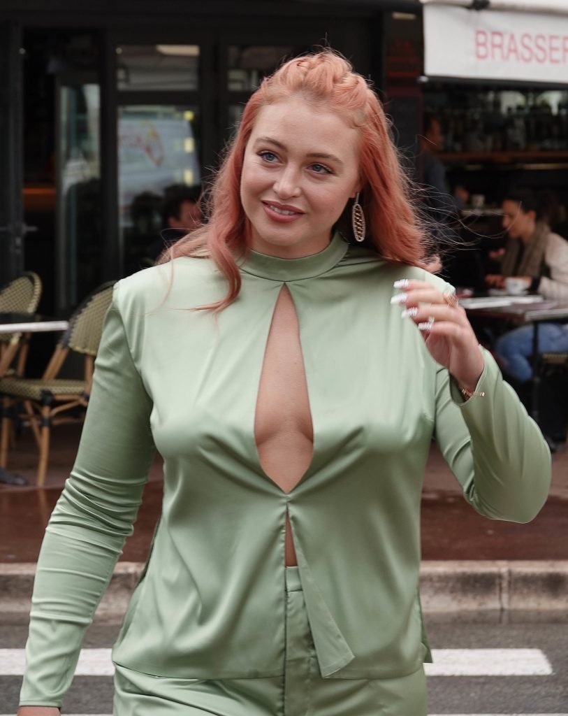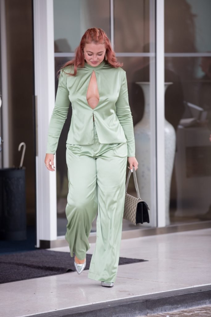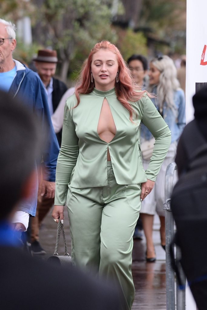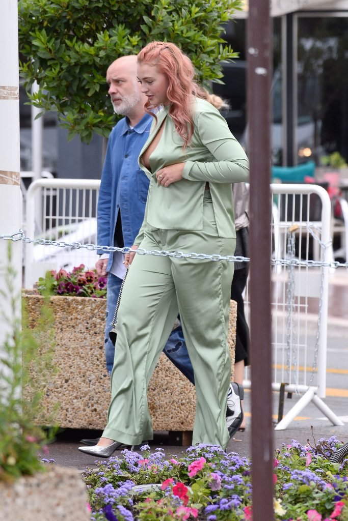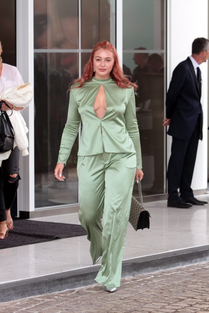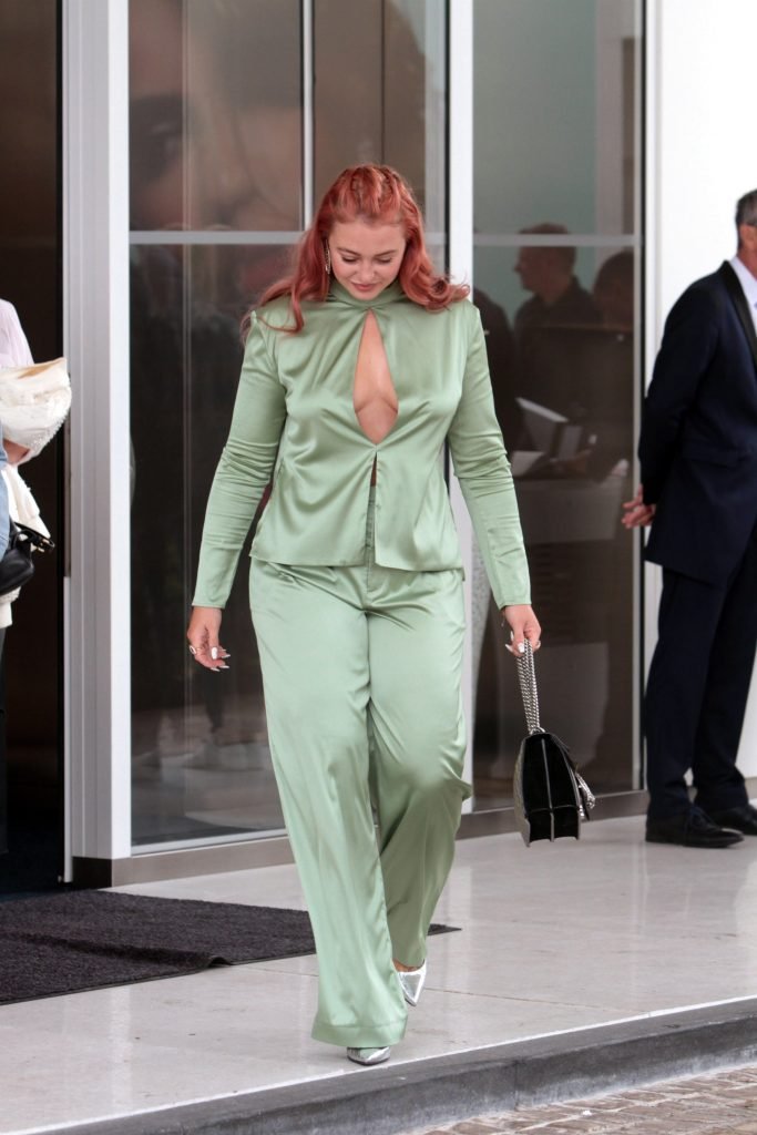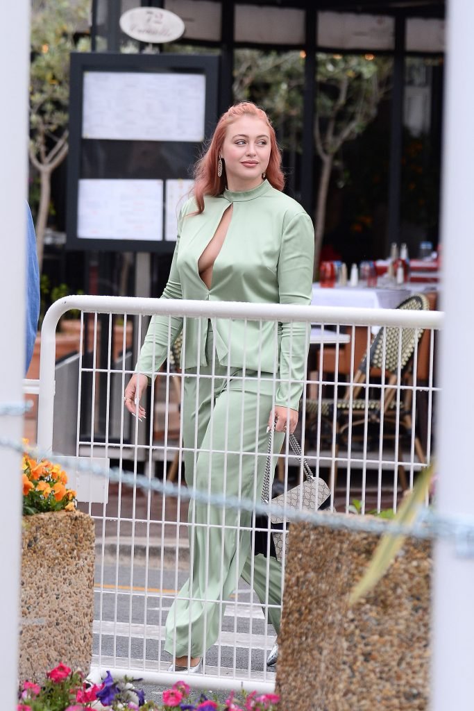 Iskra Lawrence è vista in un completo verde in una giornata piovosa alla Croisette di Cannes, Francia, 14/05/2018. L’attrice di 27 anni ha leggermente mostrato il seno grazie al taglio sulla giacca verde.