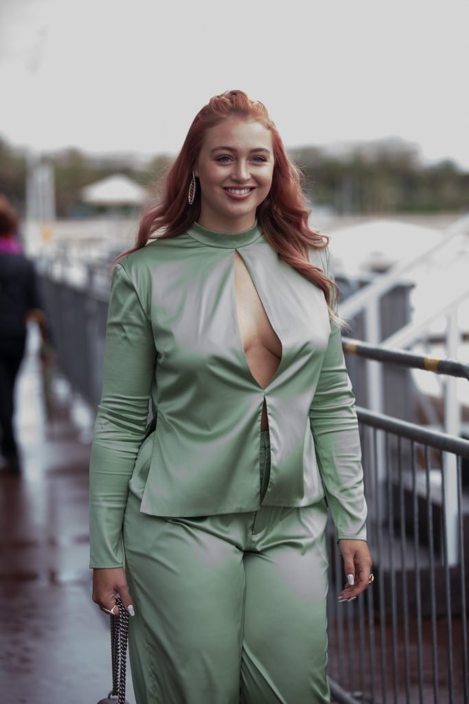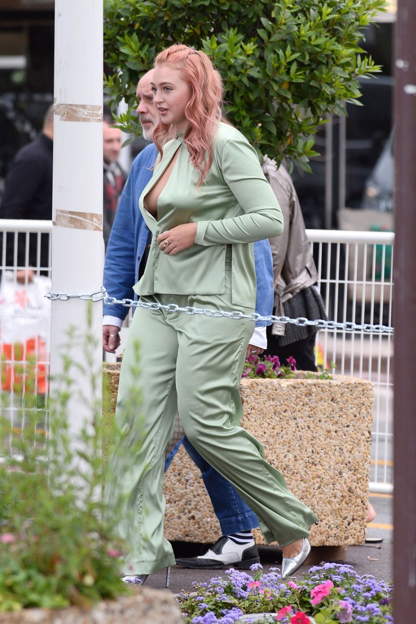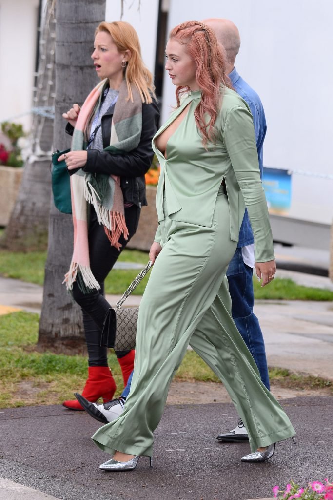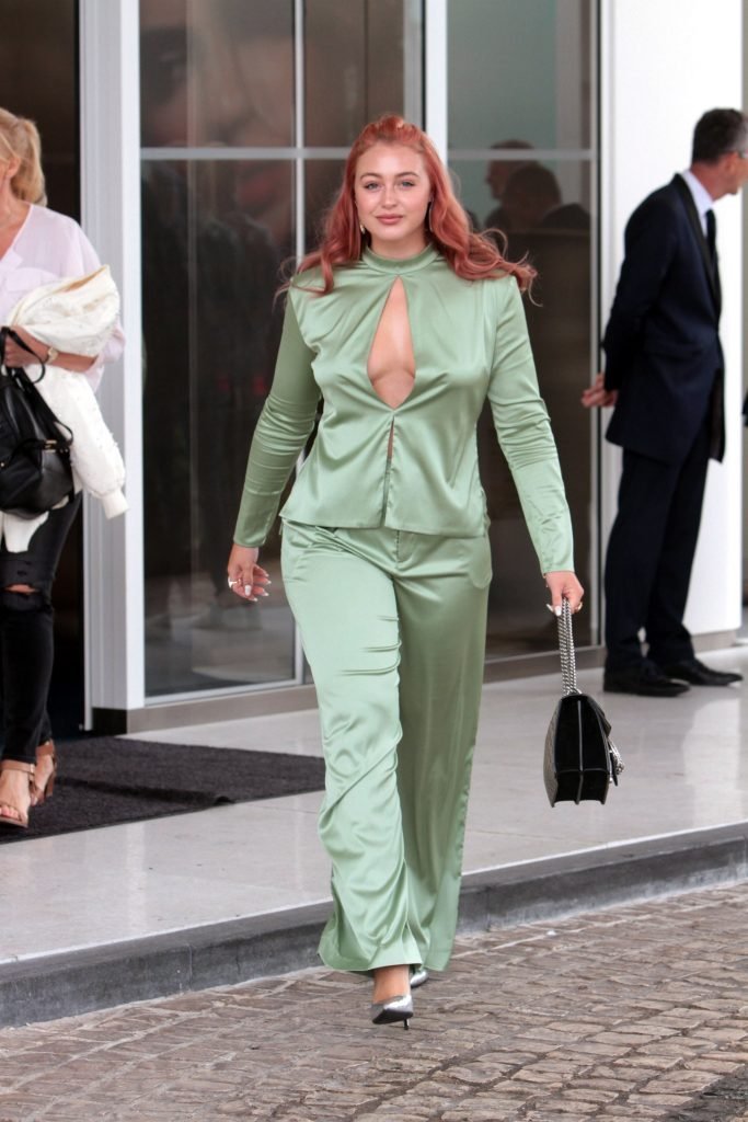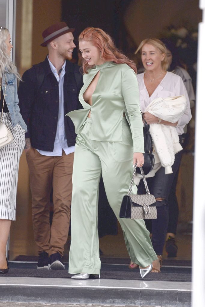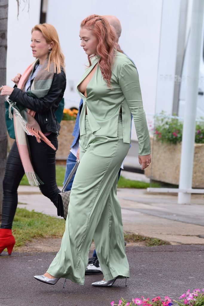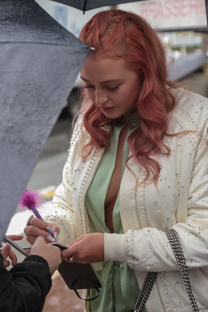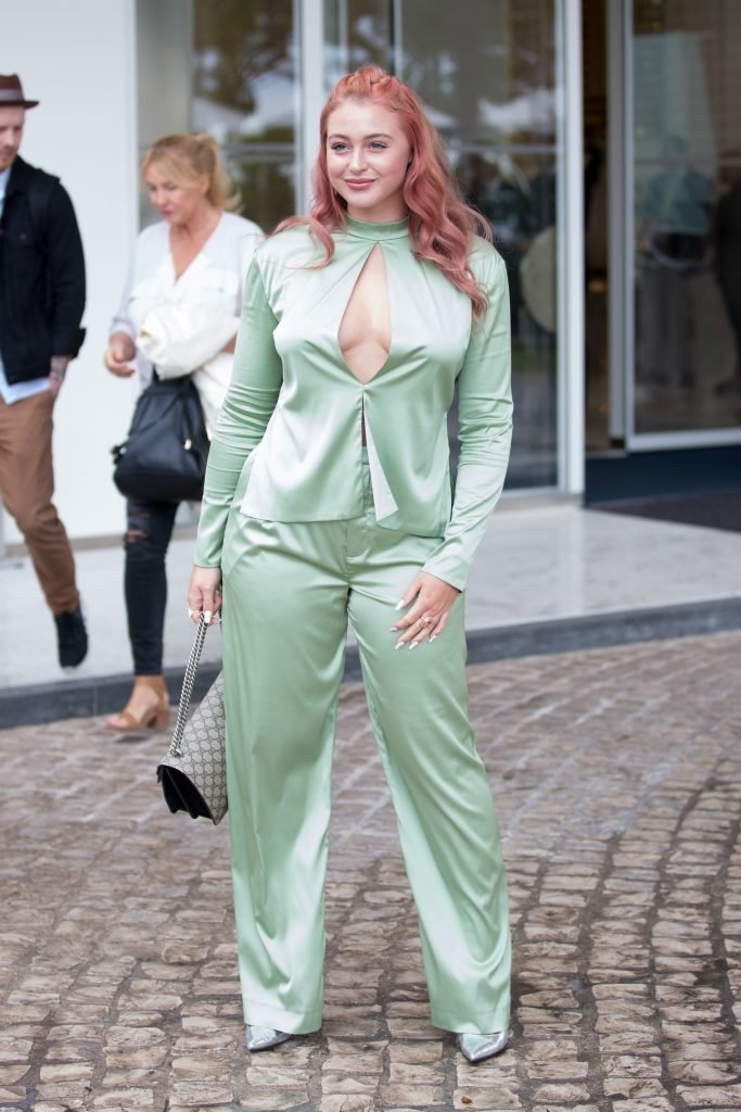 Iskra Lawrence è vista in un completo verde in una giornata piovosa alla Croisette di Cannes, Francia, 14/05/2018. L’attrice di 27 anni ha leggermente mostrato il seno grazie al taglio sulla giacca verde.