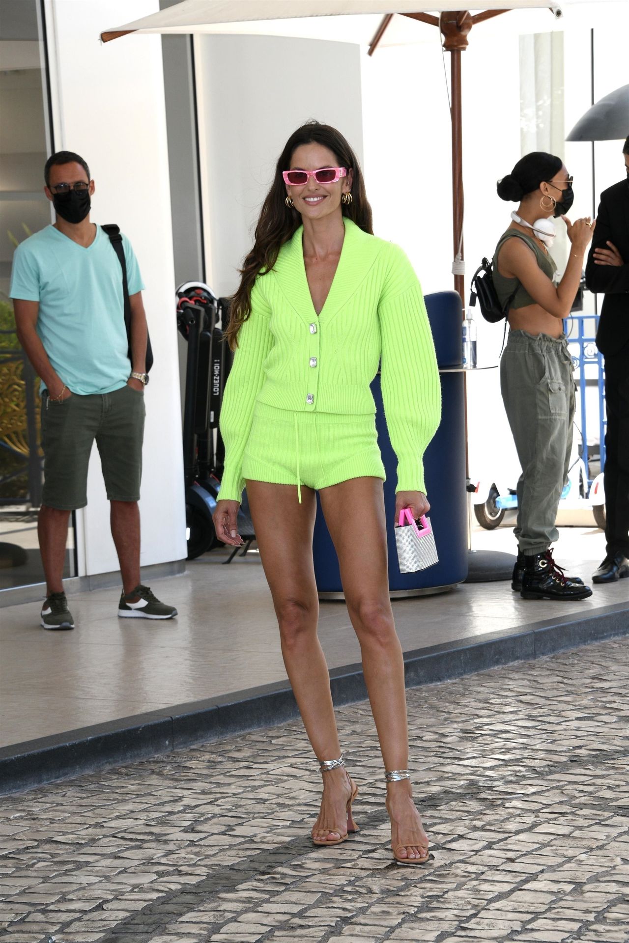 Modella Izabel Goulart sorride per le telecamere fuori dall’Hotel Martinez al 74° Festival di Cannes, 07/08/2021.