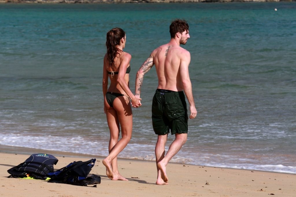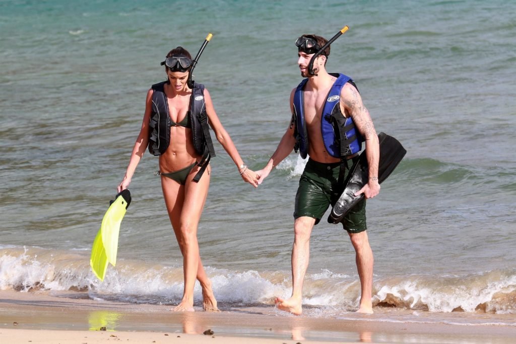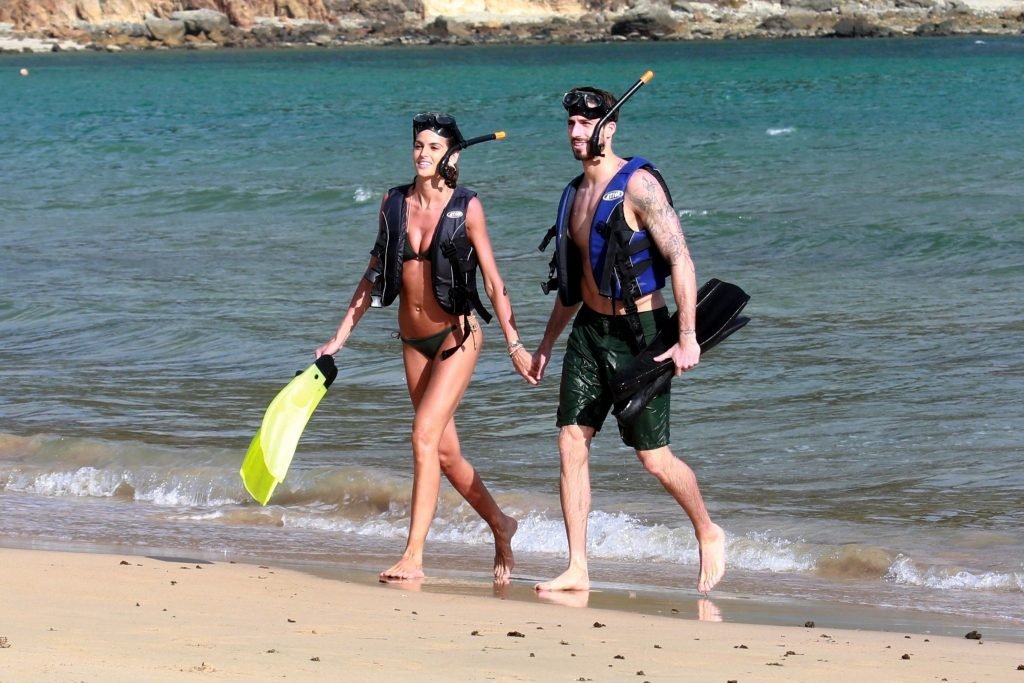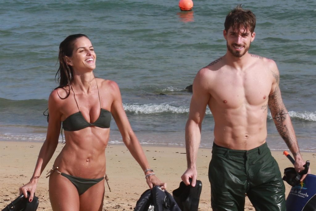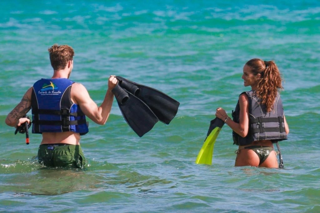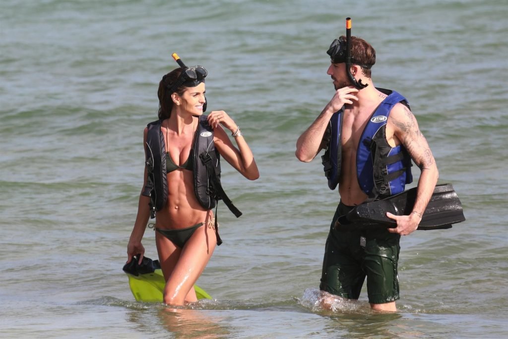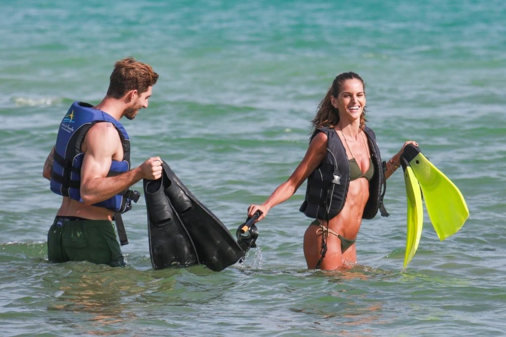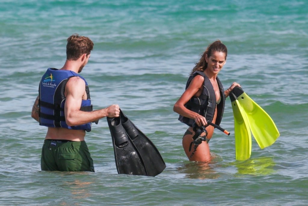 Izabel Goulart e il suo fidanzato Kevin Trapp si godono una giornata in spiaggia in Brasile, 26/12/2017. La modella brasiliana di 33 anni ha mostrato il suo ventre tonico e il sedere mentre la coppia indossava i giubbotti di salvataggio per andare a fare immersioni.