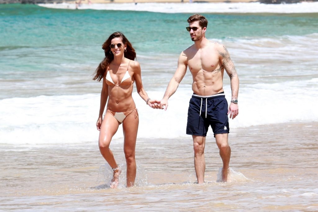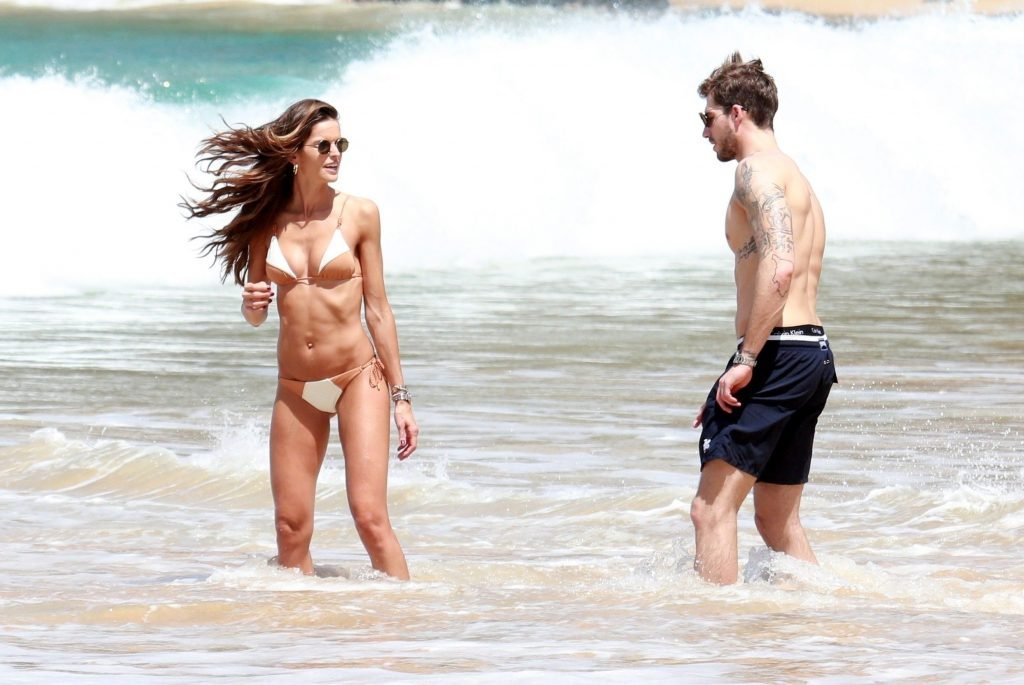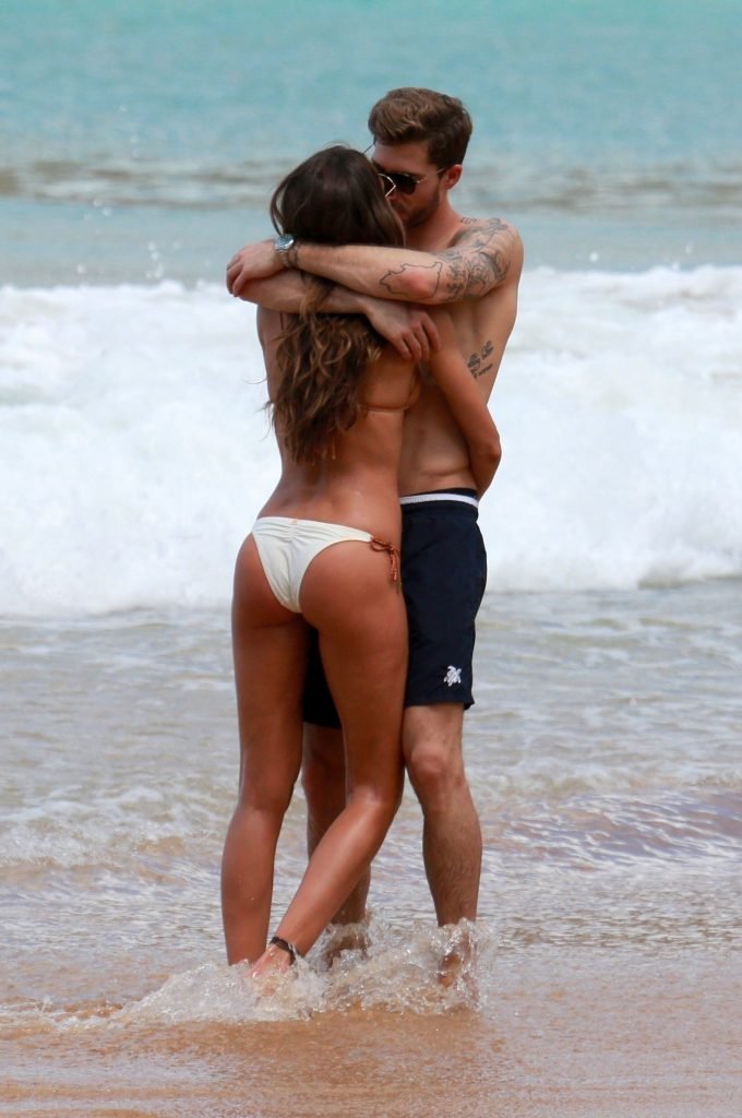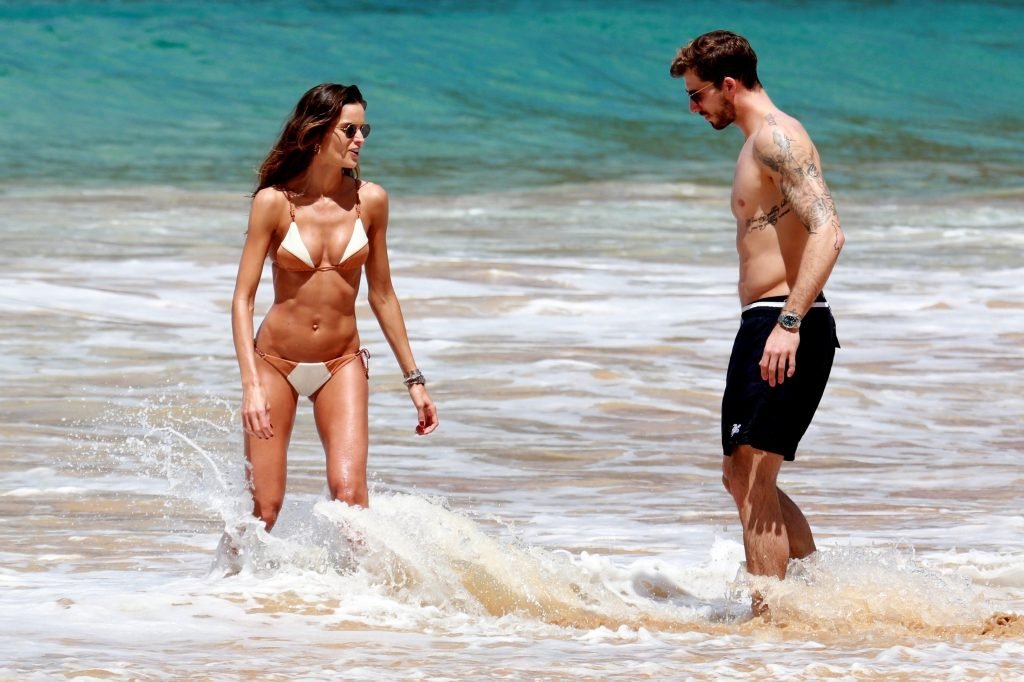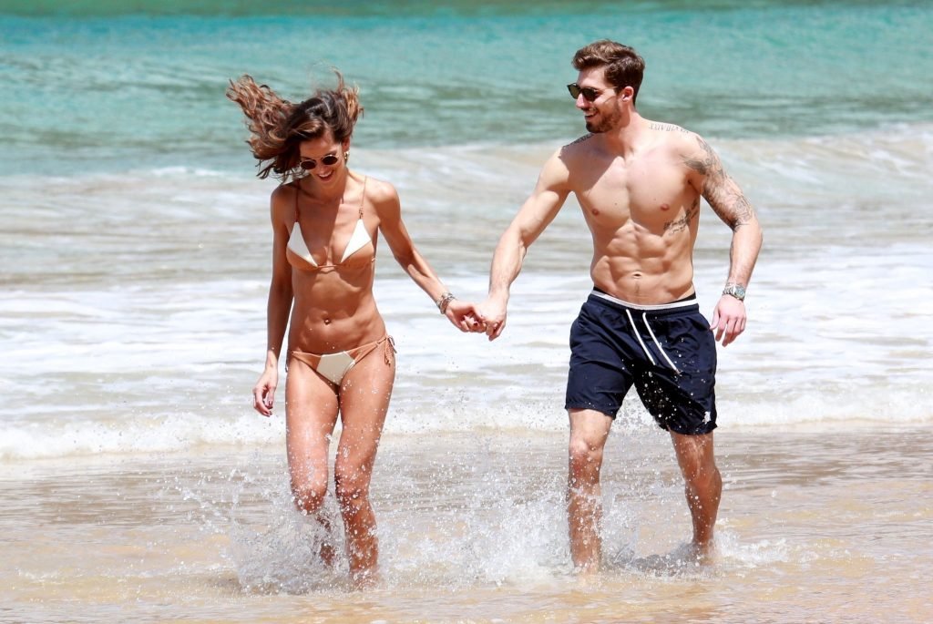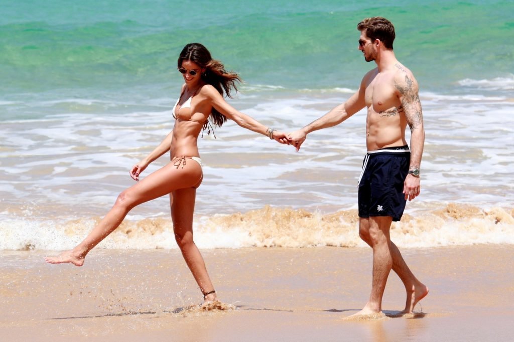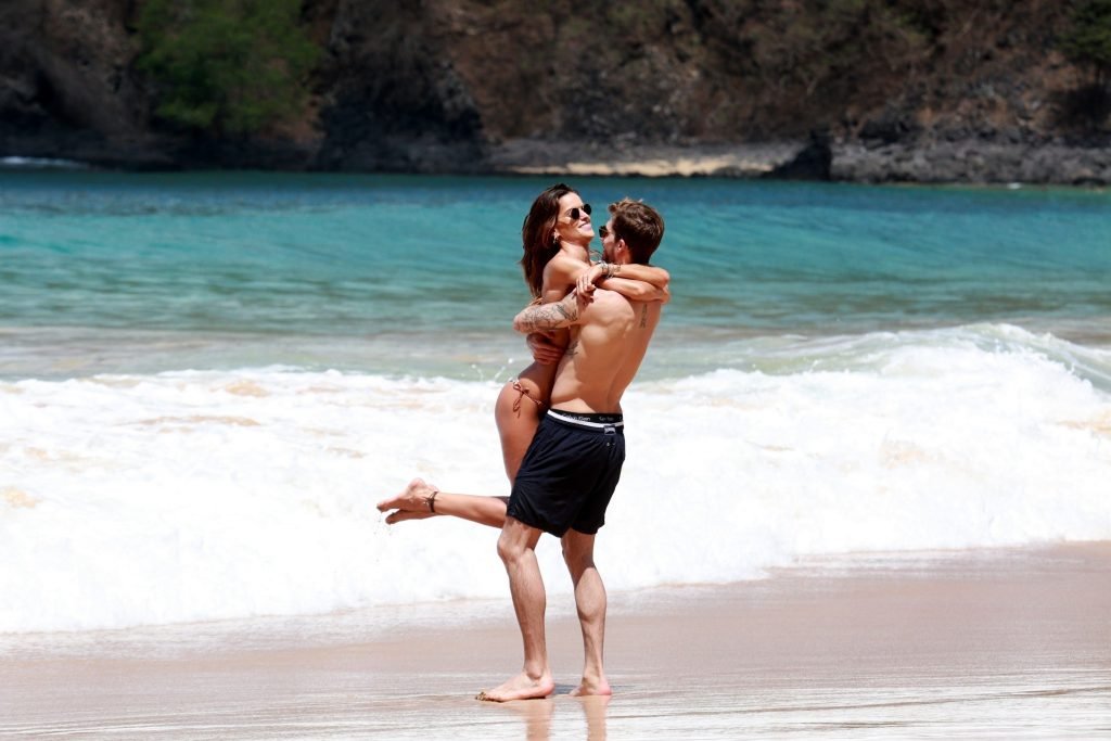 Modella Izabel Goulart (33) e il suo fidanzato Kevin Trapp si godono un bacio sulla spiaggia il giorno di Natale a Recife, Brasile, 25/12/2017.