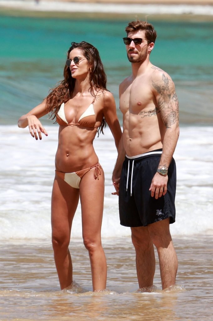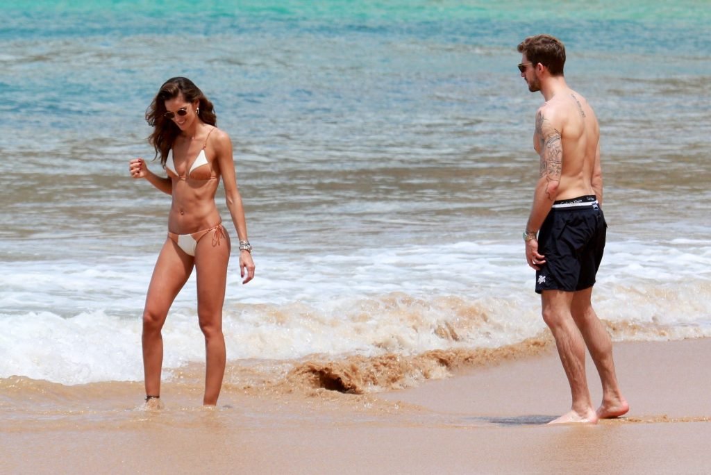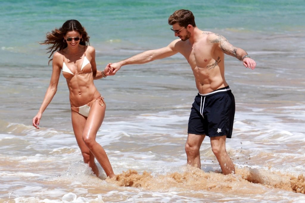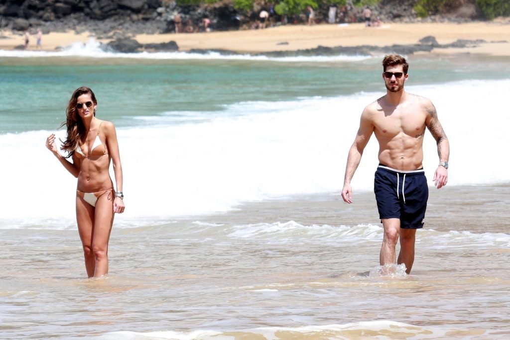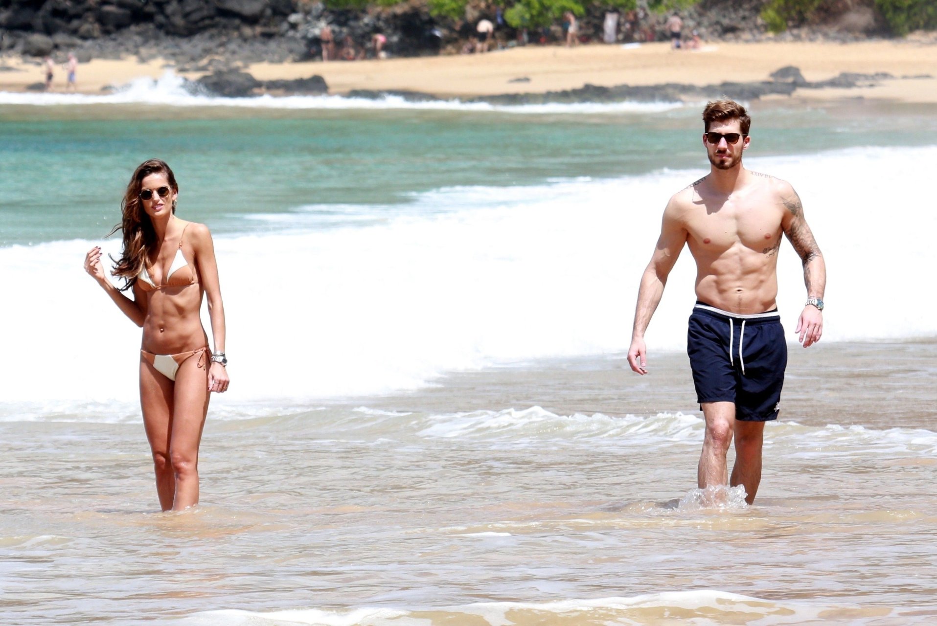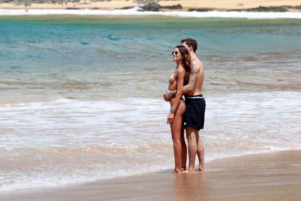 Modella Izabel Goulart (33) e il suo fidanzato Kevin Trapp si godono un bacio sulla spiaggia il giorno di Natale a Recife, Brasile, 25/12/2017.