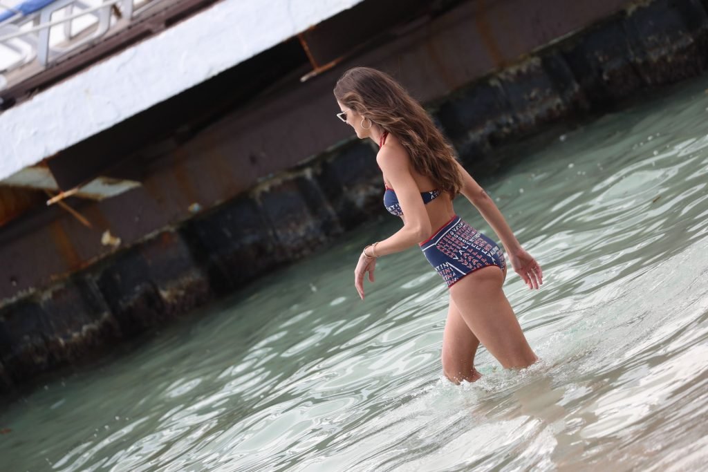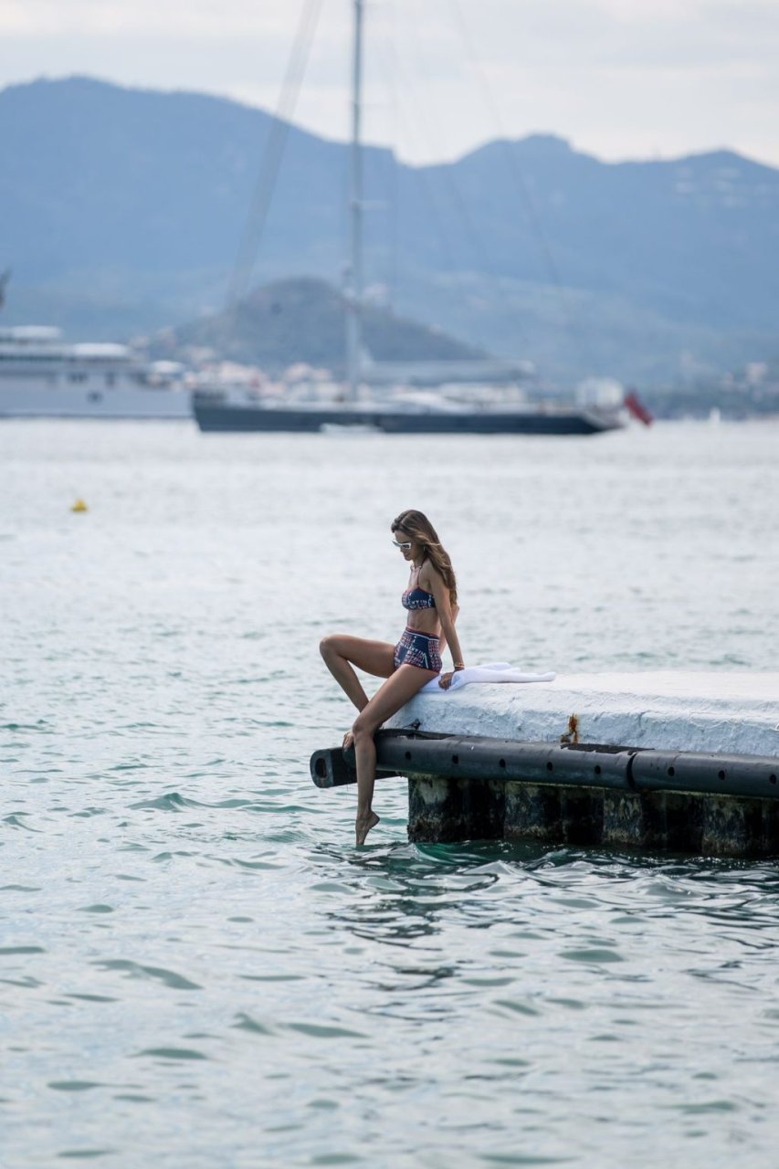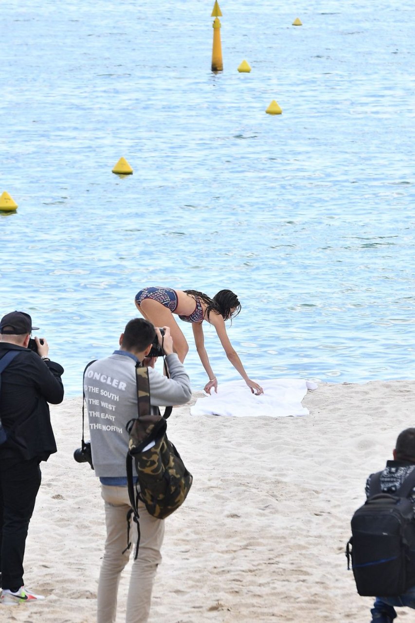 La modella brasiliana Izabel Goulart (34) è stata vista sulla spiaggia nell’Oceano alla Martinez Beach con un bikini blu Valentino a Cannes, Francia, 15/05/2019. La splendida donna ha mostrato la sua figura snella a una dozzina di fotografi.