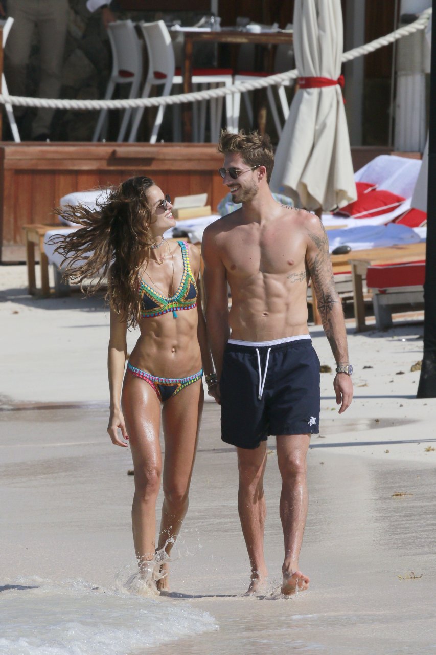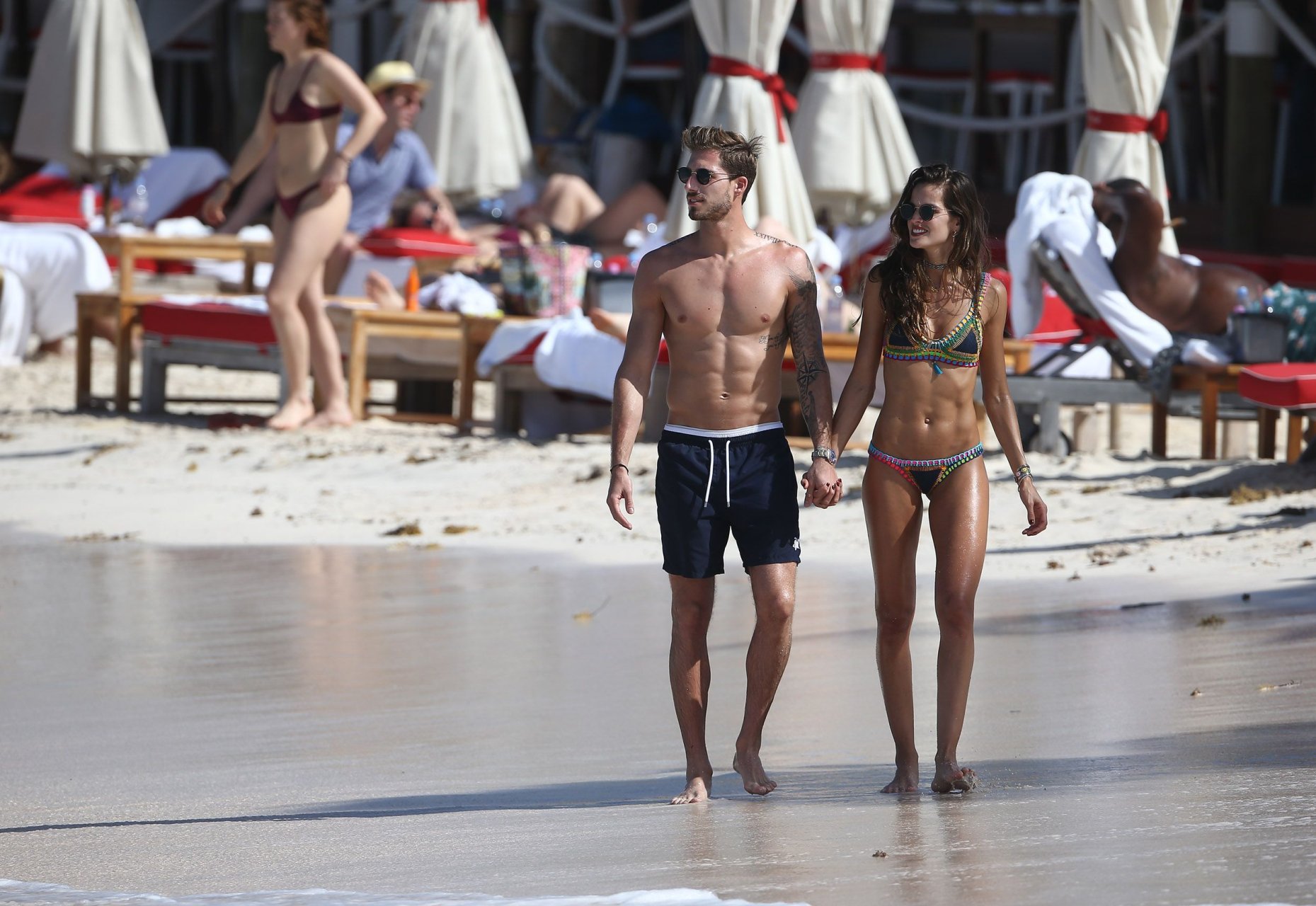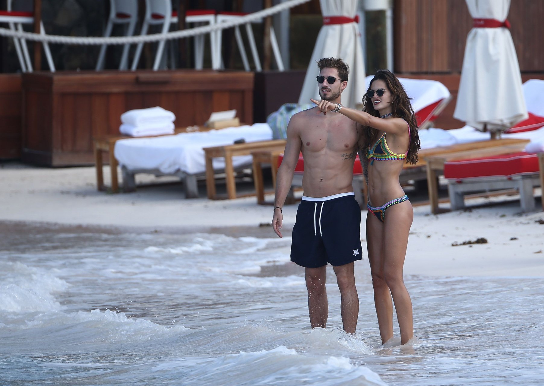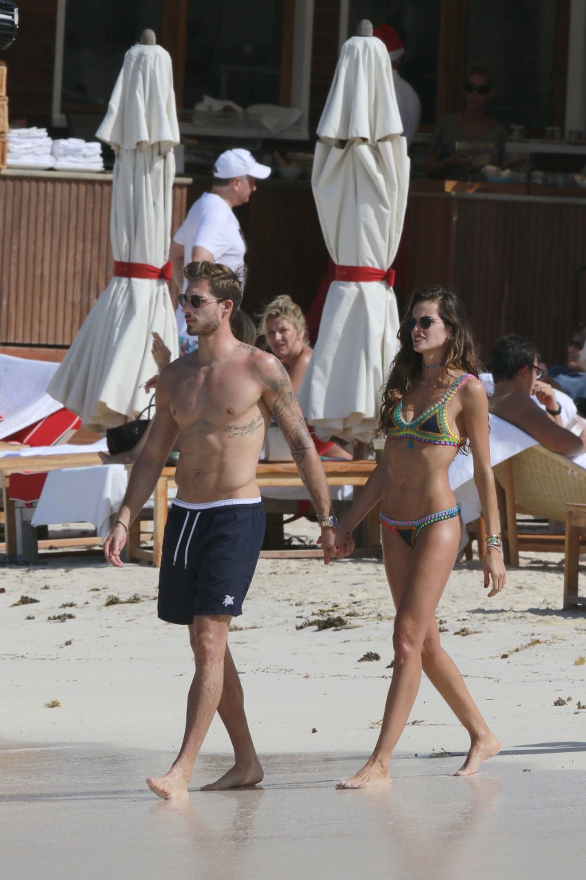 Izabel Goulart sfoggia il suo corpo snello in un bikini a perizoma con il fidanzato sulla spiaggia a St. Barts, 25/12/2016. Izabel Goulart è una modella brasiliana. Età: 32 (23 ottobre 1984). Altezza: 177 cm.