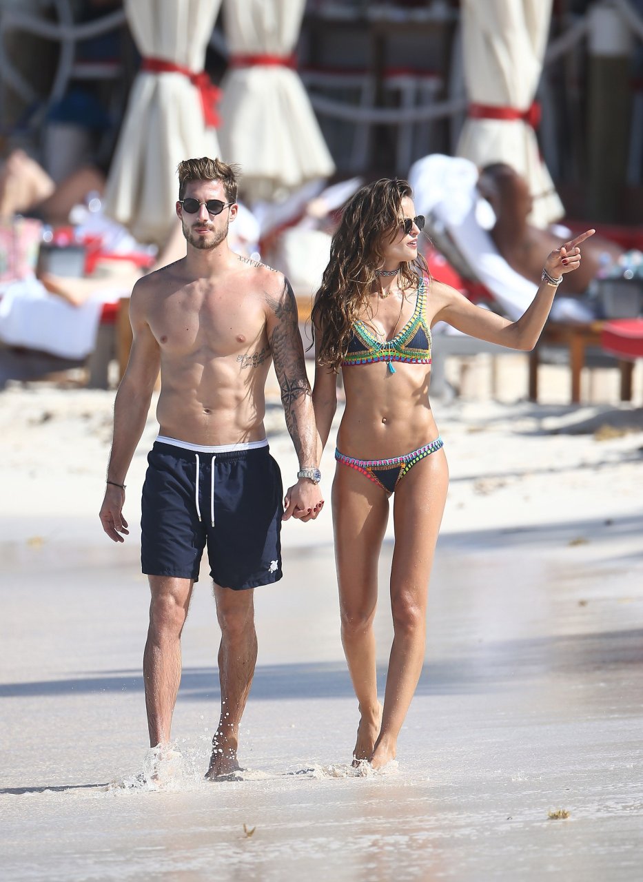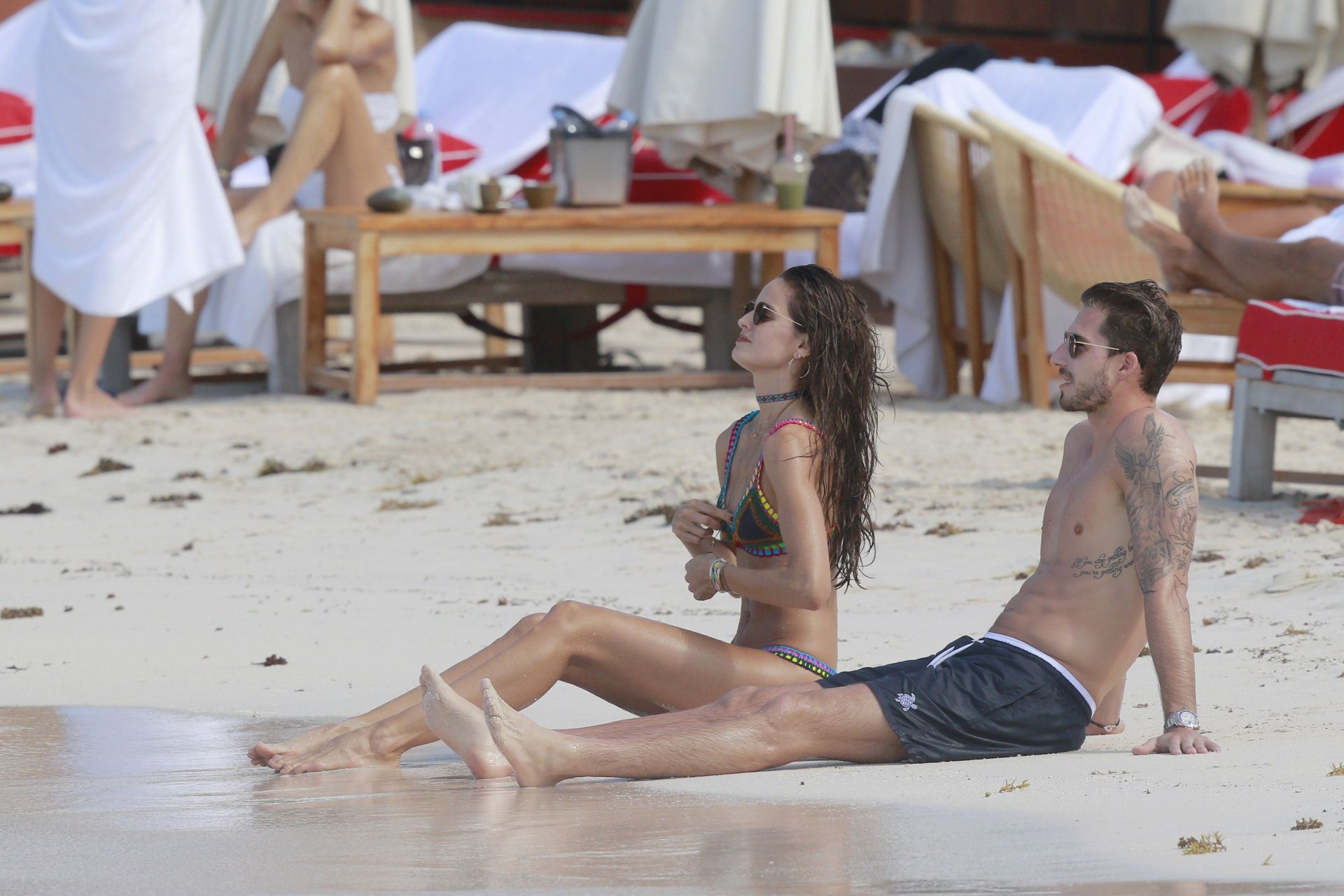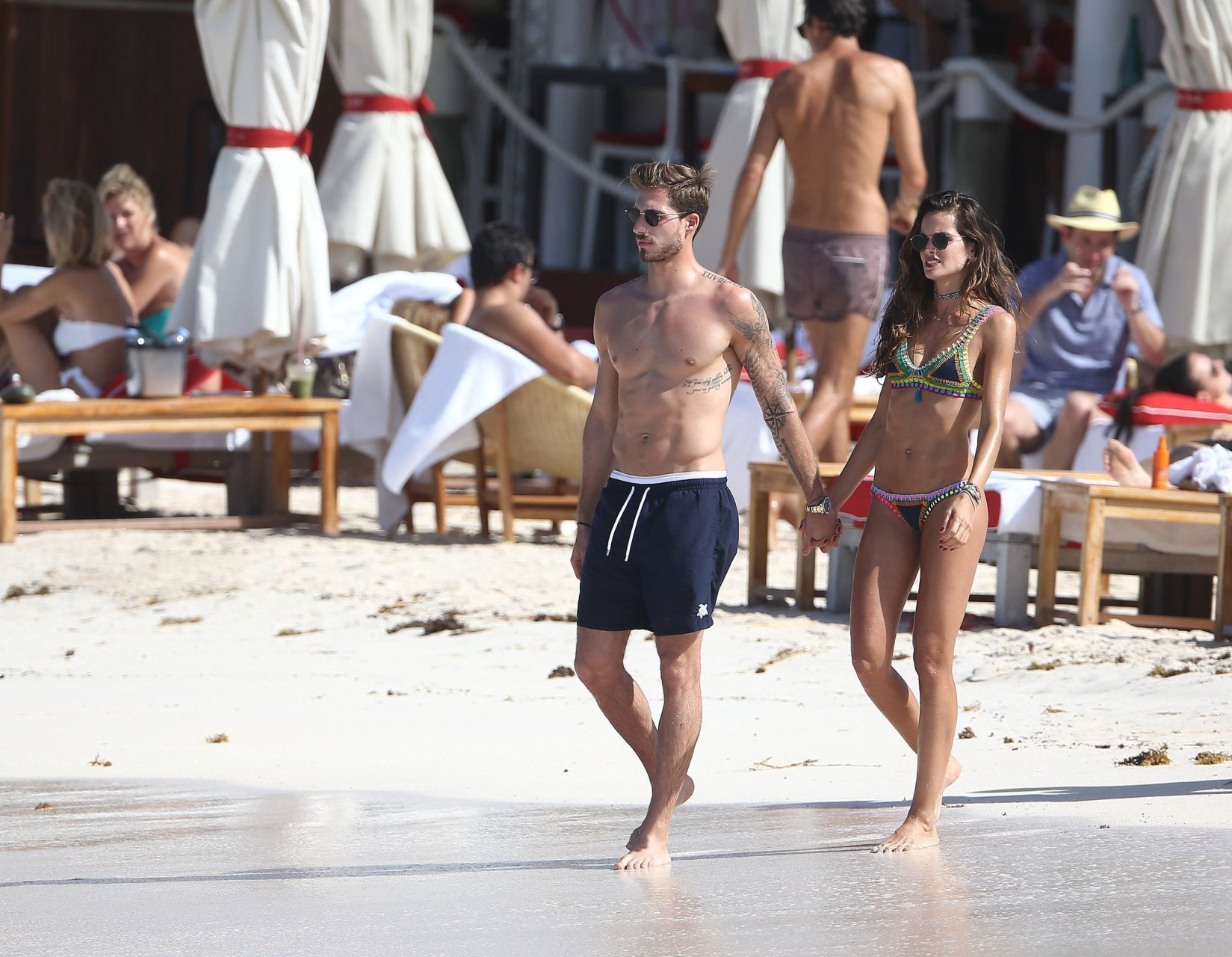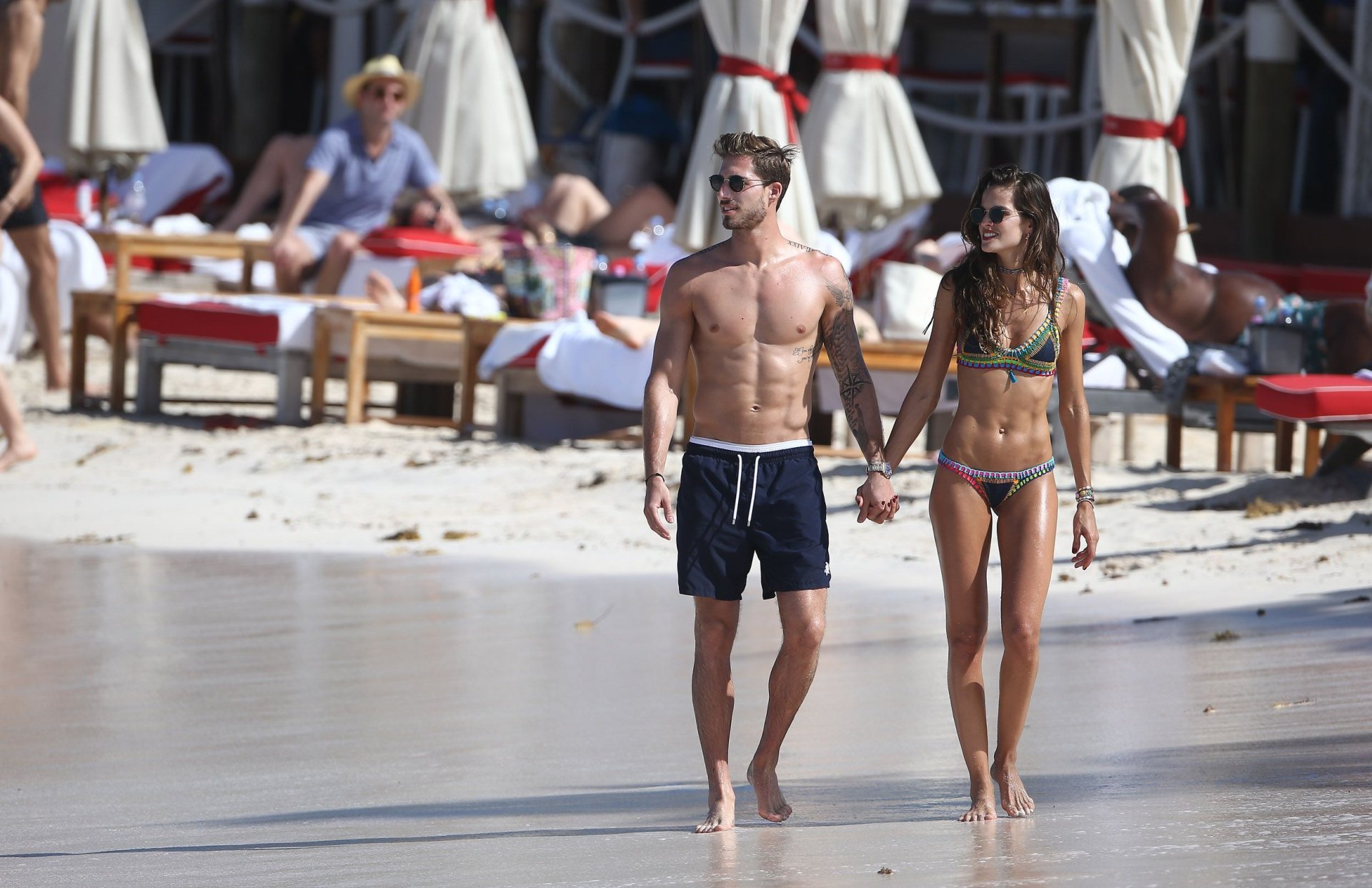Izabel Goulart sfoggia il suo corpo snello in un bikini a perizoma con il fidanzato sulla spiaggia a St. Barts, 25/12/2016. Izabel Goulart è una modella brasiliana. Età: 32 (23 ottobre 1984). Altezza: 177 cm.