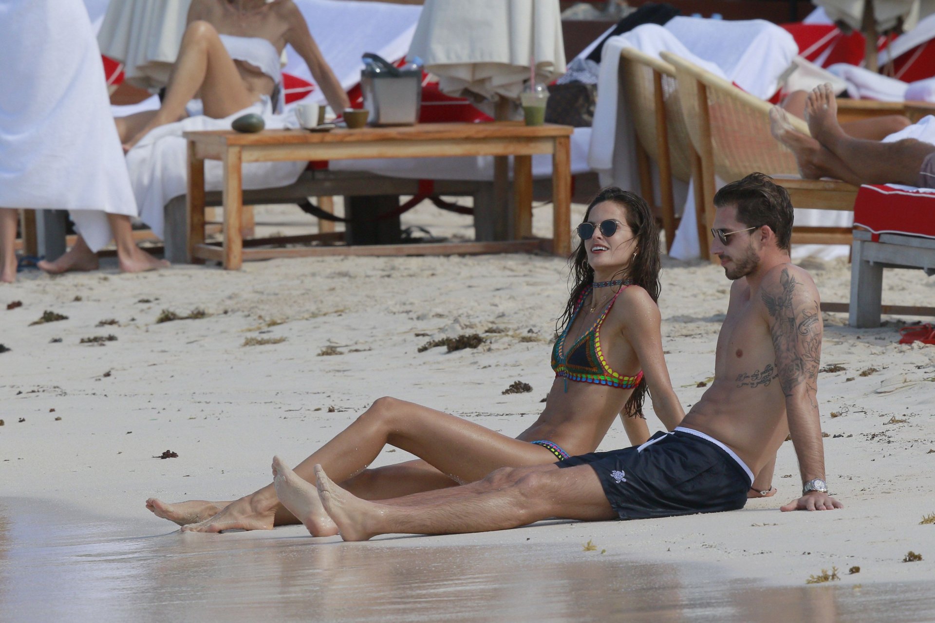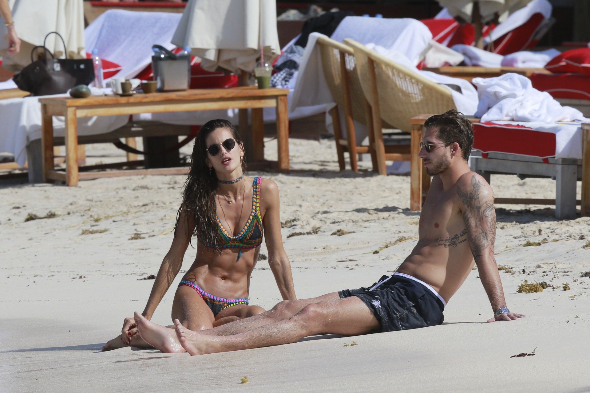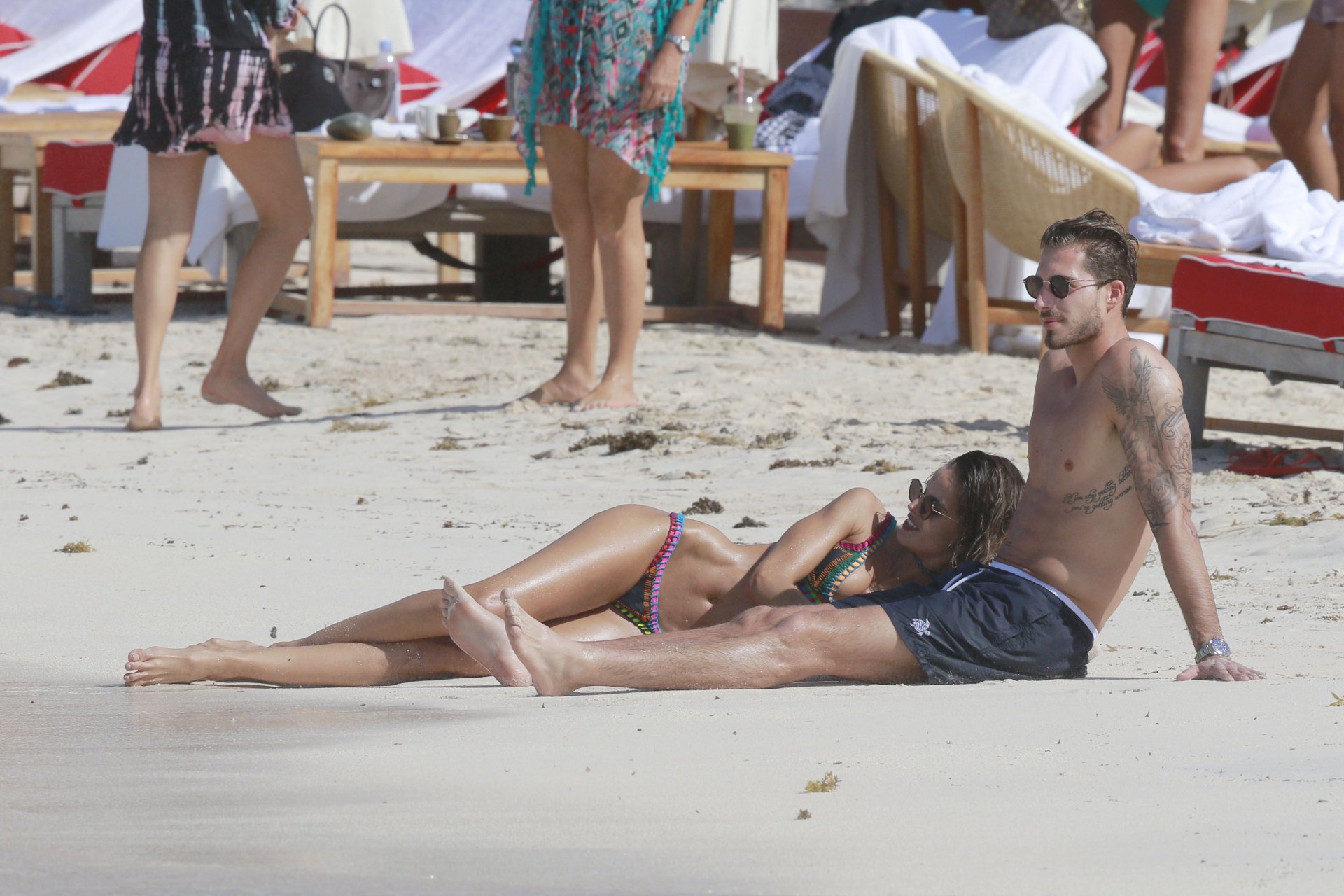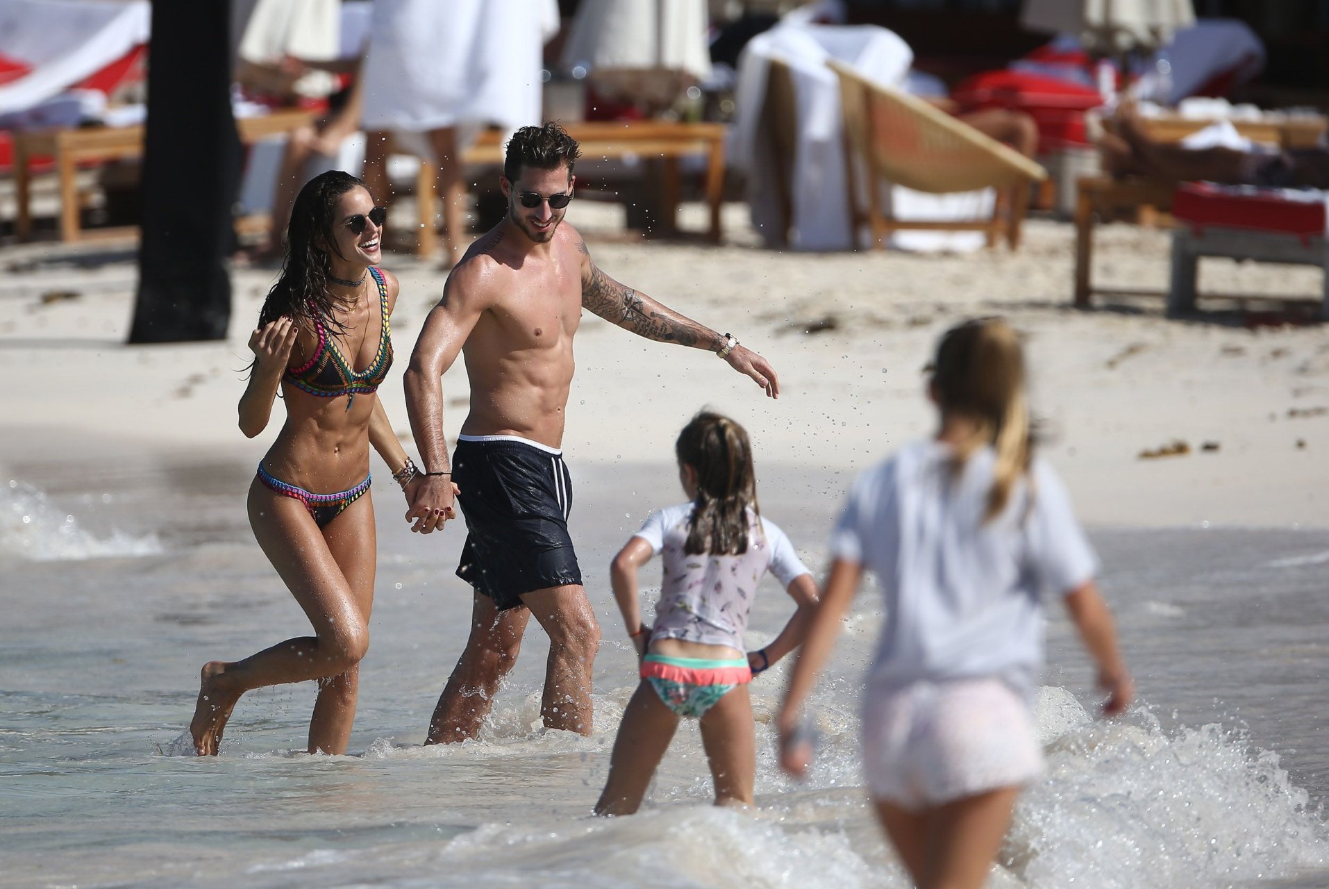 Izabel Goulart sfoggia il suo corpo snello in un bikini a perizoma con il fidanzato sulla spiaggia a St. Barts, 25/12/2016. Izabel Goulart è una modella brasiliana. Età: 32 (23 ottobre 1984). Altezza: 177 cm.