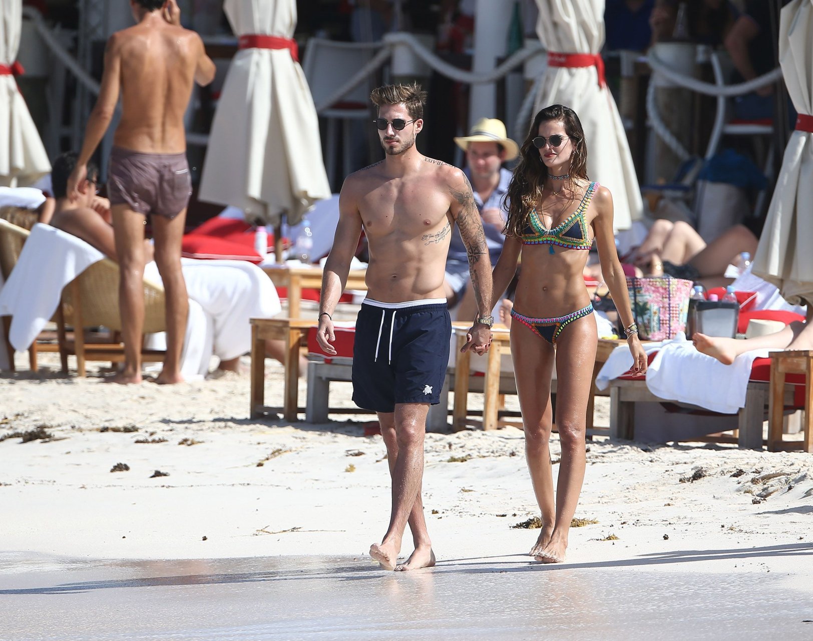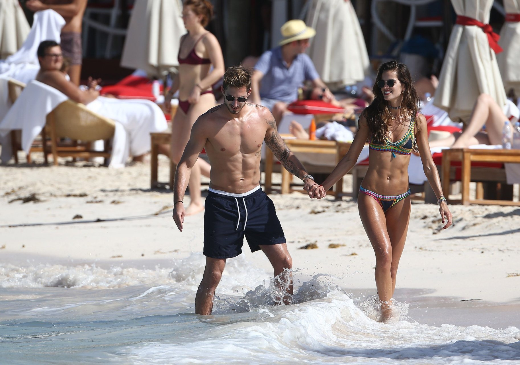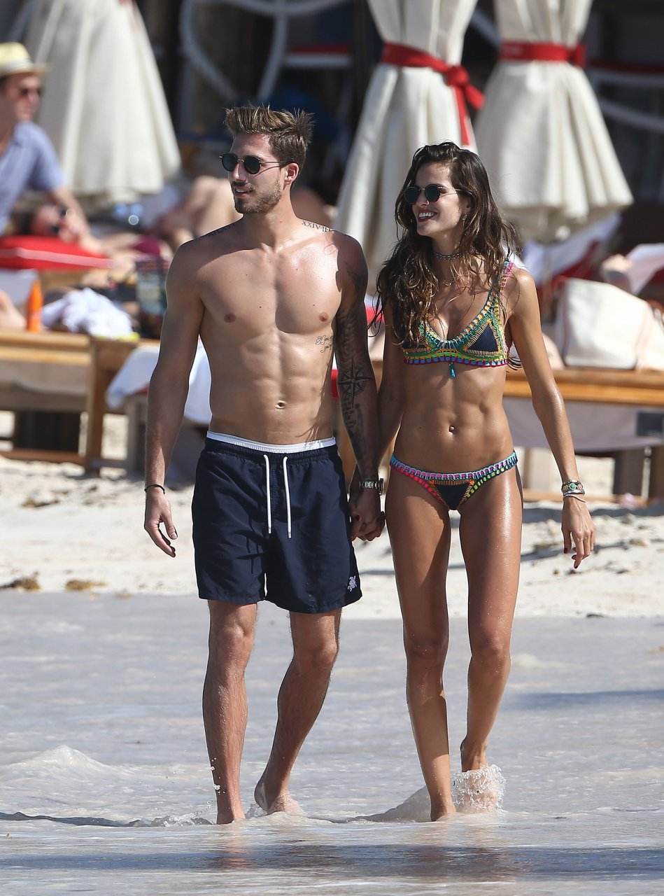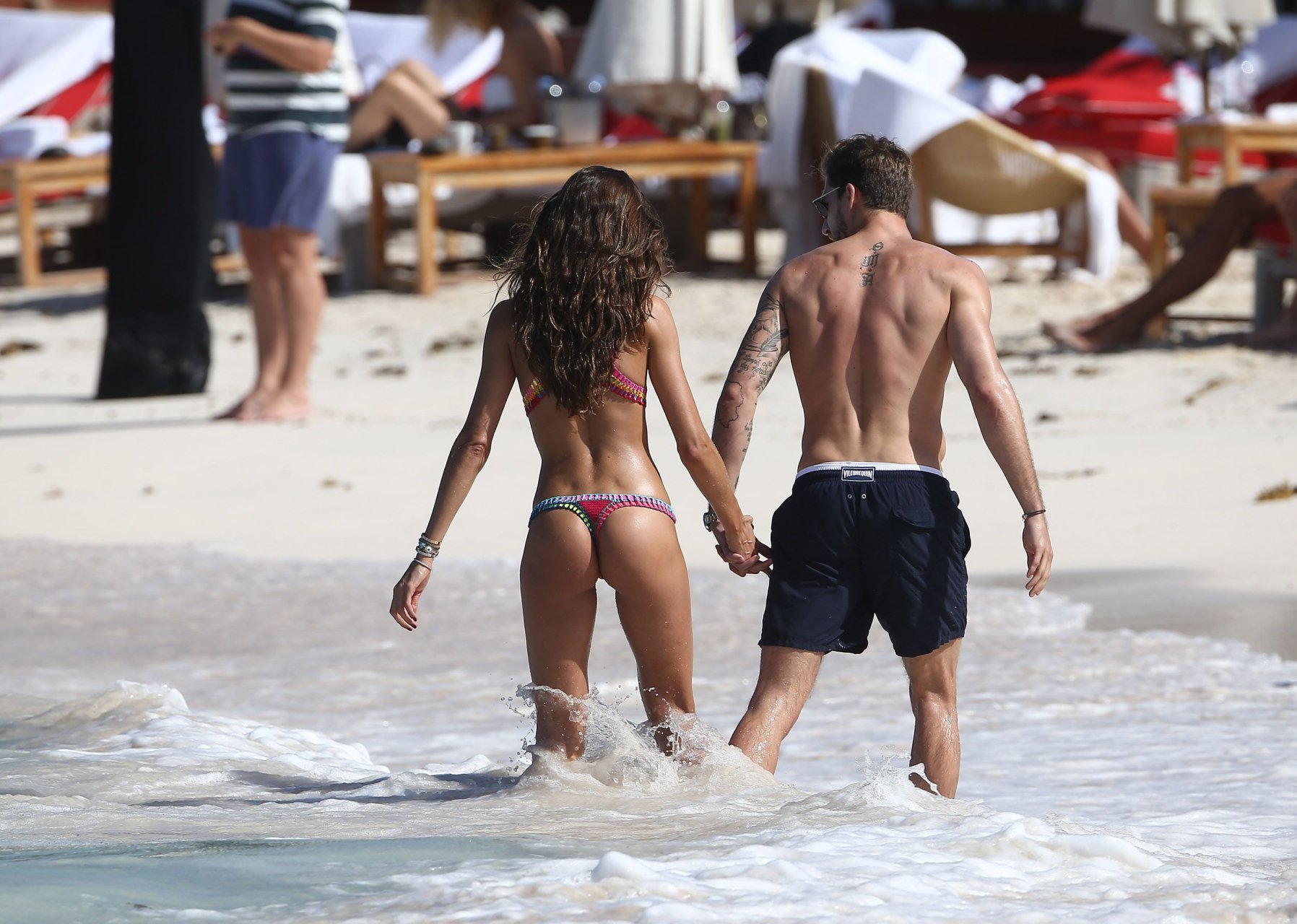 Izabel Goulart sfoggia il suo corpo snello in un bikini a perizoma con il fidanzato sulla spiaggia a St. Barts, 25/12/2016. Izabel Goulart è una modella brasiliana. Età: 32 (23 ottobre 1984). Altezza: 177 cm.