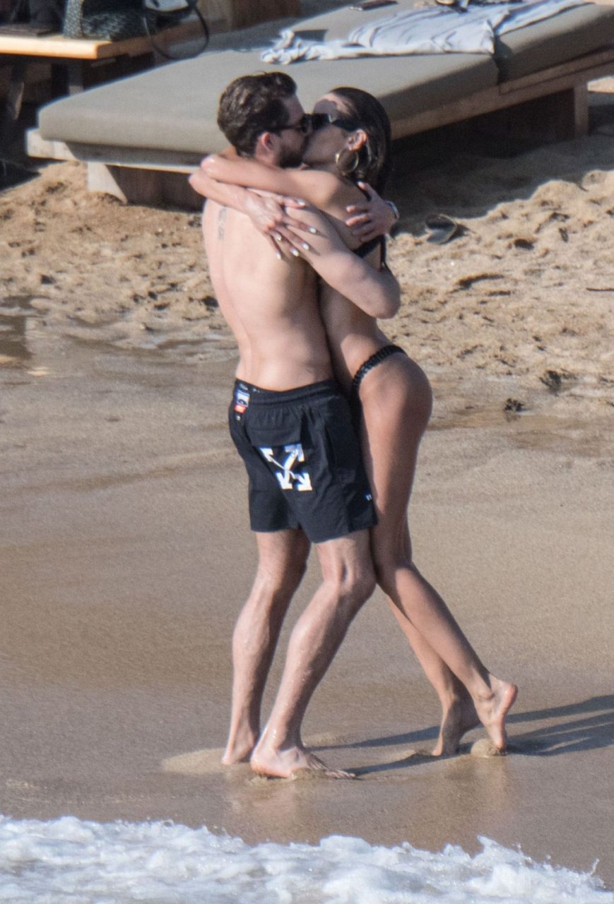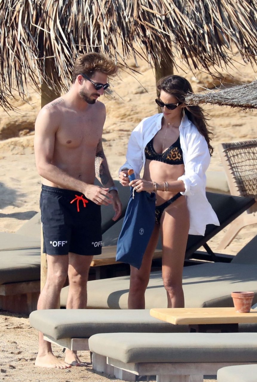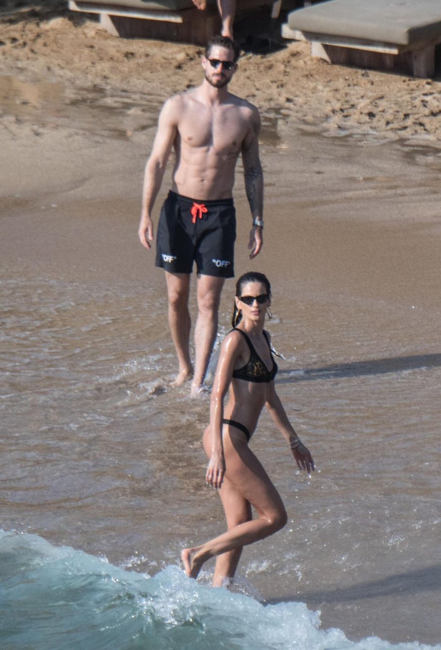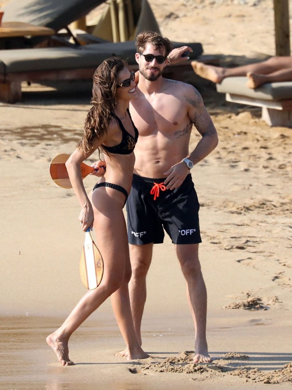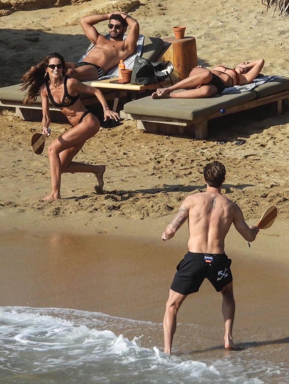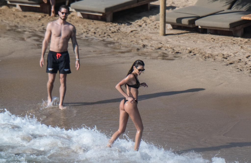 La modella brasiliana Izabel Goulart e il fidanzato calciatore Kevin Trapp sono stati fotografati mentre si divertivano a giocare a paddle ball sulla spiaggia durante una vacanza sull’isola greca di Mykonos, 27/06/2019.