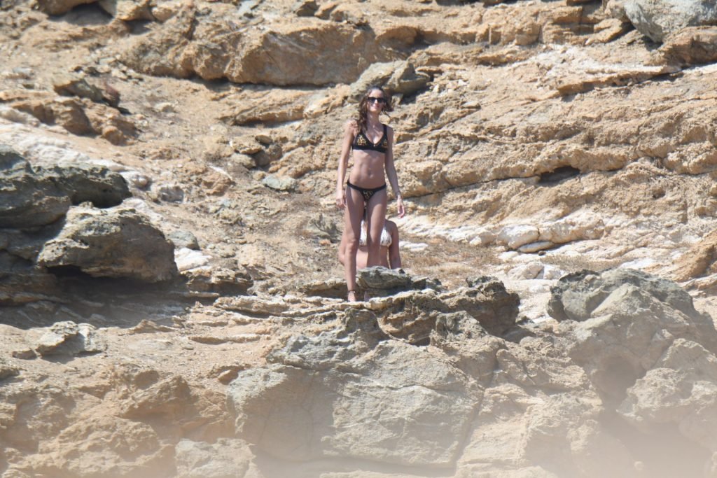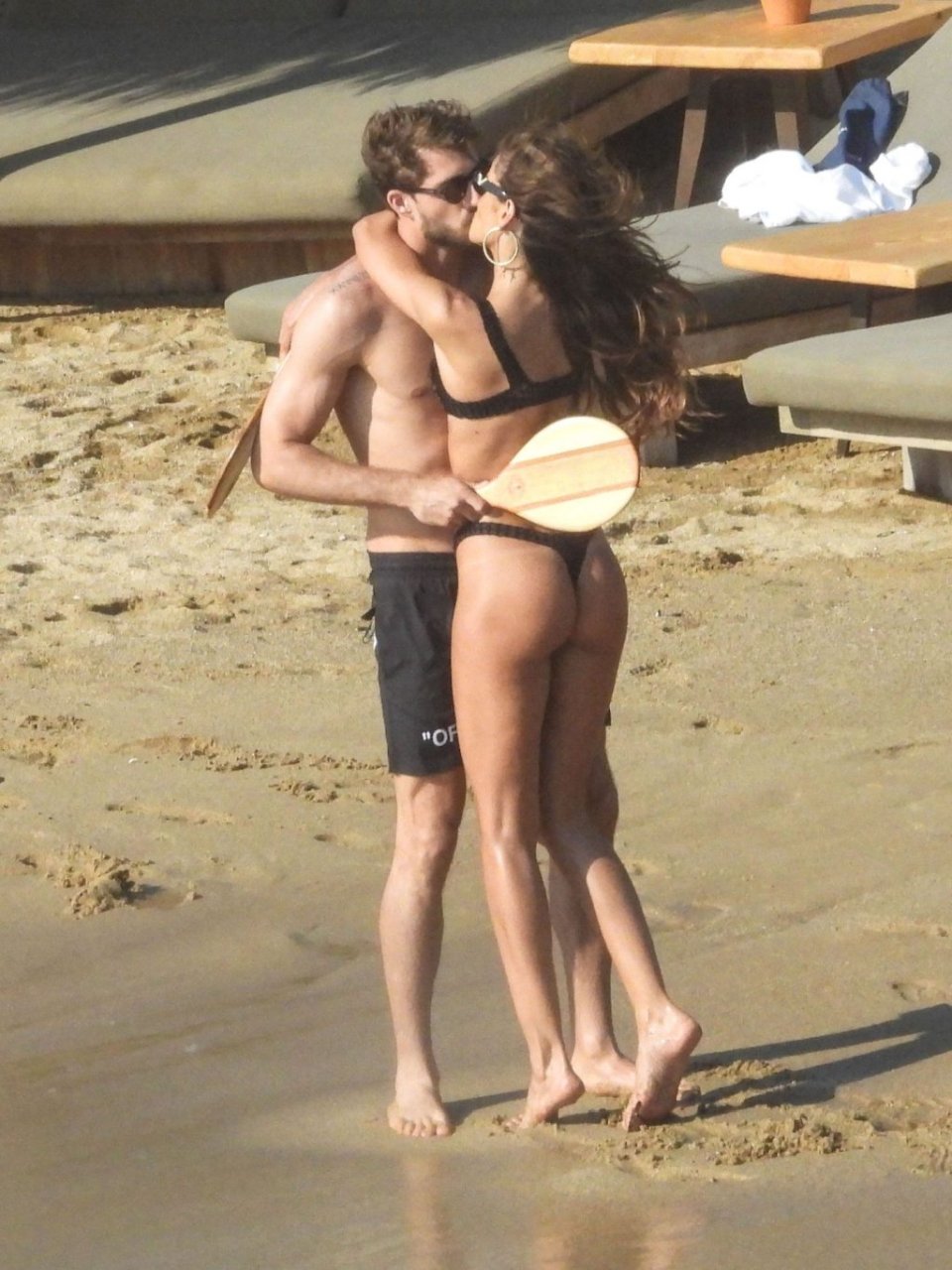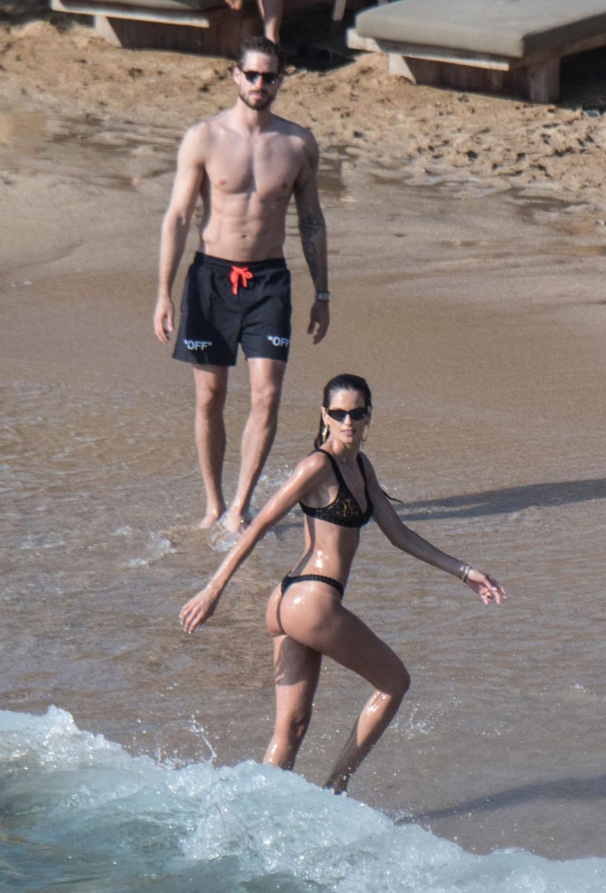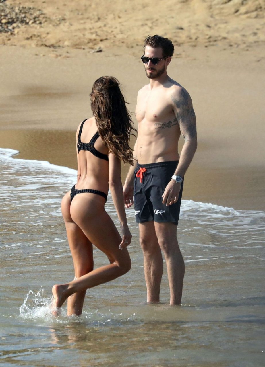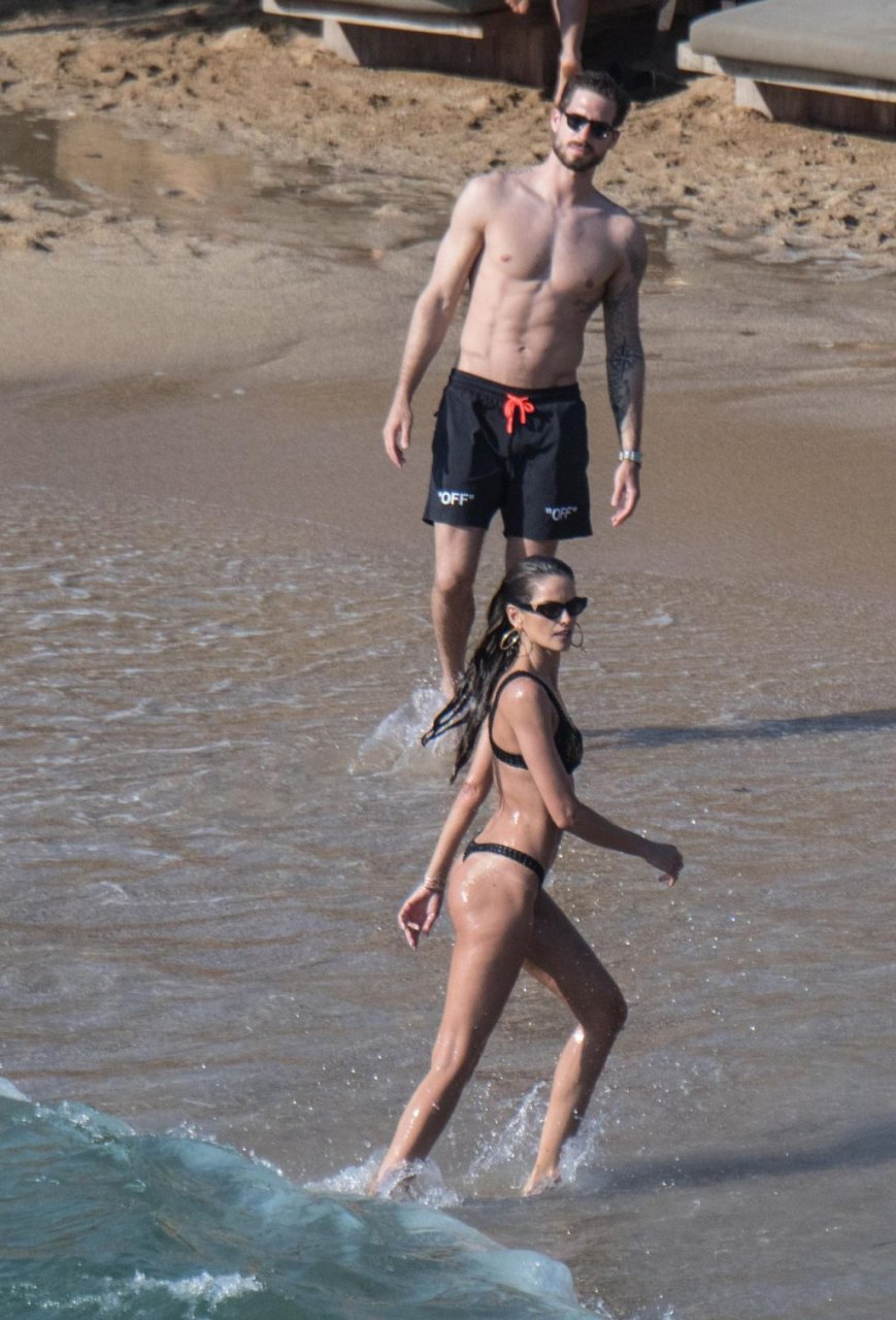 La modella brasiliana Izabel Goulart e il fidanzato calciatore Kevin Trapp sono stati fotografati mentre si divertivano a giocare a paddle ball sulla spiaggia durante una vacanza sull’isola greca di Mykonos, 27/06/2019.