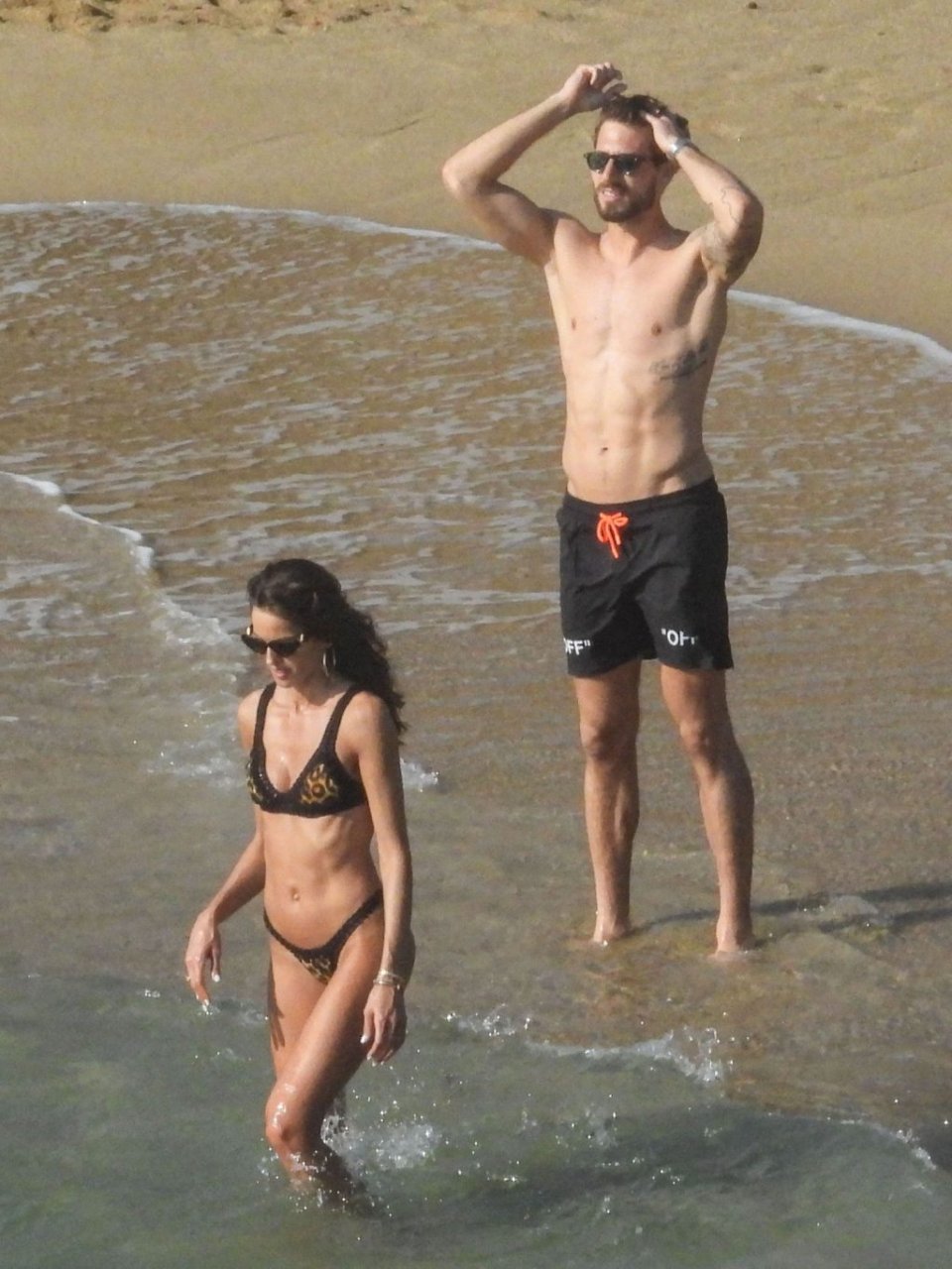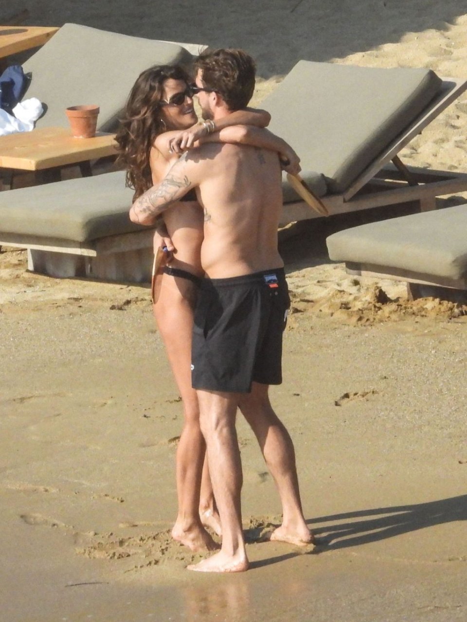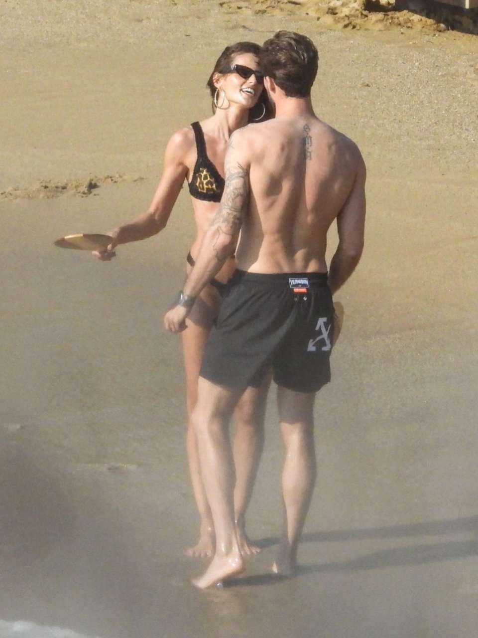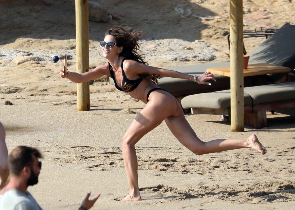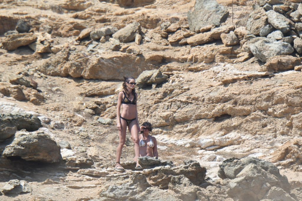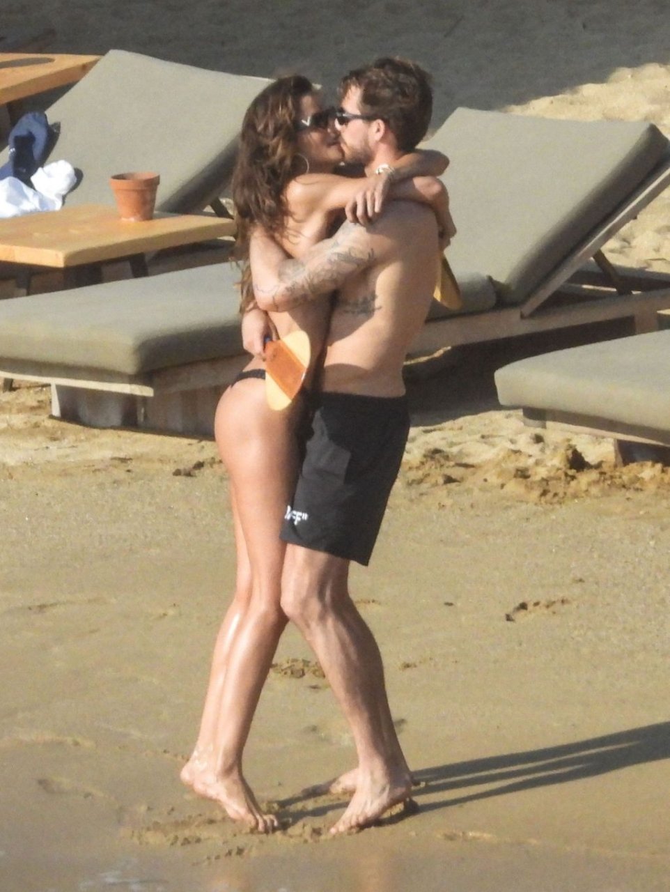 La modella brasiliana Izabel Goulart e il fidanzato calciatore Kevin Trapp sono stati fotografati mentre si divertivano a giocare a paddle ball sulla spiaggia durante una vacanza sull’isola greca di Mykonos, 27/06/2019.