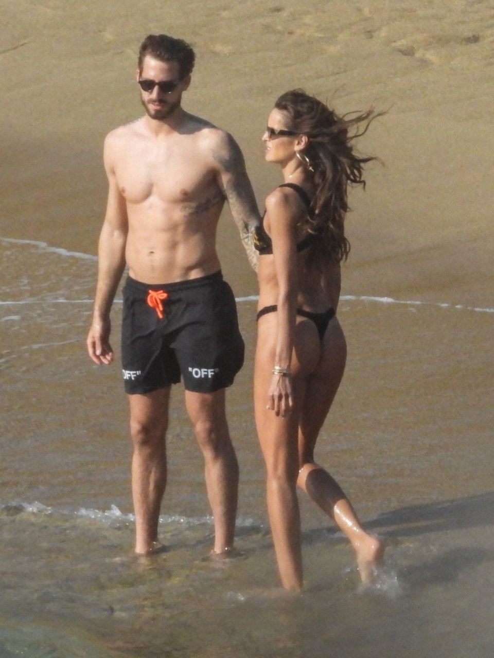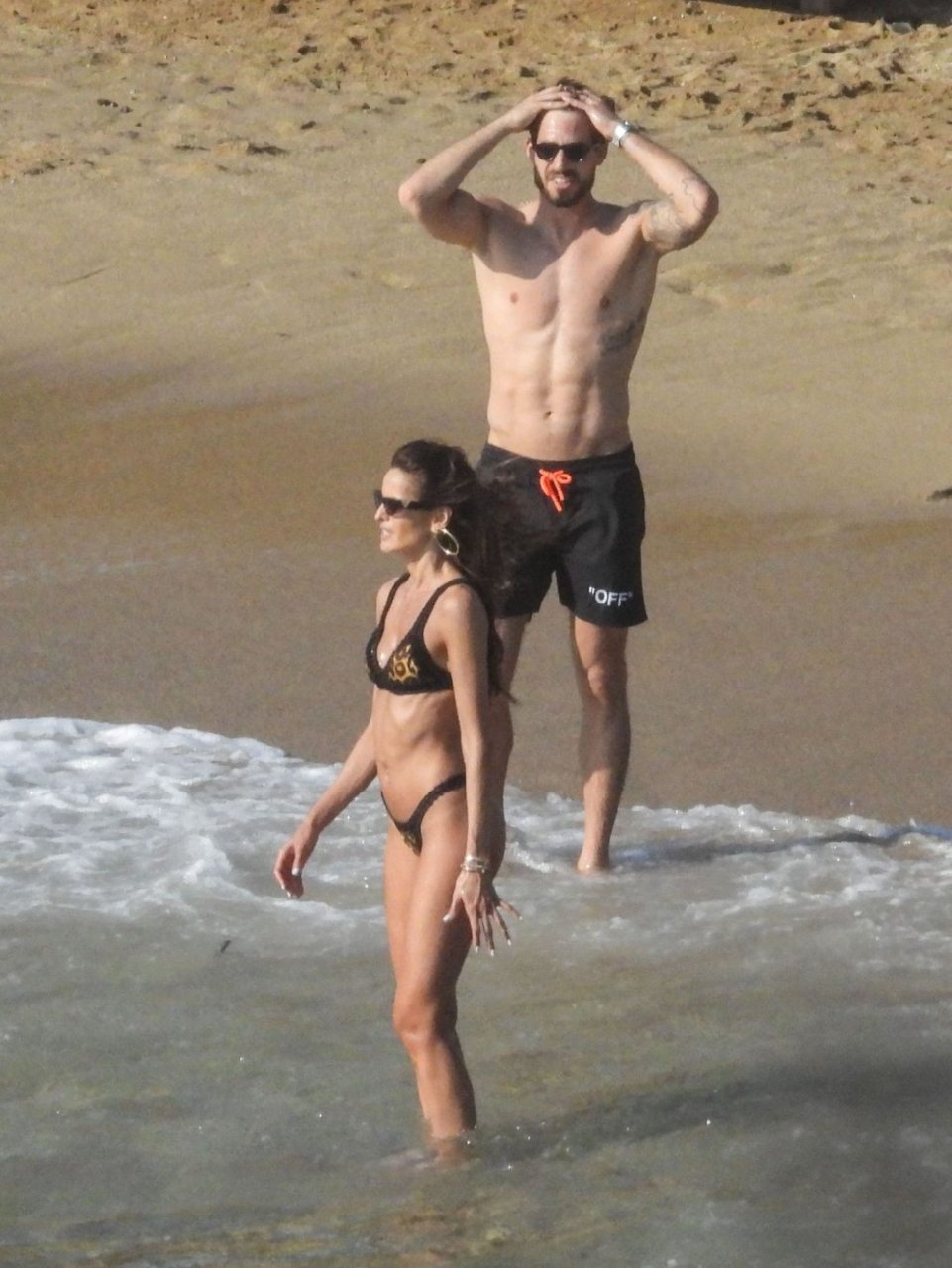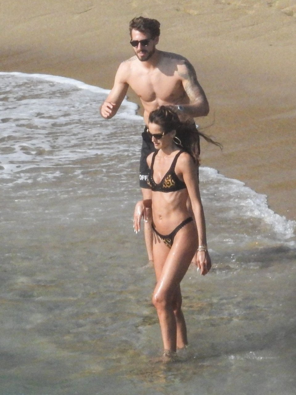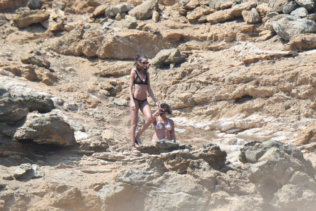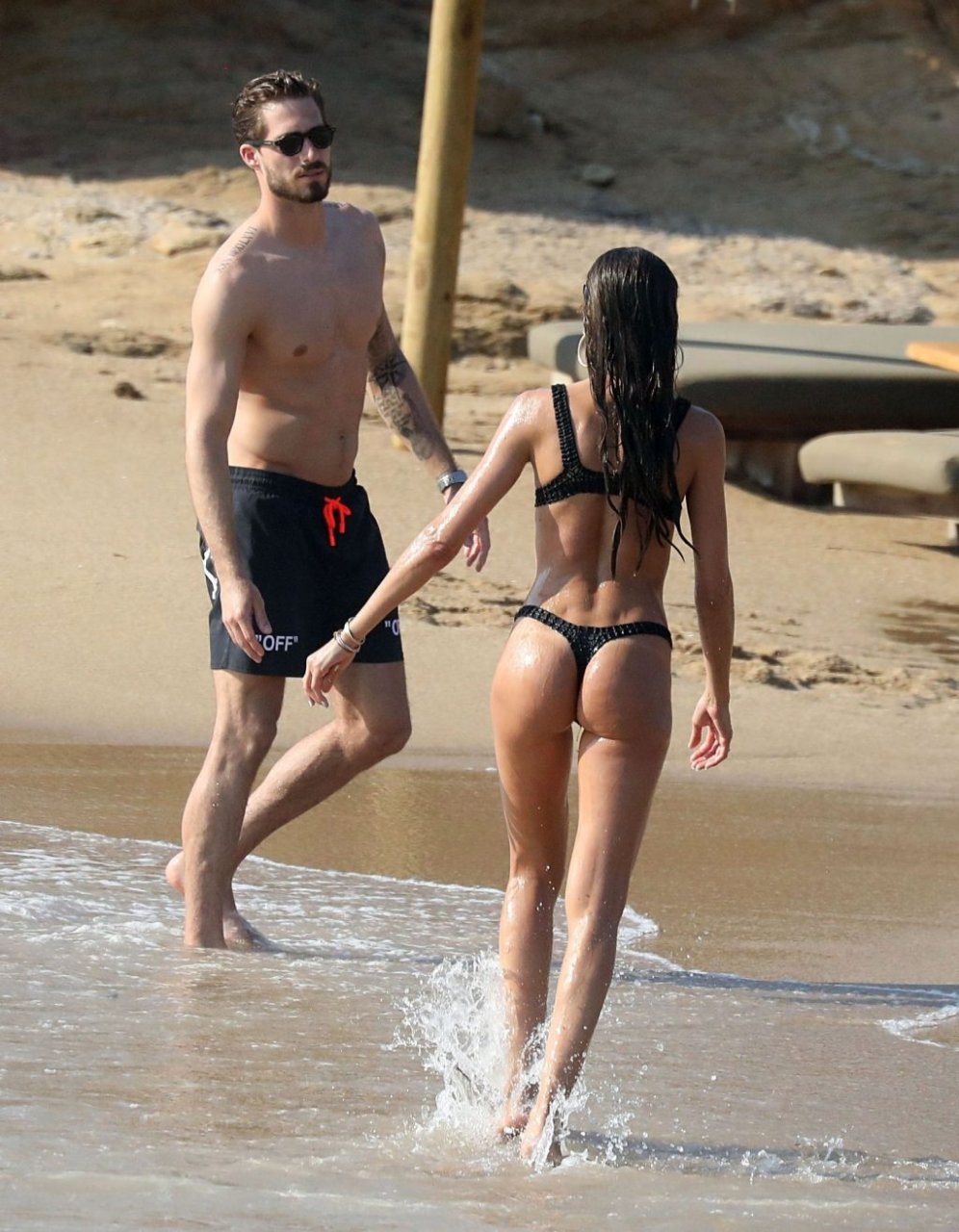 La modella brasiliana Izabel Goulart e il fidanzato calciatore Kevin Trapp sono stati fotografati mentre si divertivano a giocare a paddle ball sulla spiaggia durante una vacanza sull’isola greca di Mykonos, 27/06/2019.