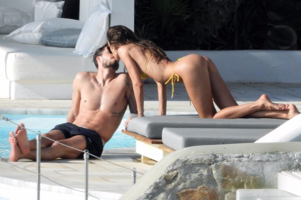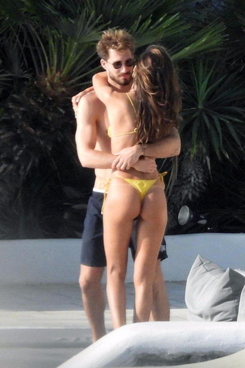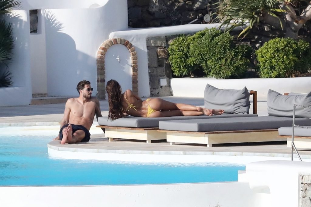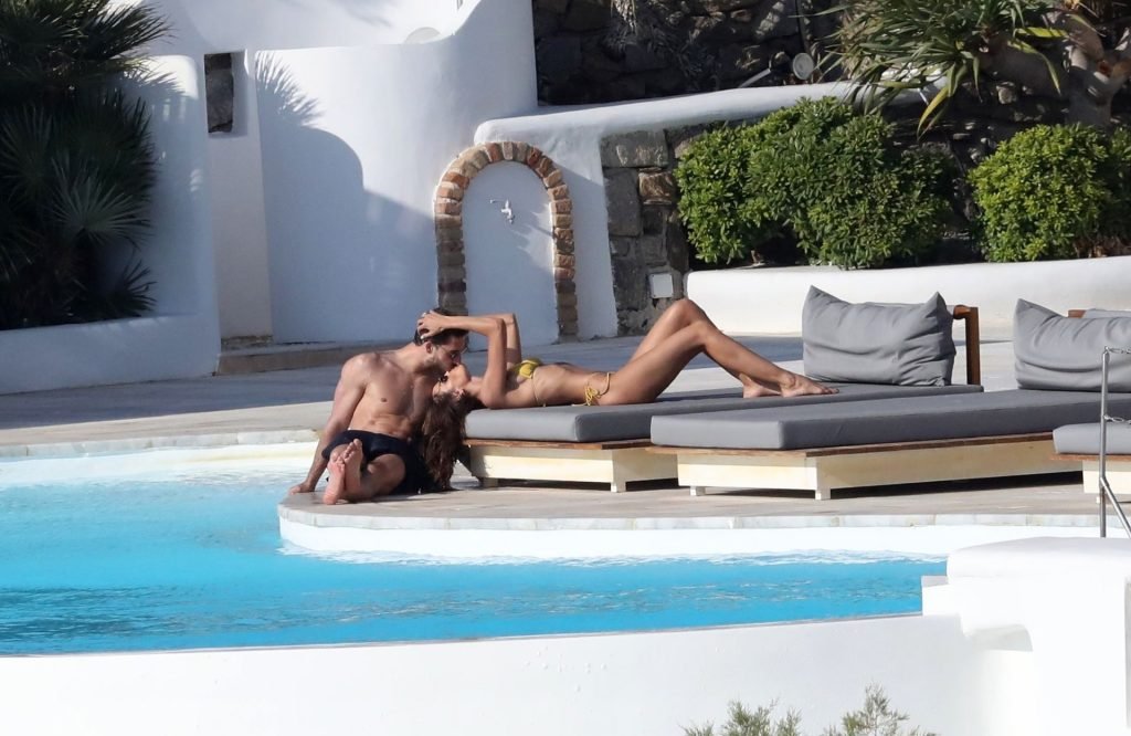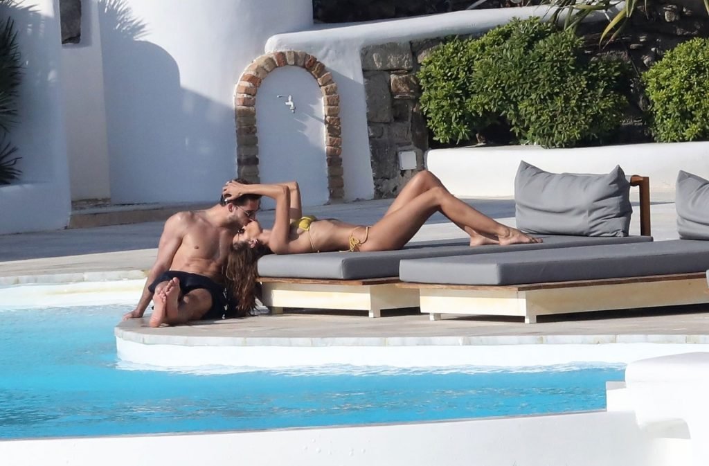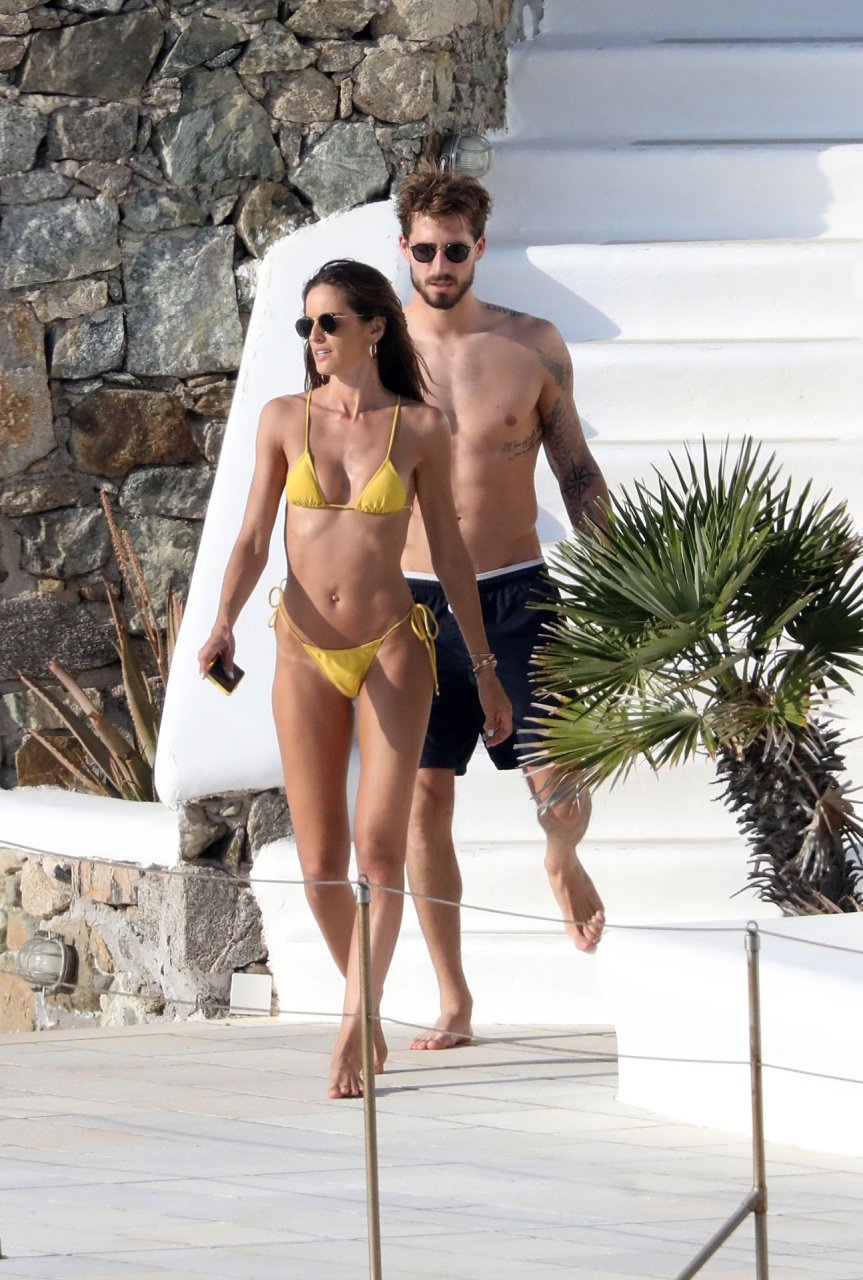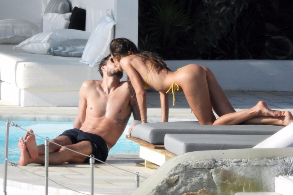 La modella Izabel Goulart mostra la sua figura tonica in un bikini giallo mentre si scambia effusioni con il fidanzato calciatore Kevin Trapp a Mykonos, 25/06/2019.