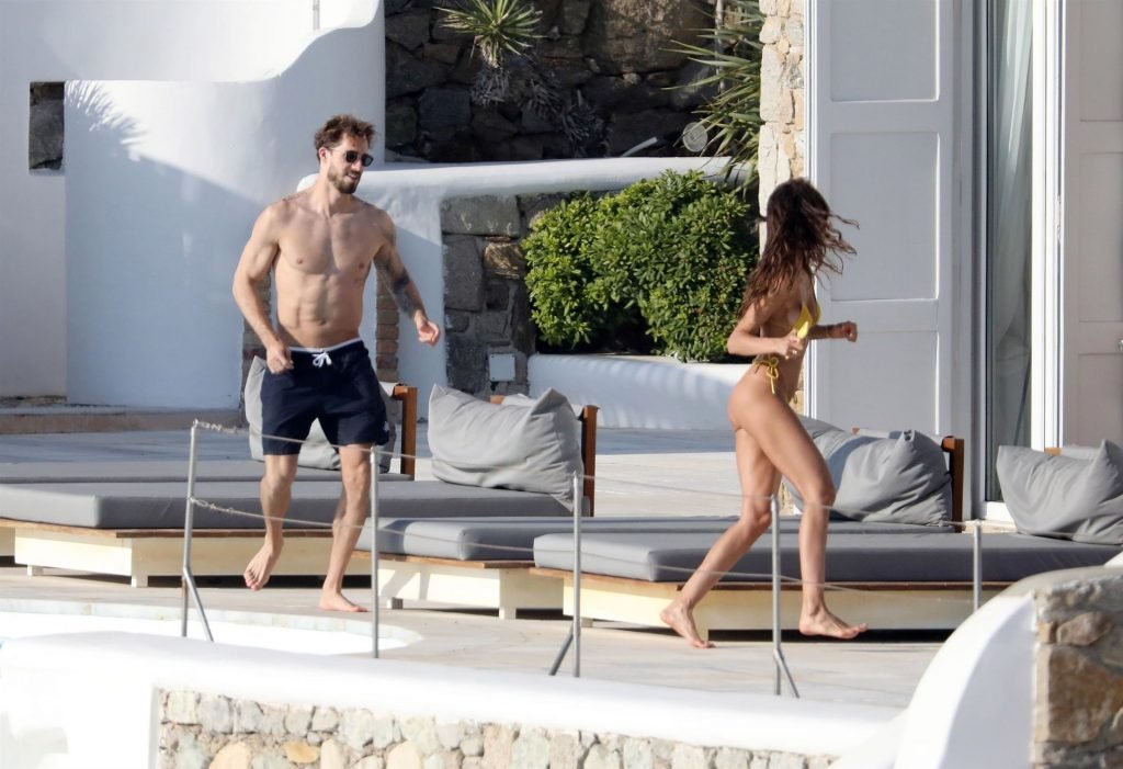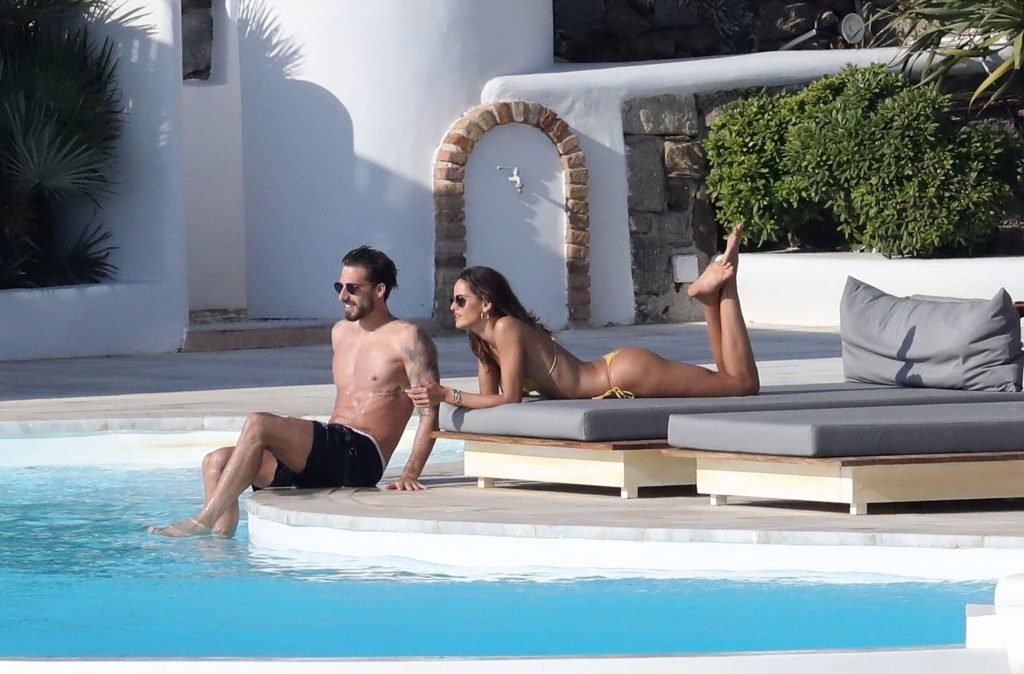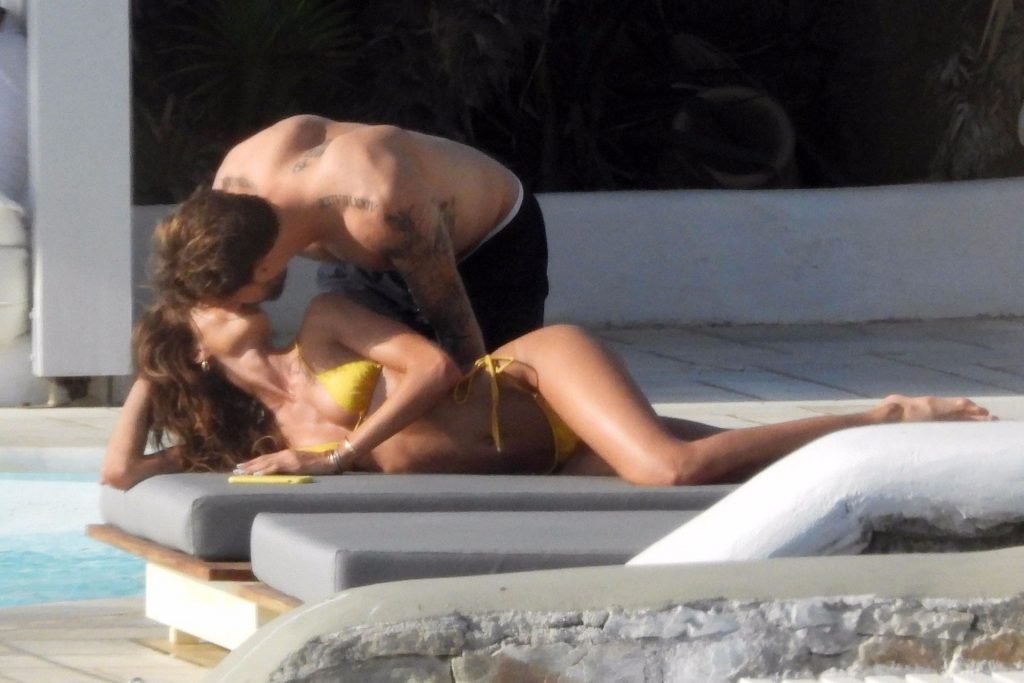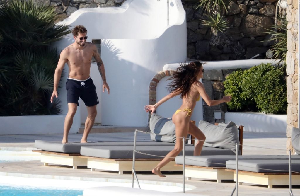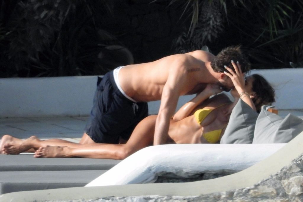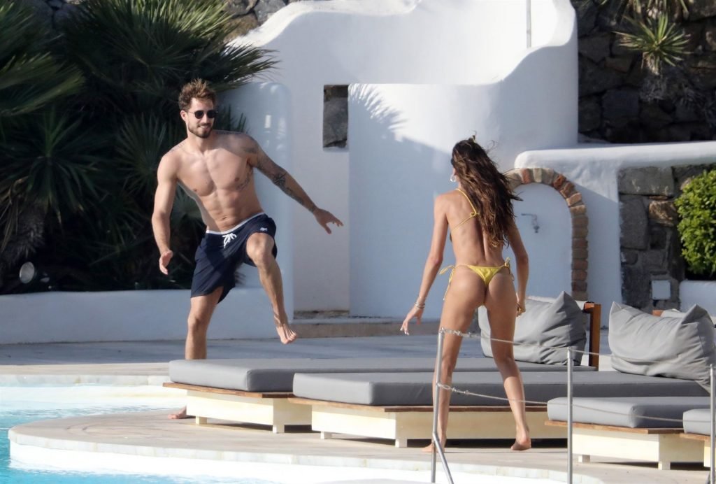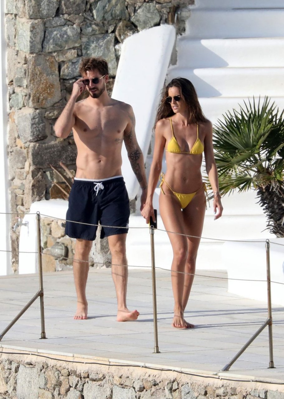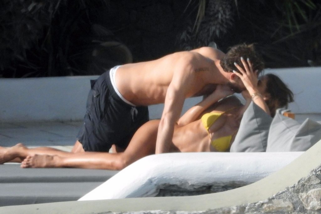 La modella Izabel Goulart mostra la sua figura tonica in un bikini giallo mentre si scambia effusioni con il fidanzato calciatore Kevin Trapp a Mykonos, 25/06/2019.