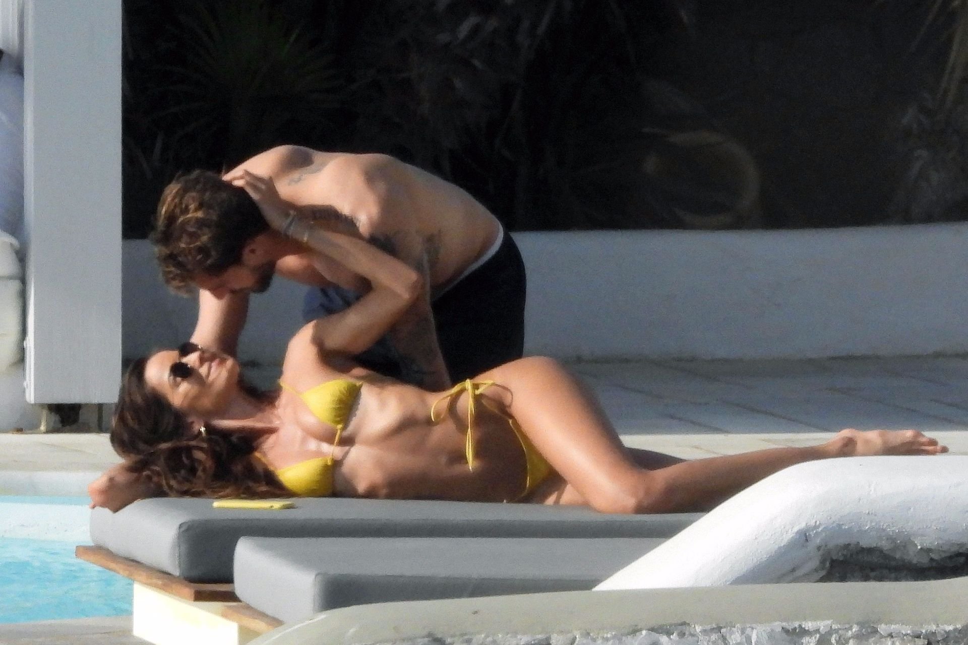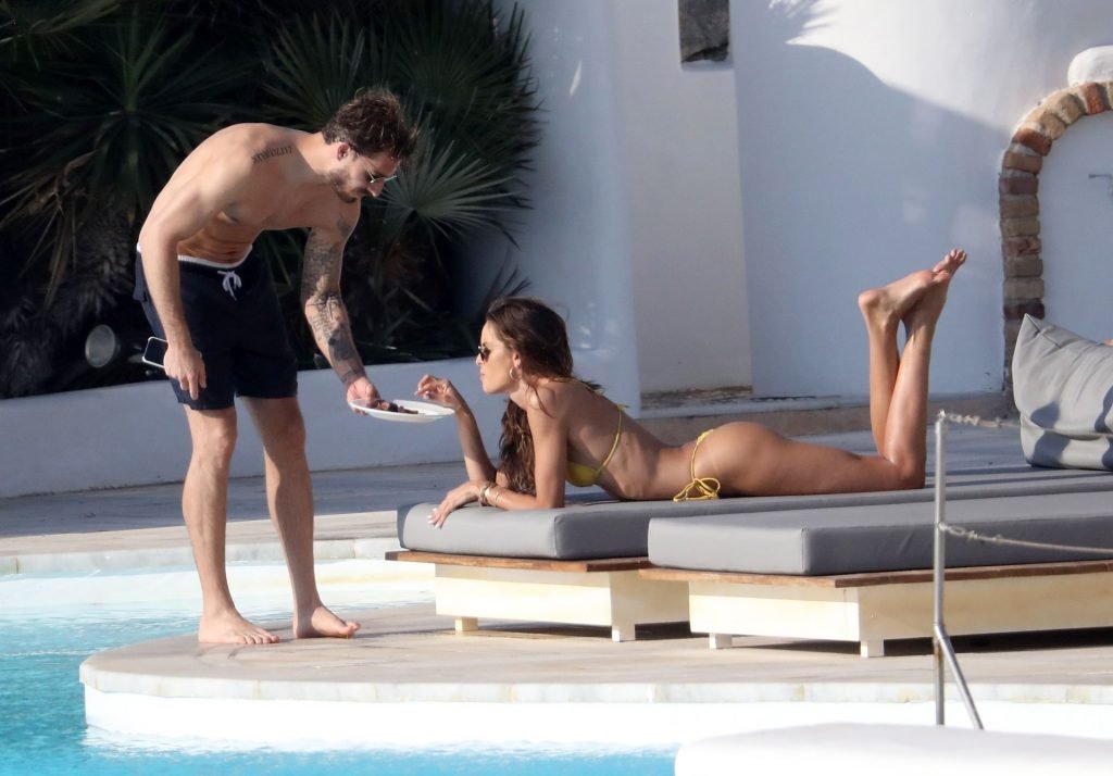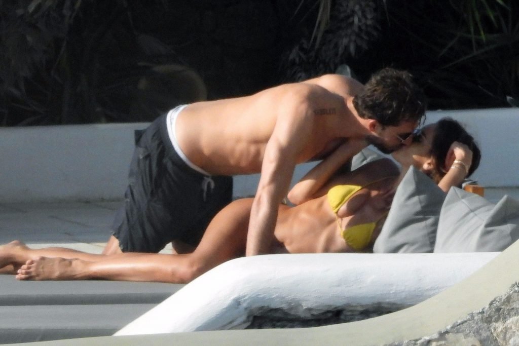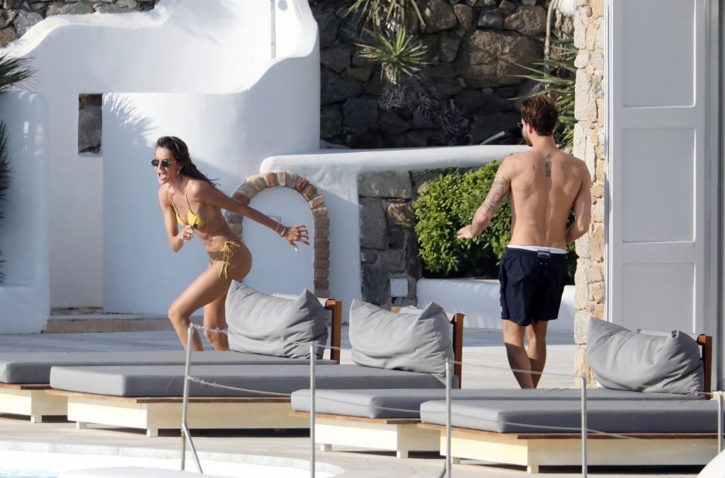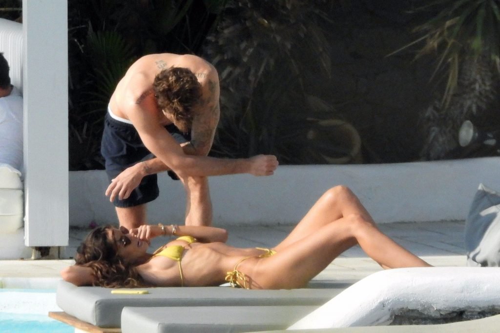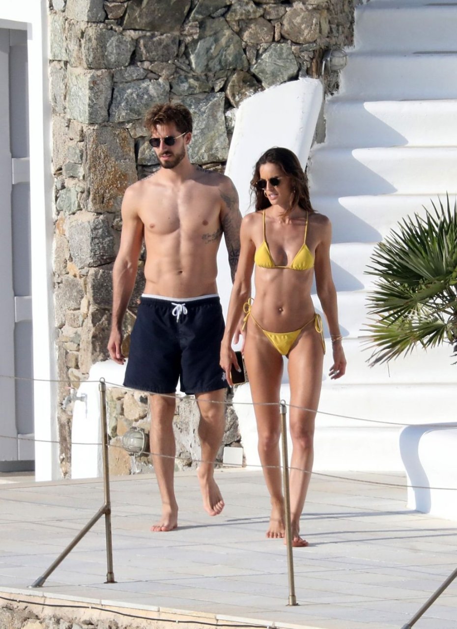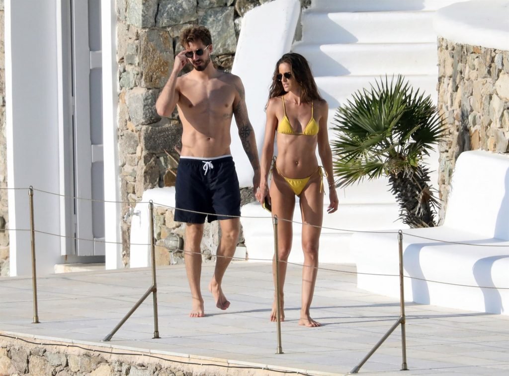 La modella Izabel Goulart mostra la sua figura tonica in un bikini giallo mentre si scambia effusioni con il fidanzato calciatore Kevin Trapp a Mykonos, 25/06/2019.