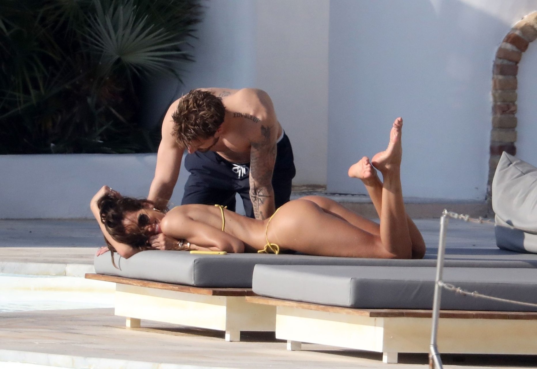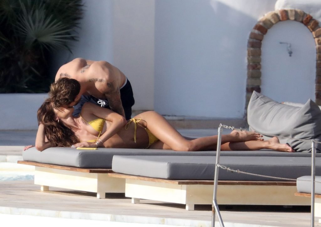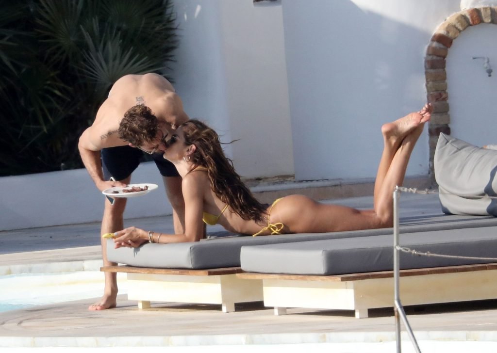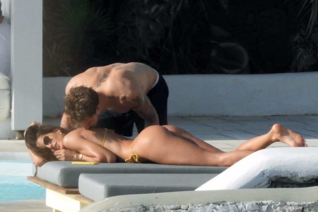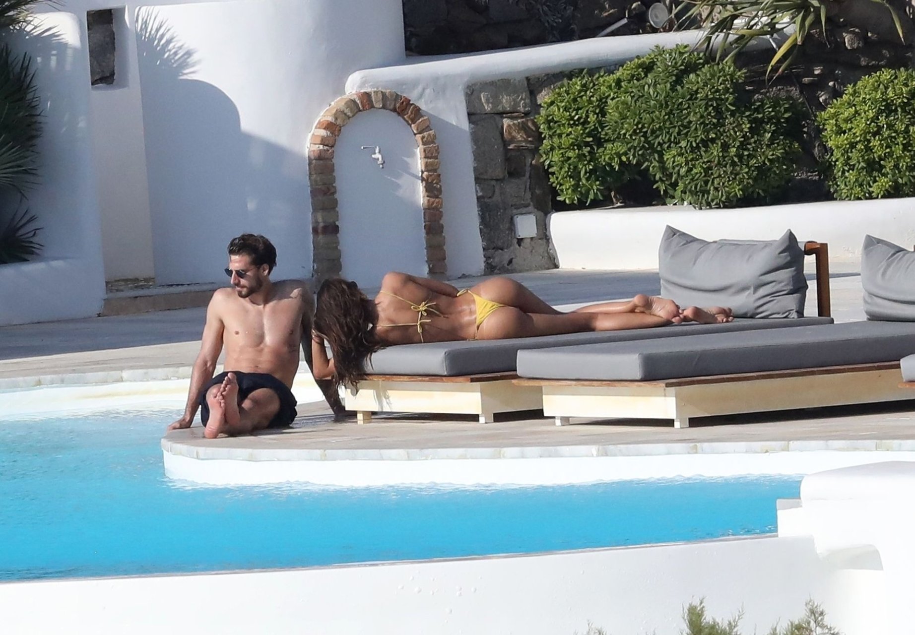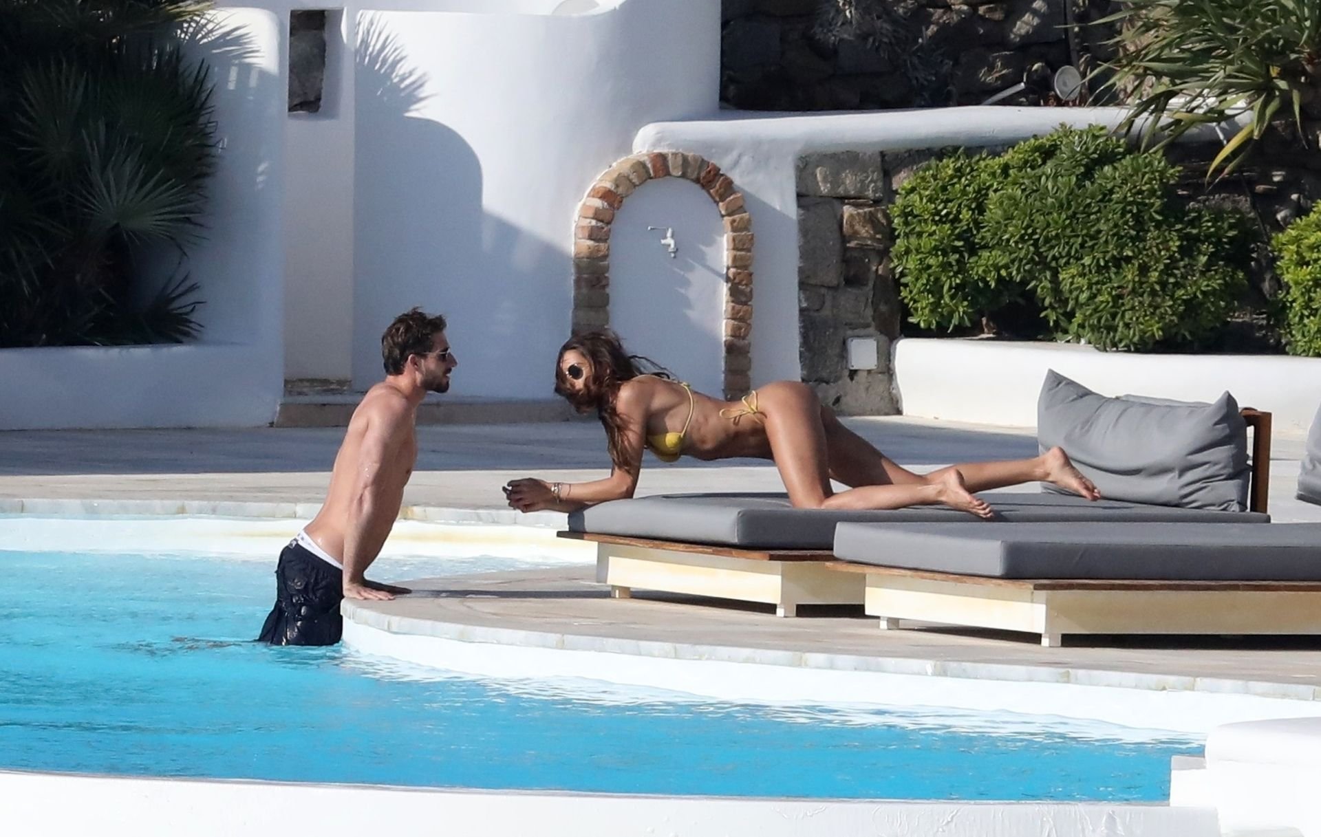 La modella Izabel Goulart mostra la sua figura tonica in un bikini giallo mentre si scambia effusioni con il fidanzato calciatore Kevin Trapp a Mykonos, 25/06/2019.