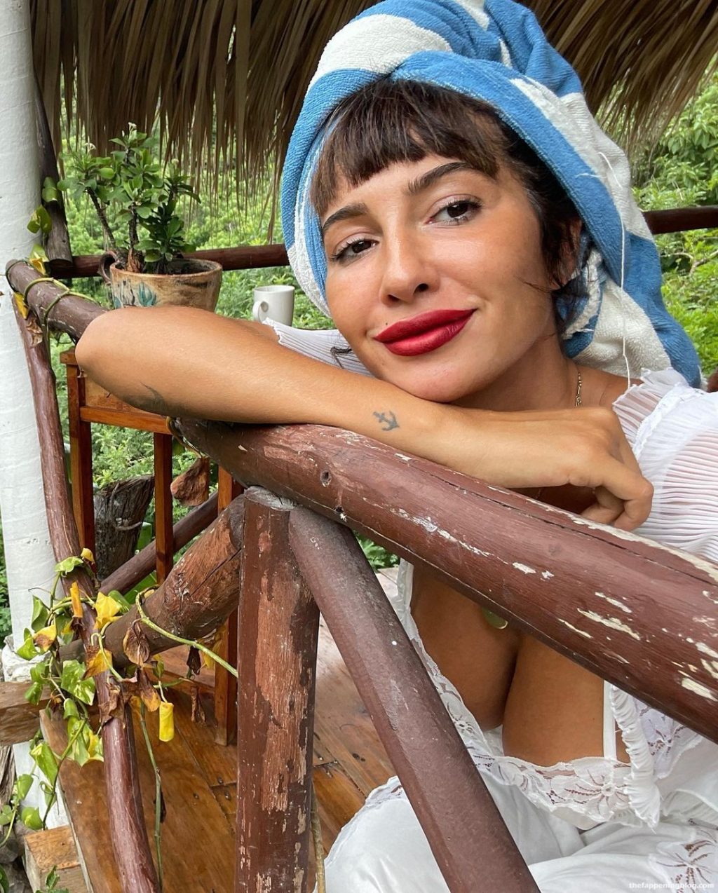 Attrice e star di The Fappening Jackie Cruz mostra i suoi piedi e il décolleté, posando in un vestito bianco in un nuovo servizio sui social media, 07/10/2021.