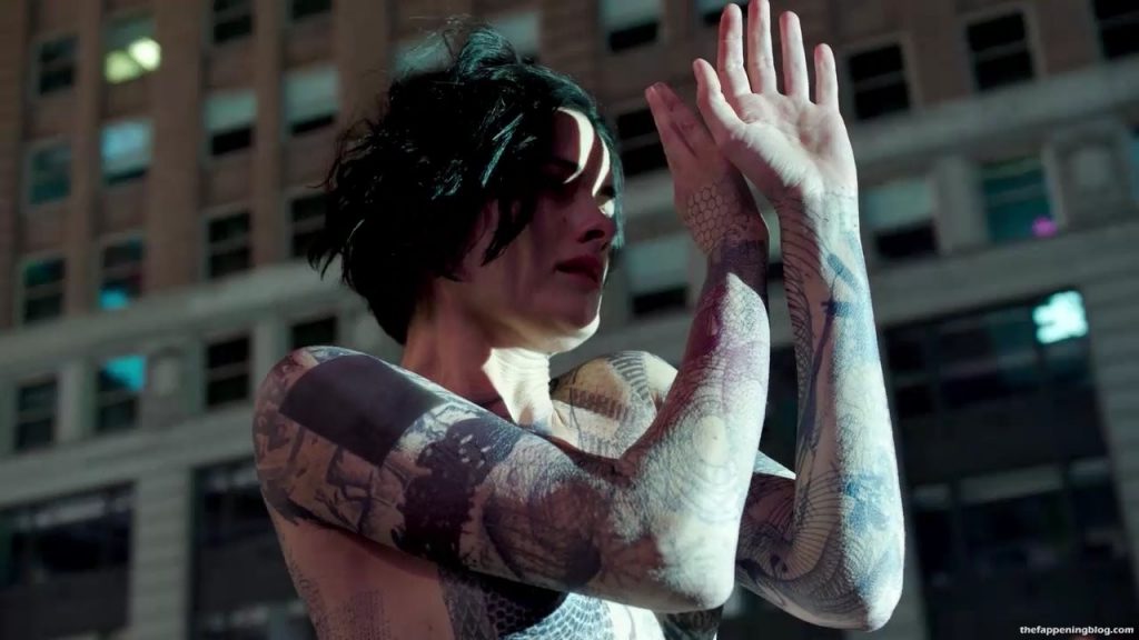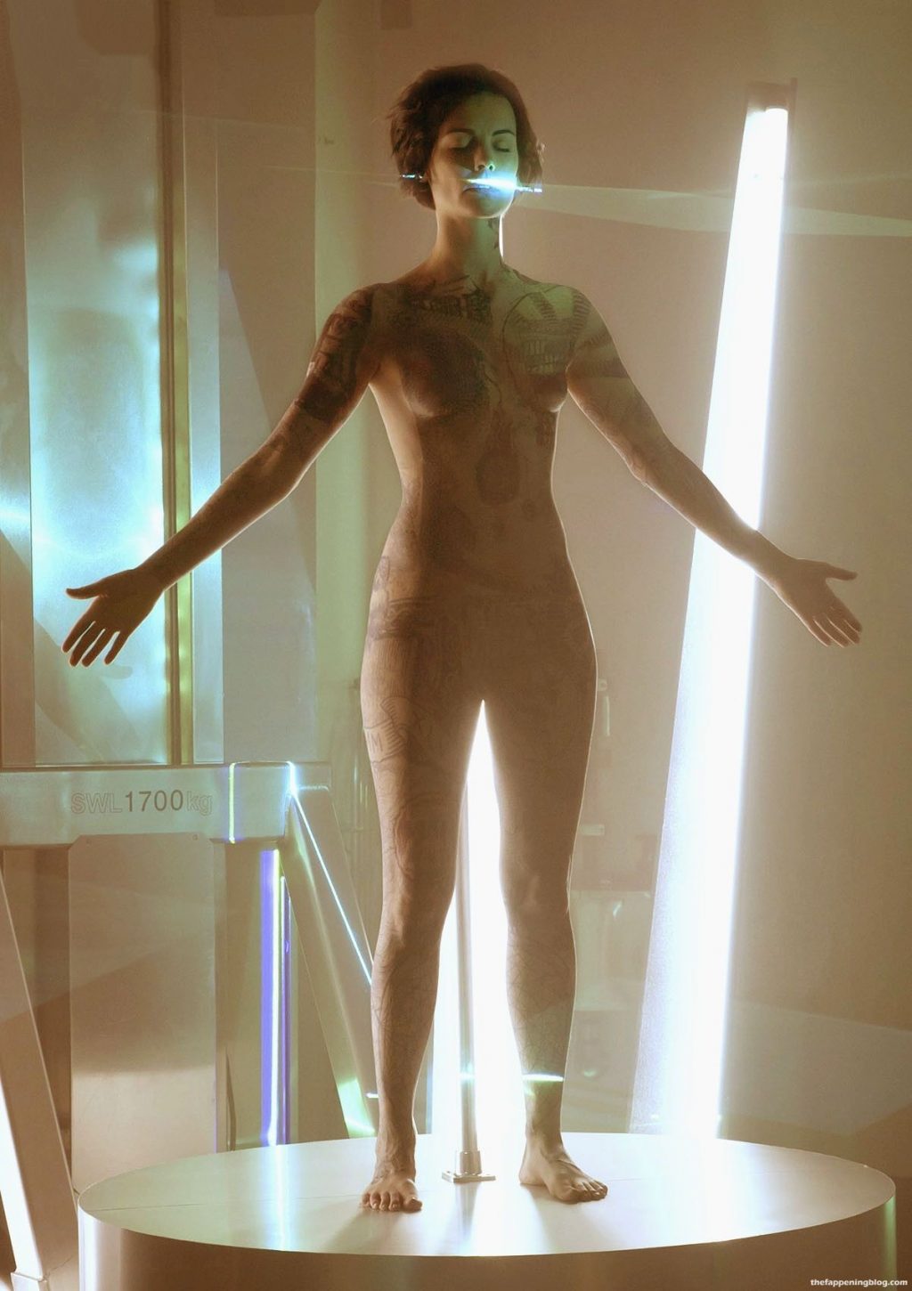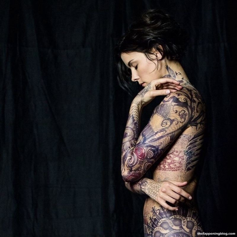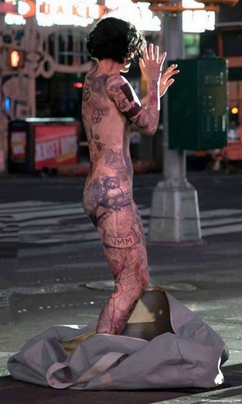 Ha detto in un'intervista che non le hanno dipinto i tatuaggi sul corpo. Ha detto che è una tuta molto leggera che copre tutto il corpo. Praticamente come hanno fatto con Jennifer Lawrence in X-Men.