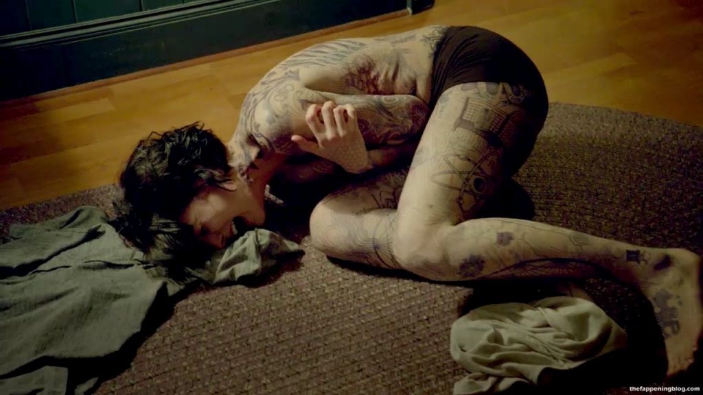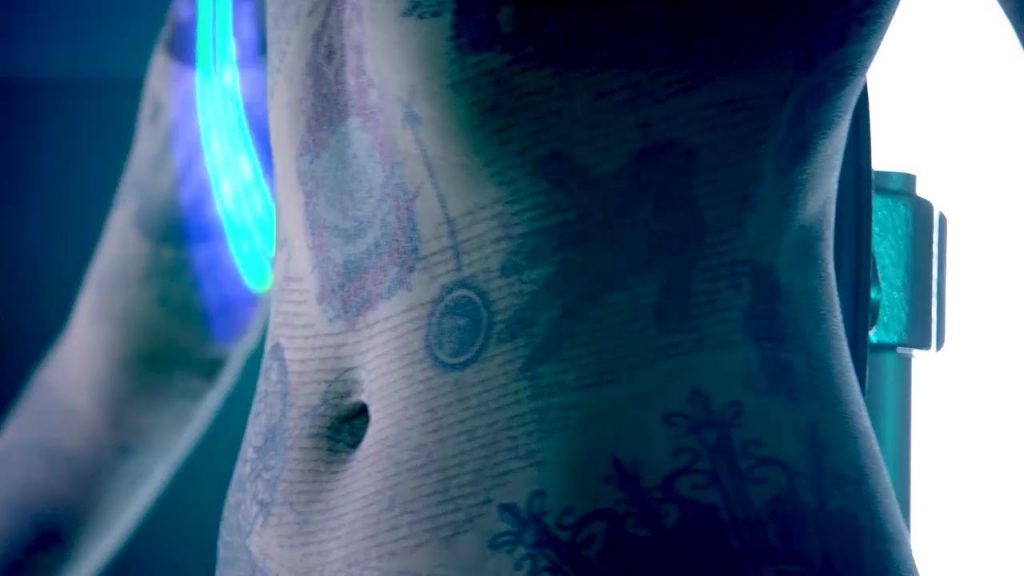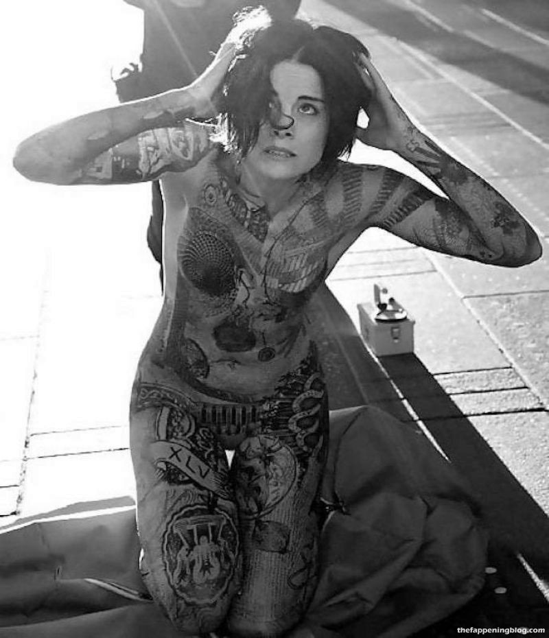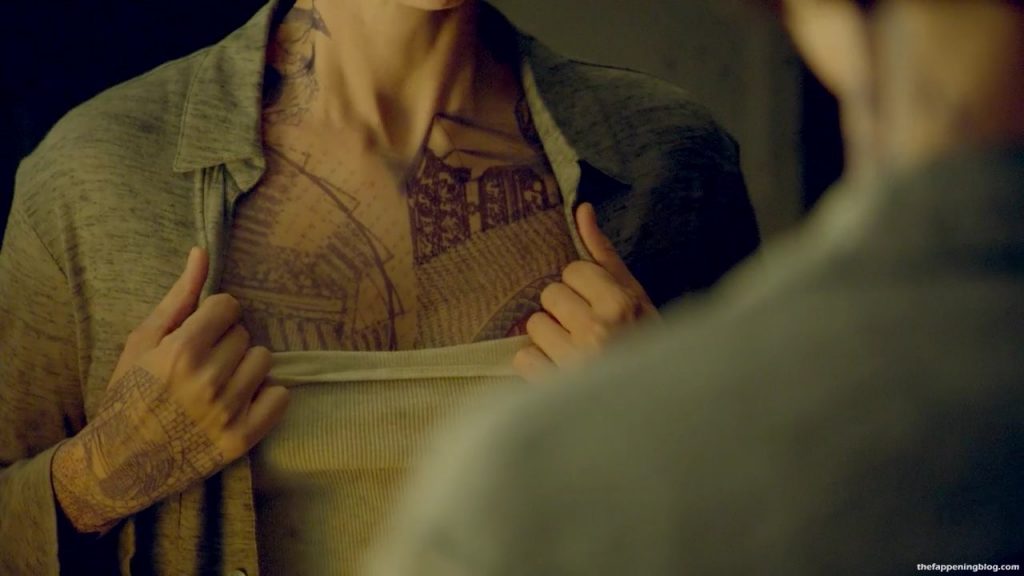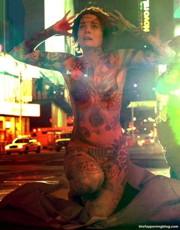 Ha detto in un'intervista che non le hanno dipinto i tatuaggi sul corpo. Ha detto che è una tuta molto leggera che copre tutto il corpo. Praticamente come hanno fatto con Jennifer Lawrence in X-Men.
