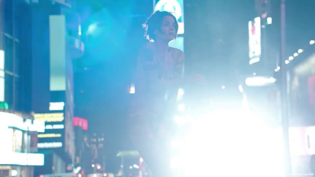 Adoro come la mostri nuda da Blindspot in primo piano frontale. Quella non era lei e ciò che indossava era una tuta aderente, quindi non avresti mai visto il suo capezzolo o la sua vagina per strada come stai mostrando.