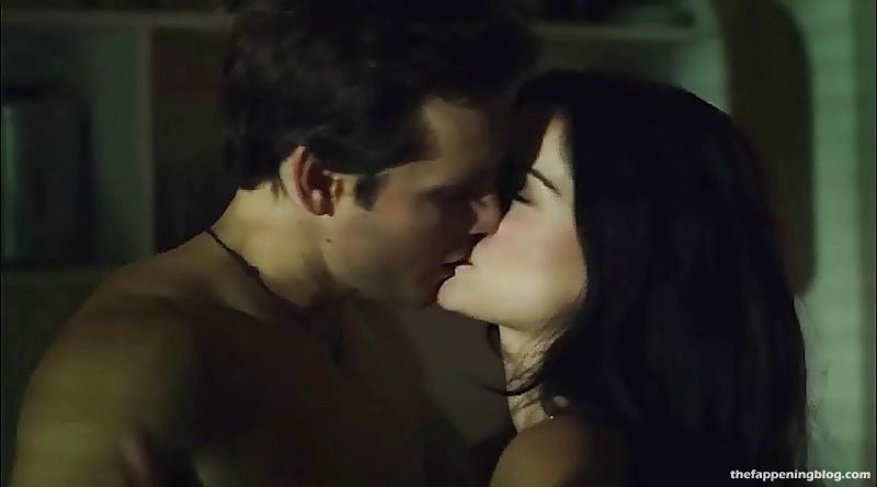 Jaimie Alexander is standing in a black bra as she kisses a guy and laughs while they fool around and then having him start to remove her bra before she’s seen having sex with him on top of her in a bed.