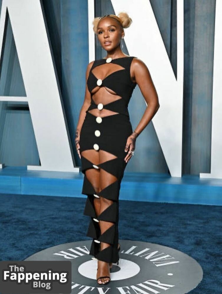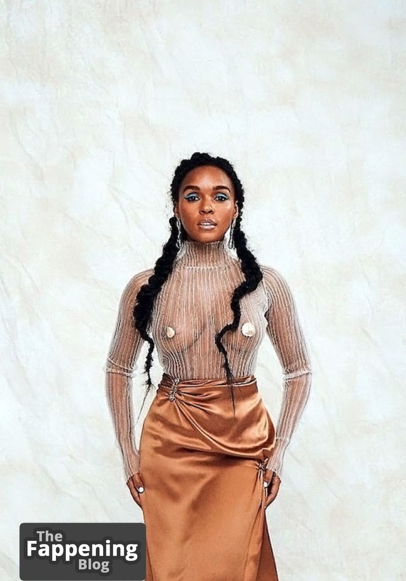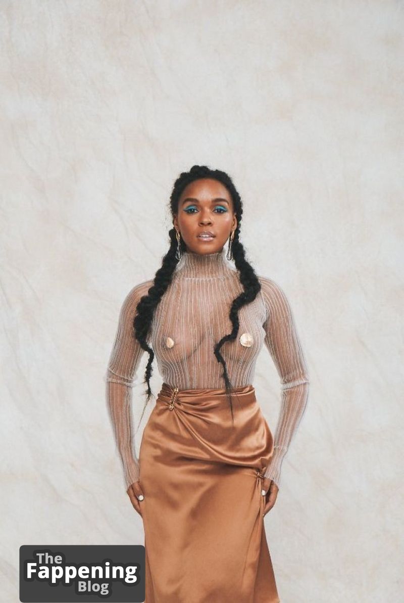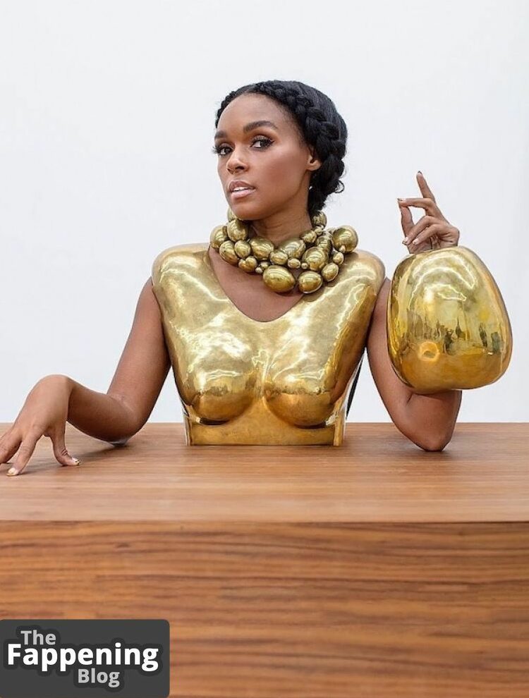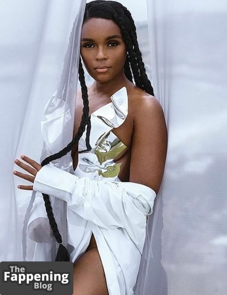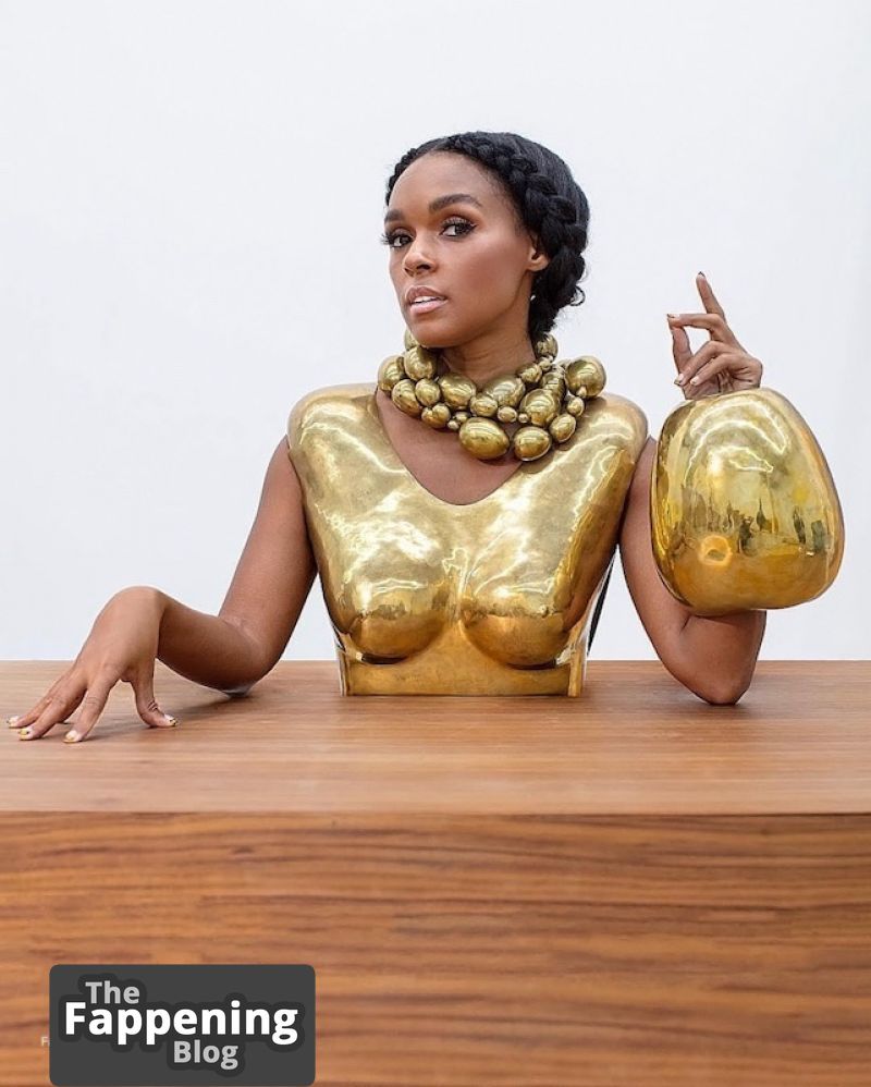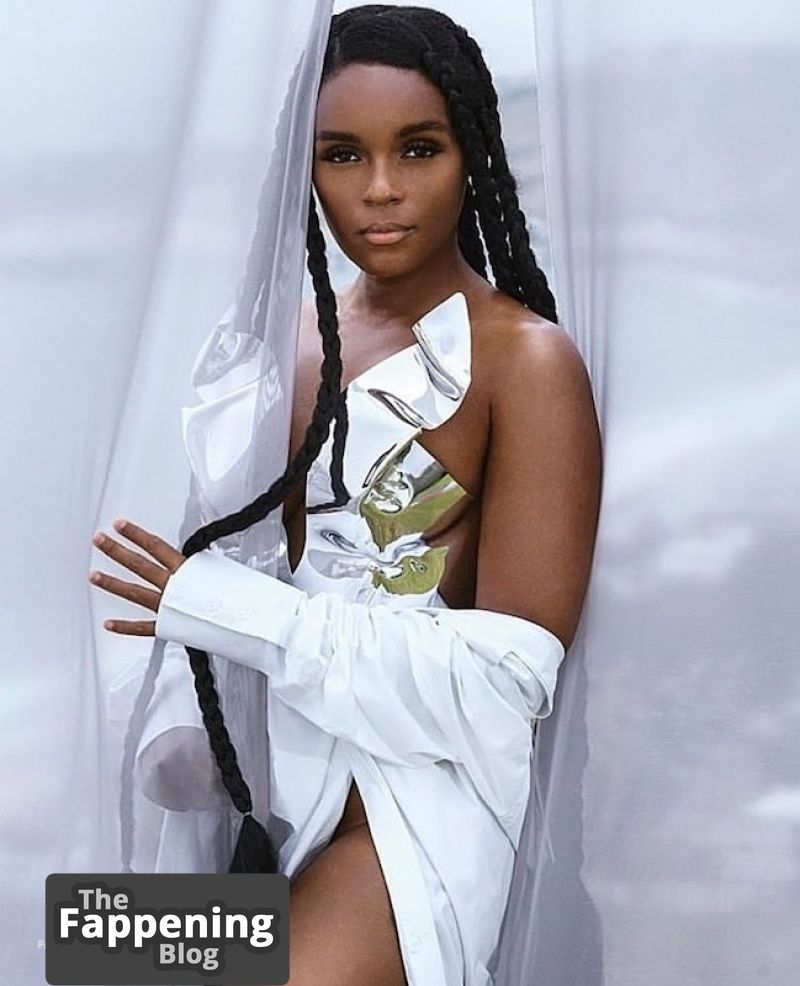 La collezione di Janelle Monae è piena di contenuti espliciti, con scatti a seno nudo che mostrano i suoi seni, un ampio décolleté senza reggiseno, glutei scoperti e il suo corpo da modella snello in abiti rivelatori.